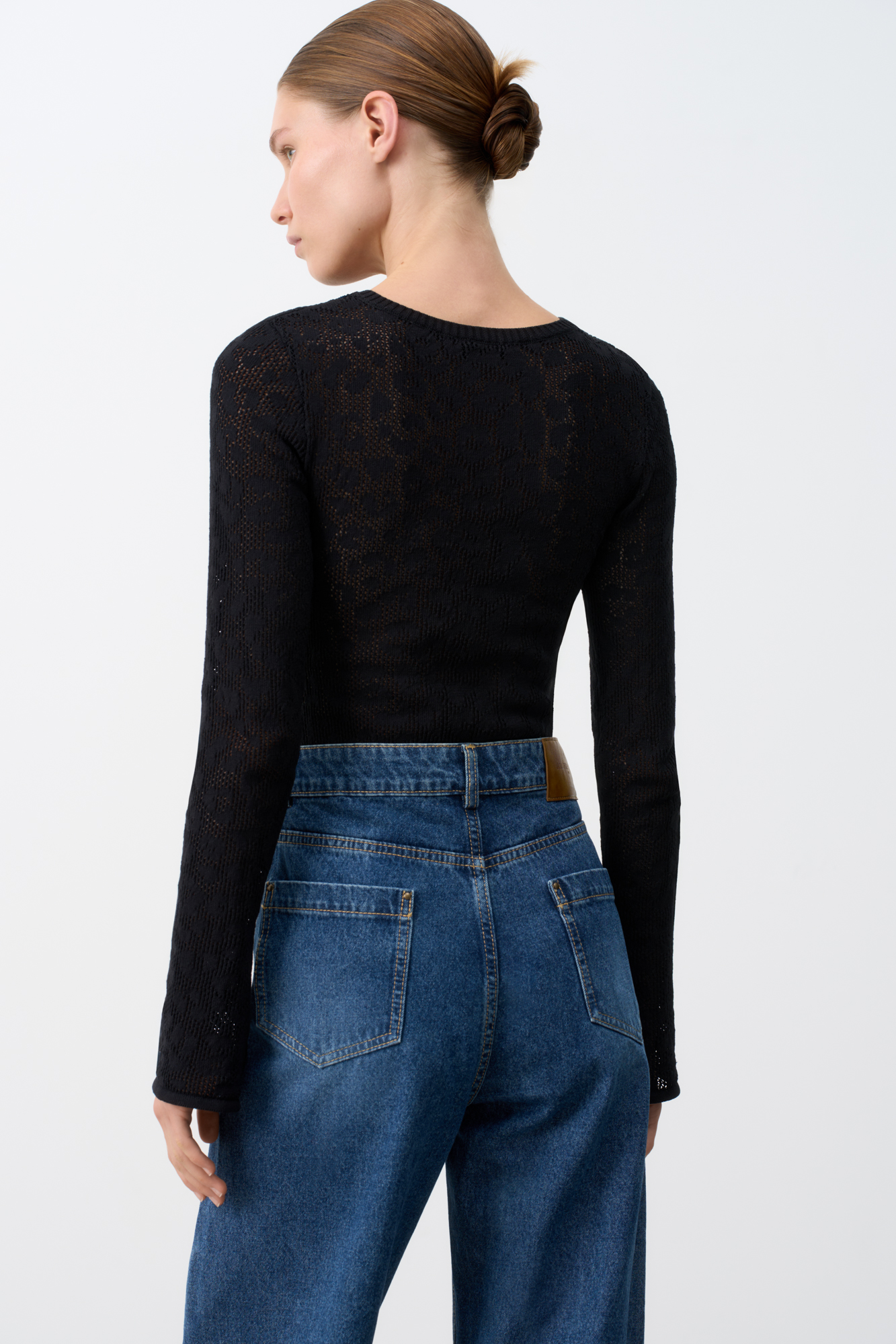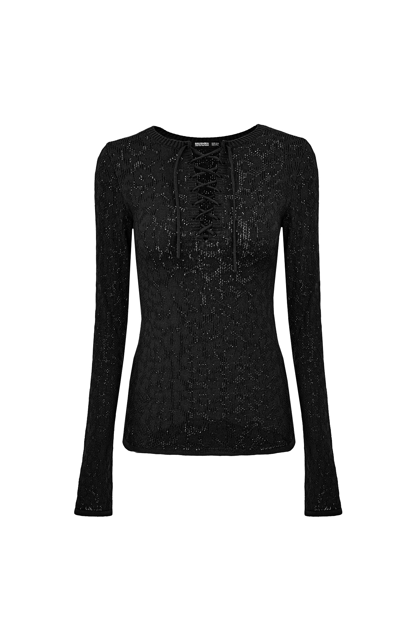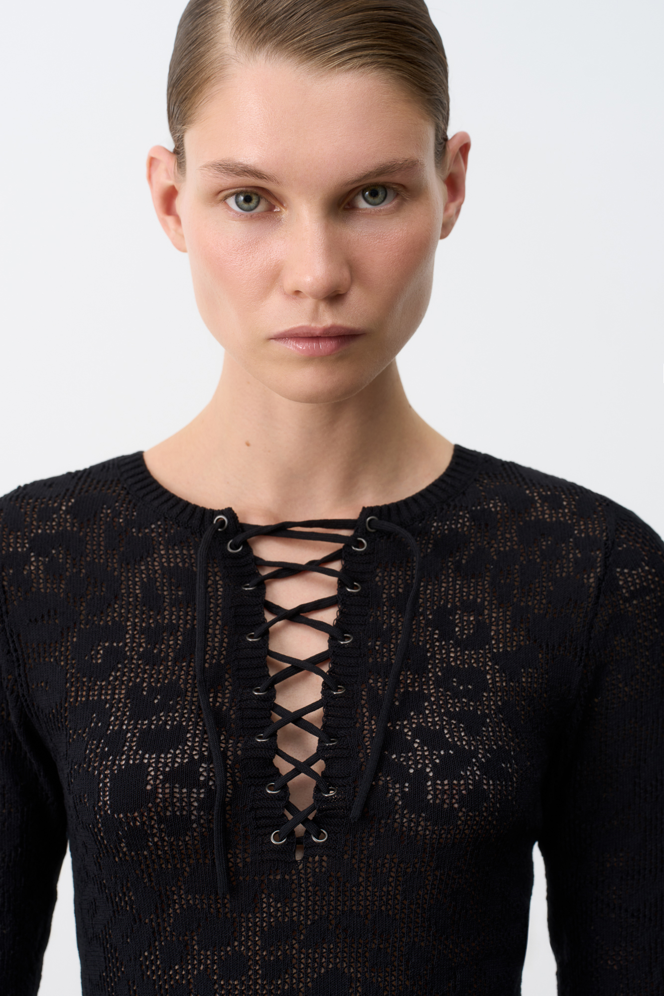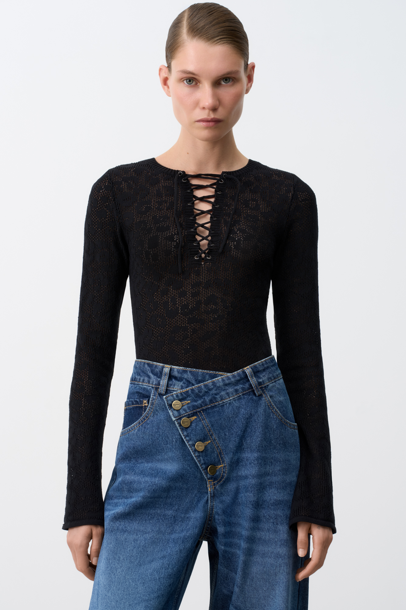 Трикотажный топ из органического хлопка. Модель с длинными рукавами и шнуровкой спереди.