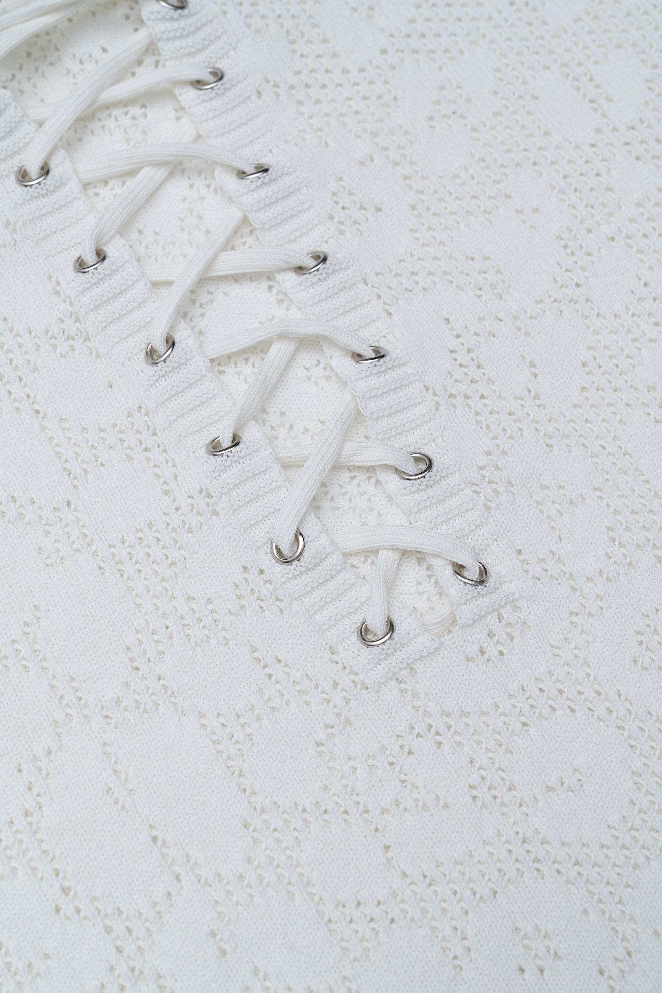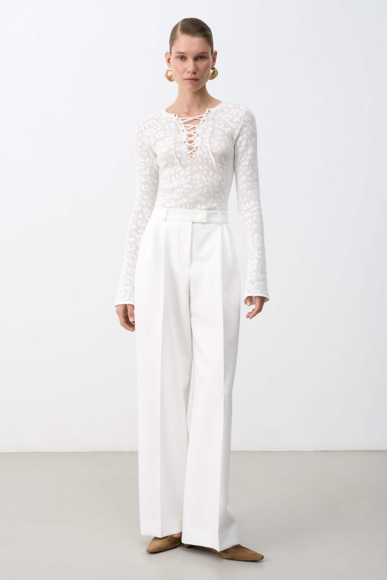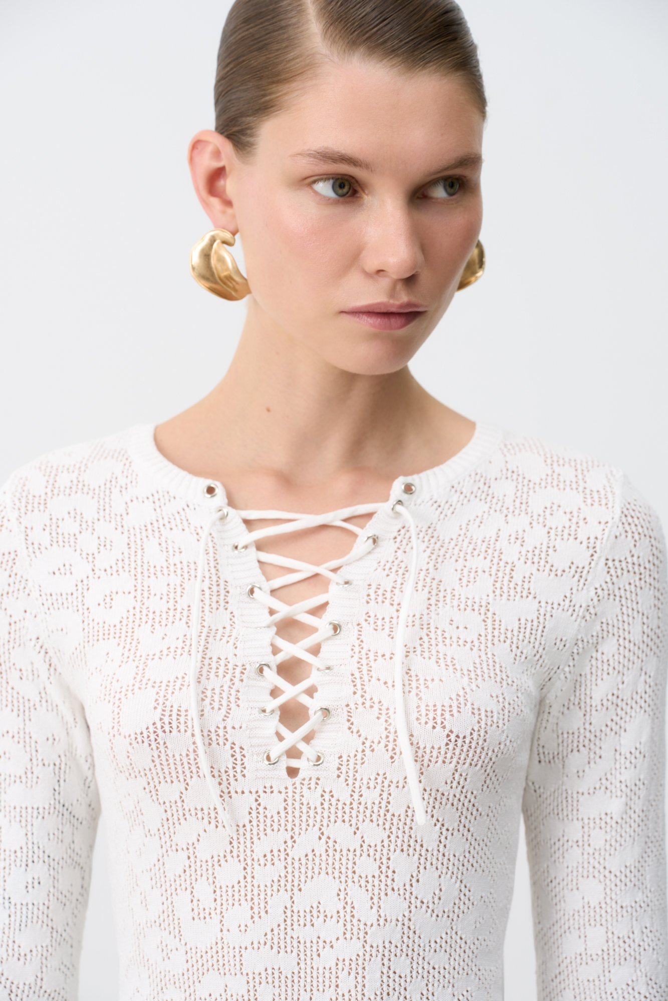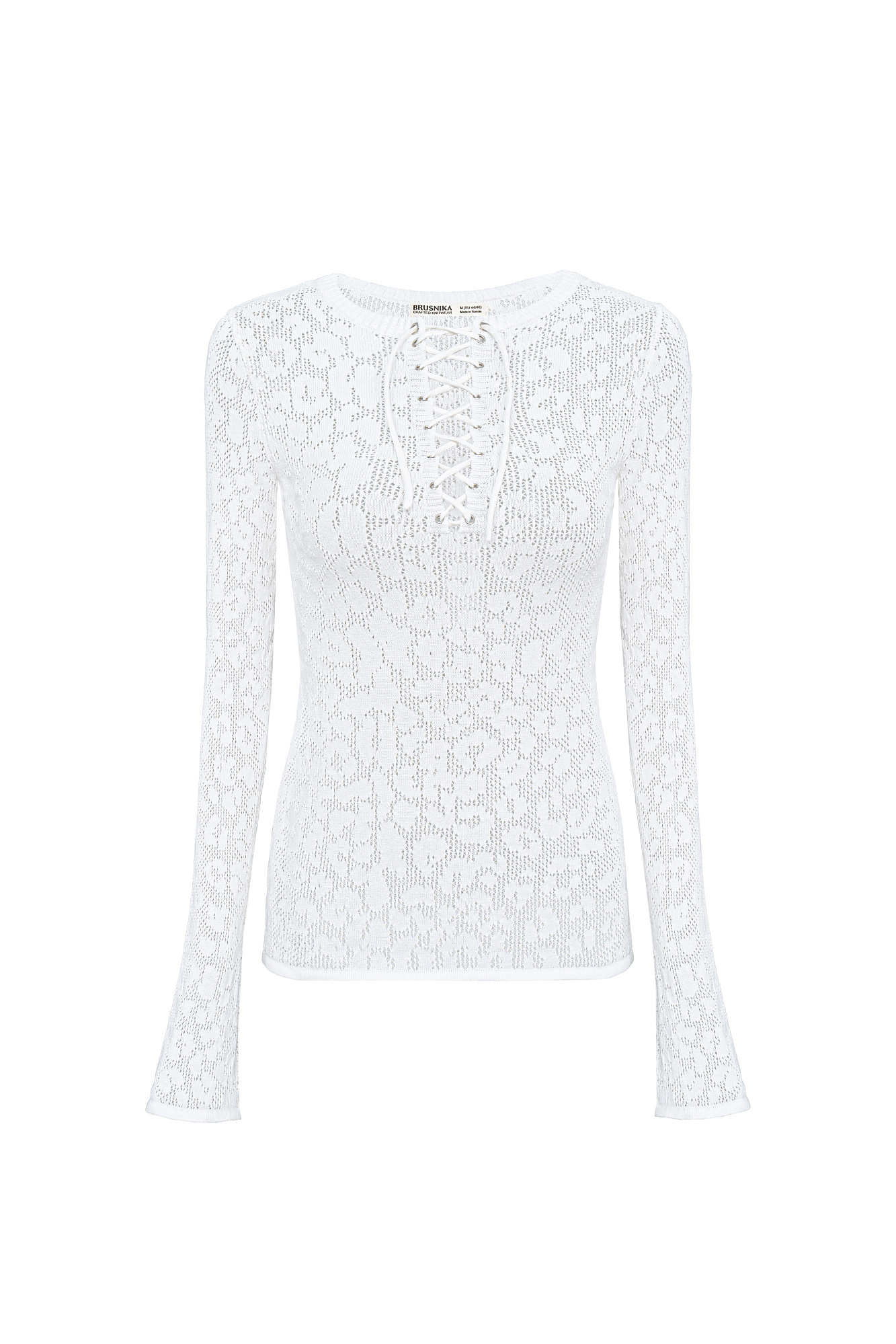Трикотажный топ из органического хлопка. Модель с длинными рукавами и шнуровкой спереди.