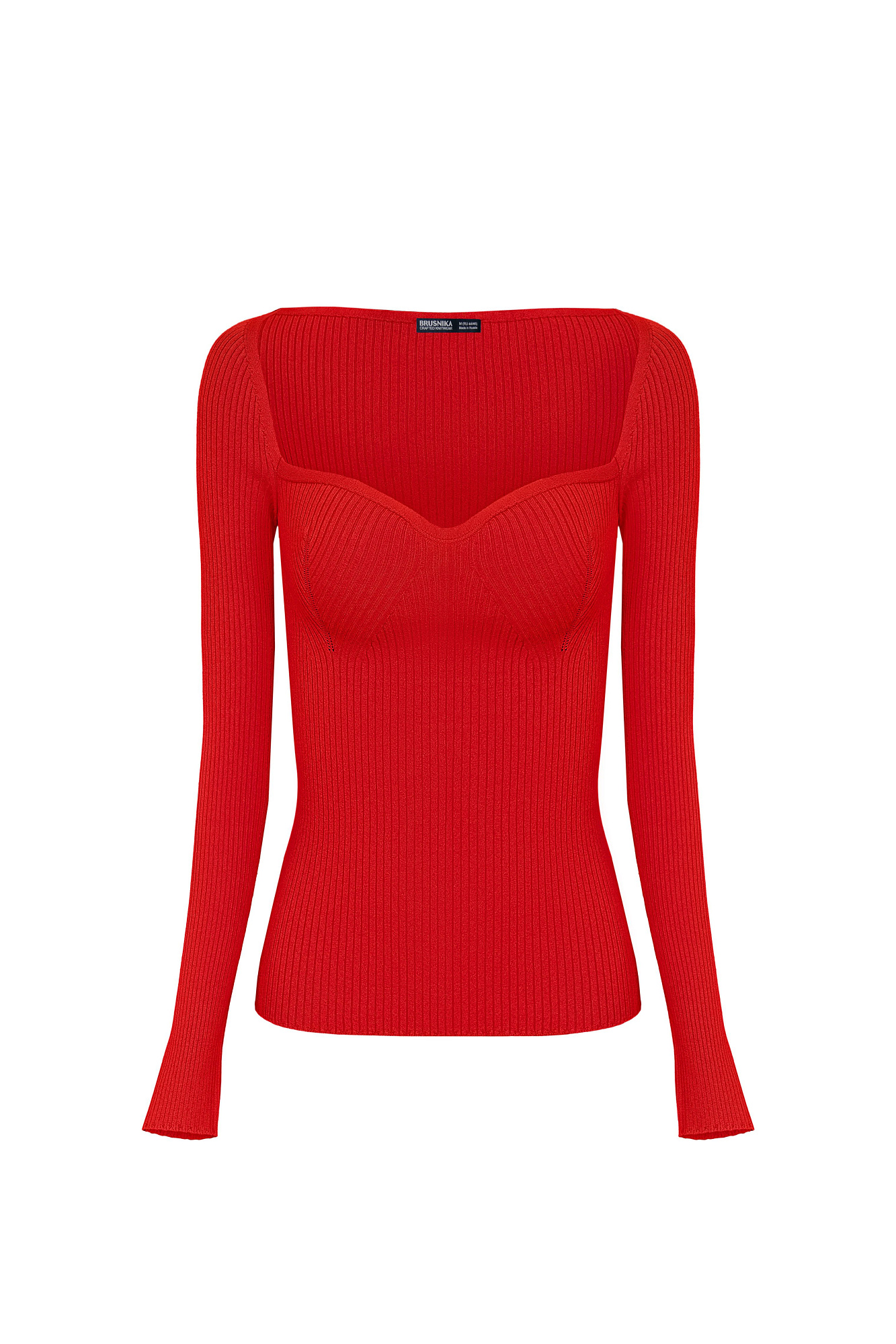 Трикотажный топ из вискозы. Модель приталенного силуэта с вывязанным открытым декольте, длинными рукавами и разрезом на манжетах.
