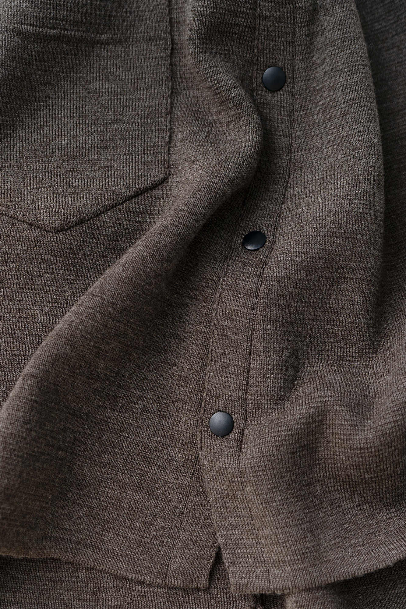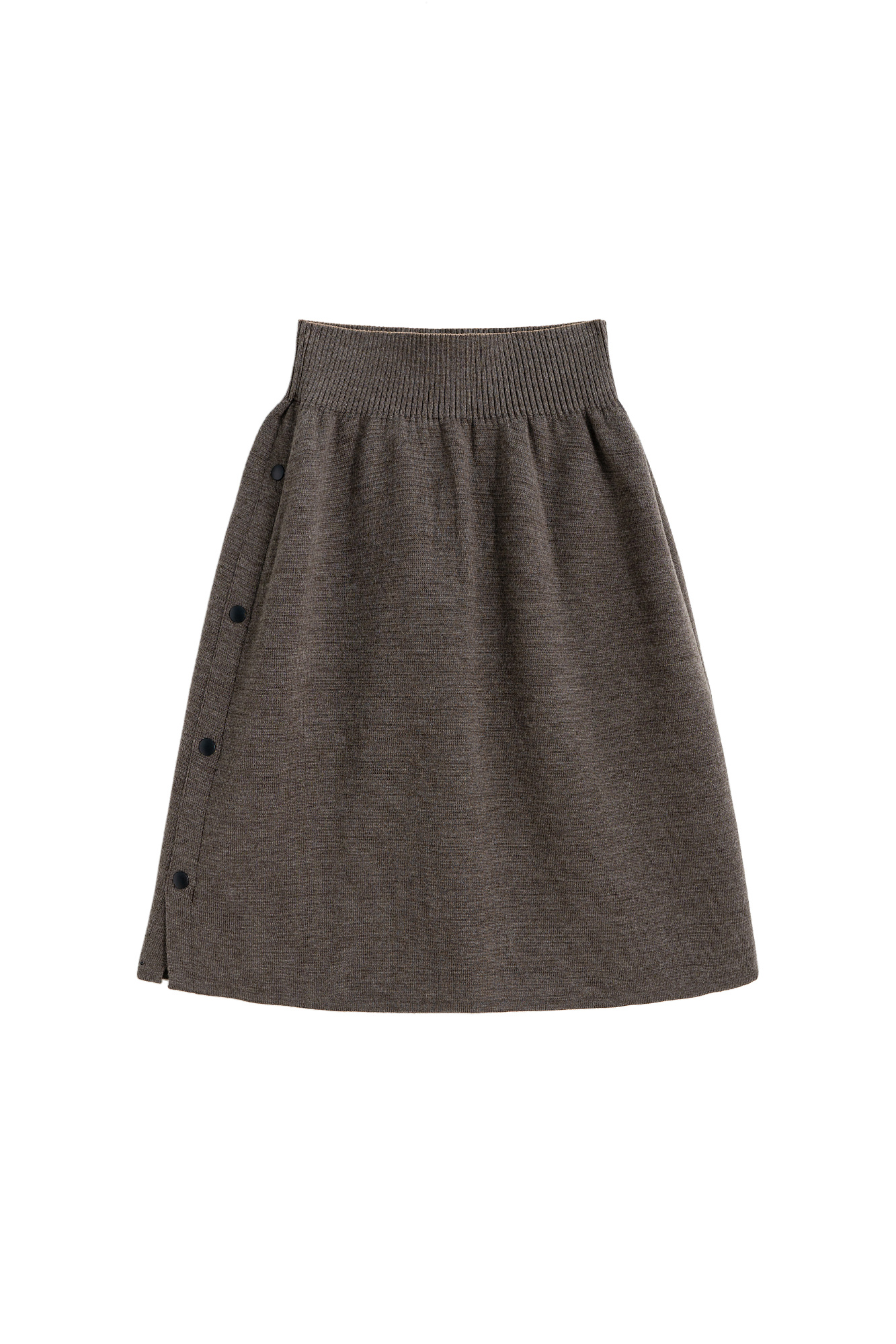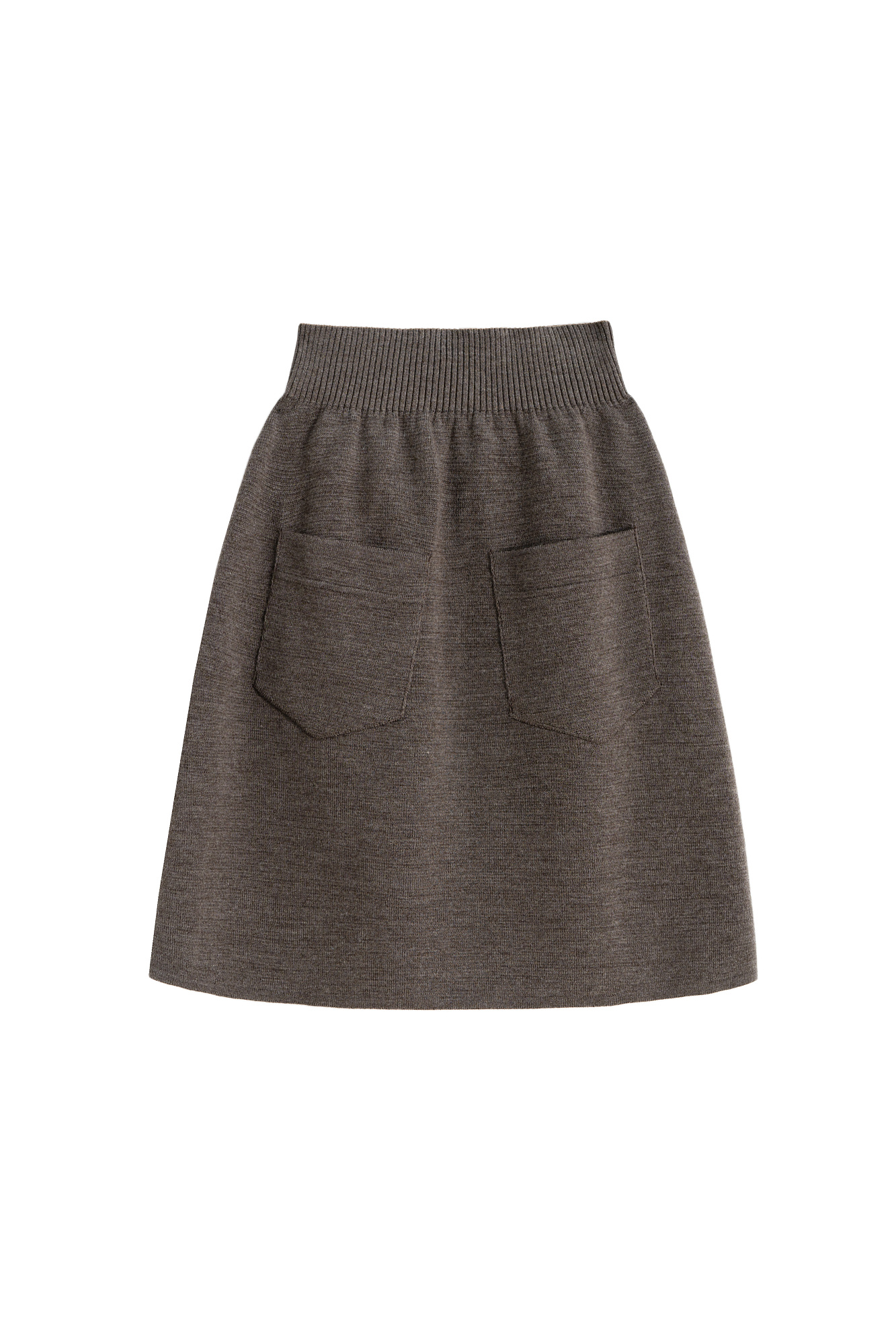 Трикотажная юбка длины мини из шерсти мериноса. Модель с боковой планкой на кнопках, небольшим вырезом сбоку, накладными карманами сзади и широким эластичным поясом на резинке. Дополнить образ можно жилетом, жакетом или бомбером.