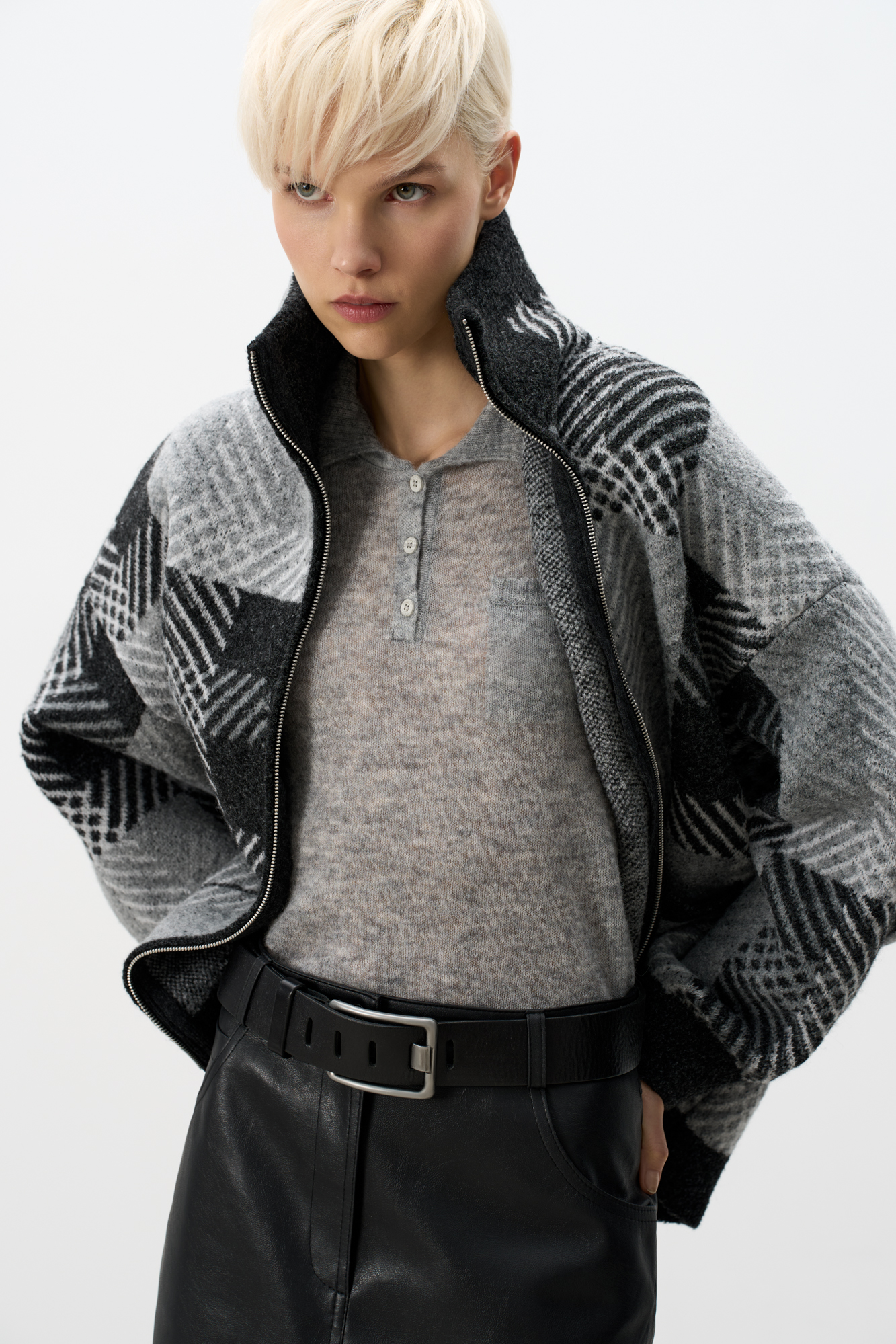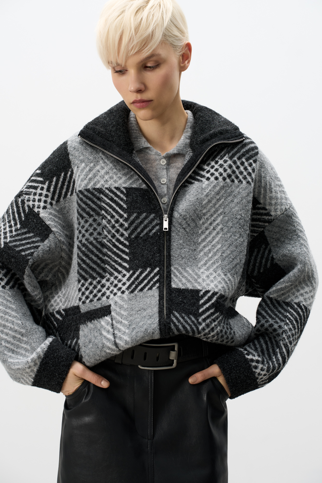 Трикотажный бомбер в клетку