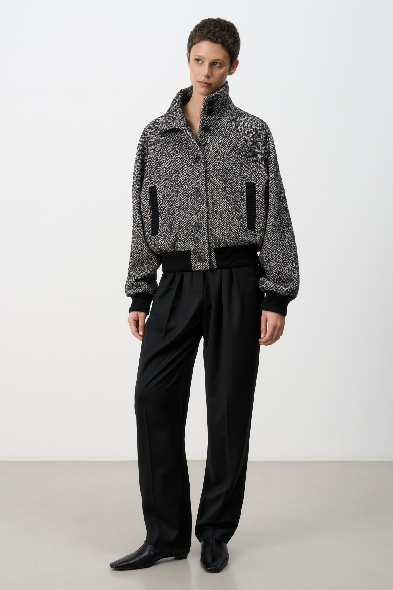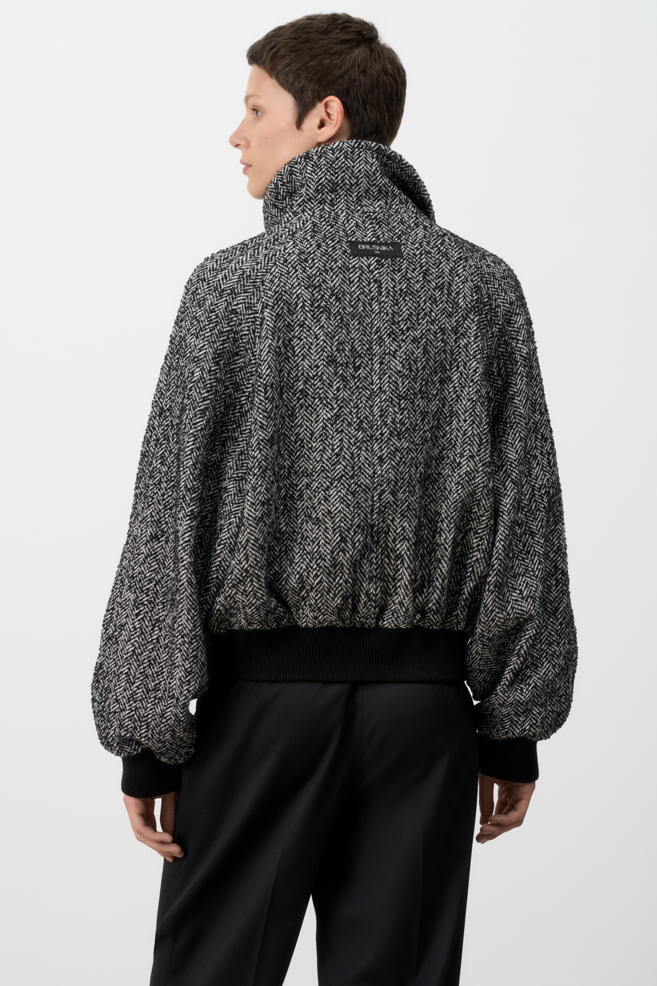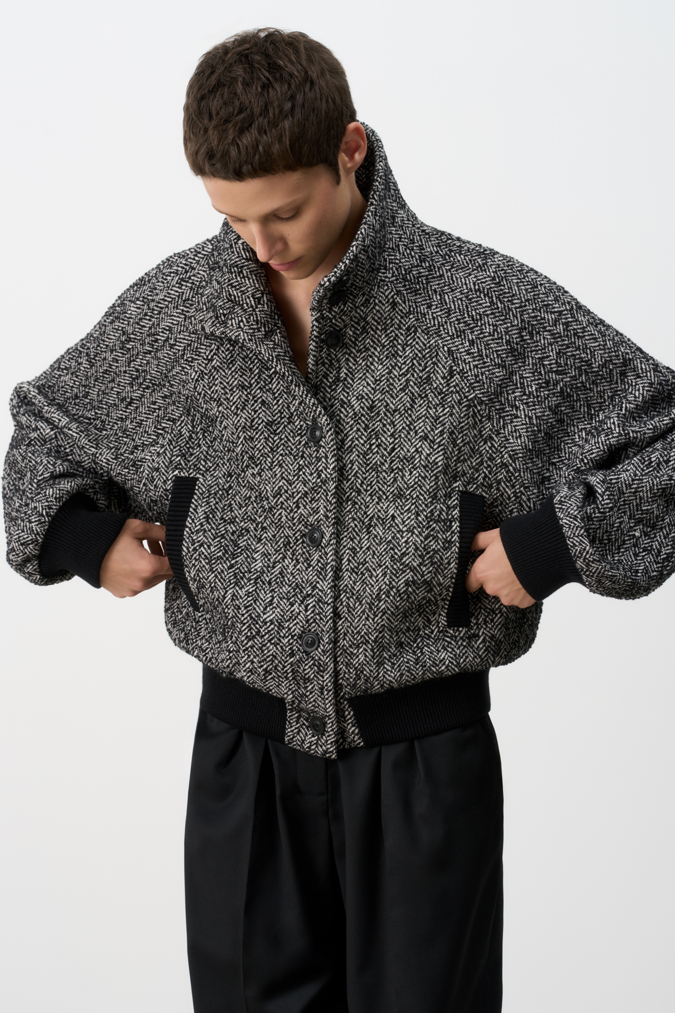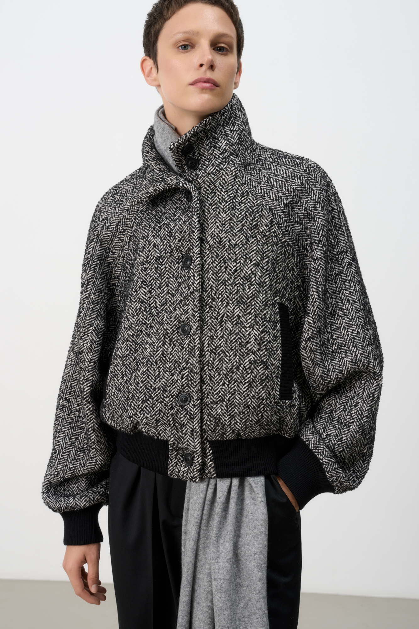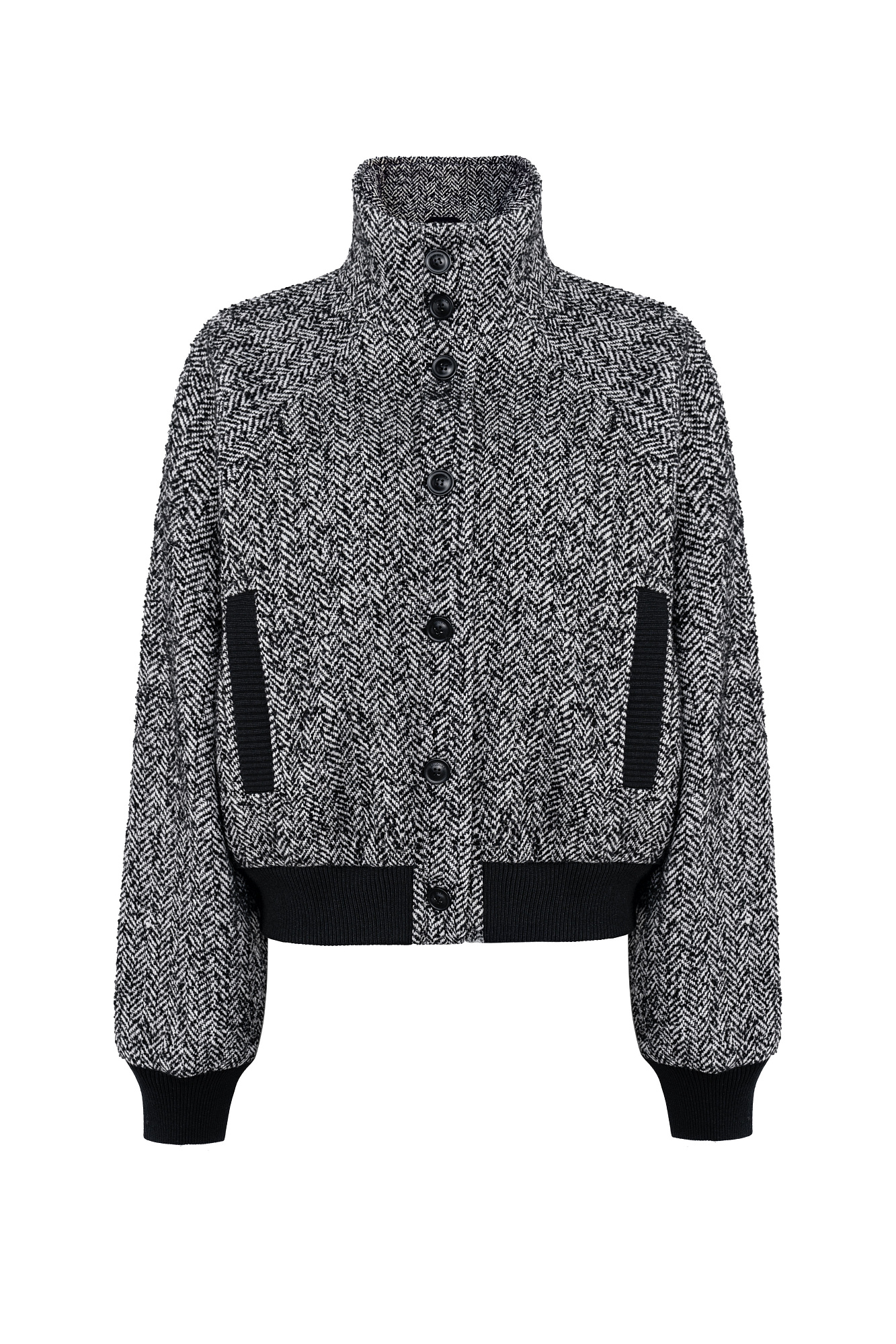 Шерстяной бомбер oversize с воротником-стойкой