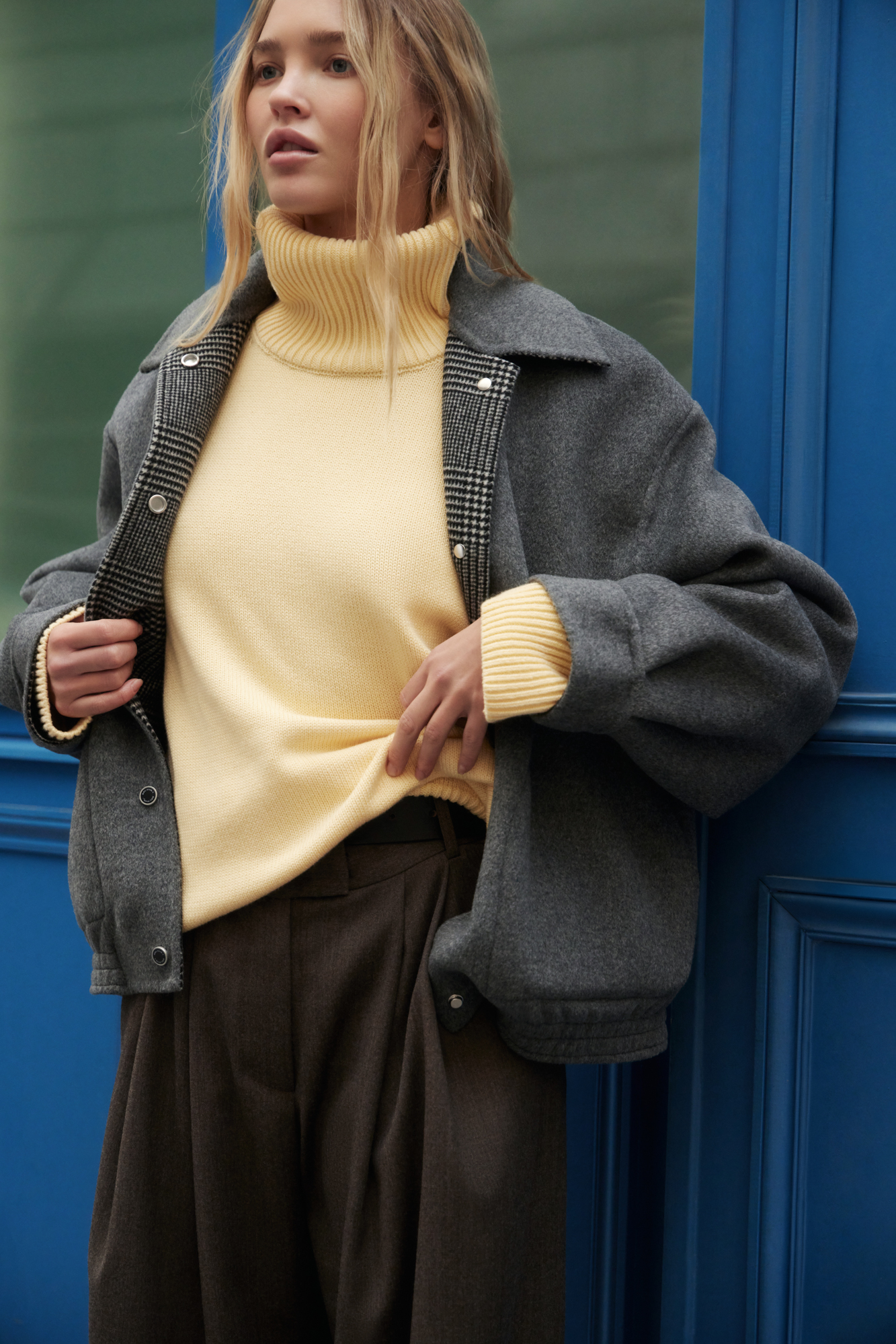 Технология Double Face, использованная при создании этой модели, позволяет обеим сторонам ткани выступать в качестве лицевой. Тщательная ручная обработка швов обеспечивает отсутствие видимых строчек на лицевой стороне.