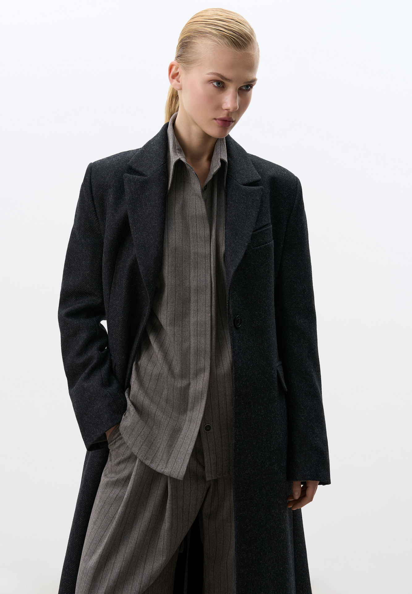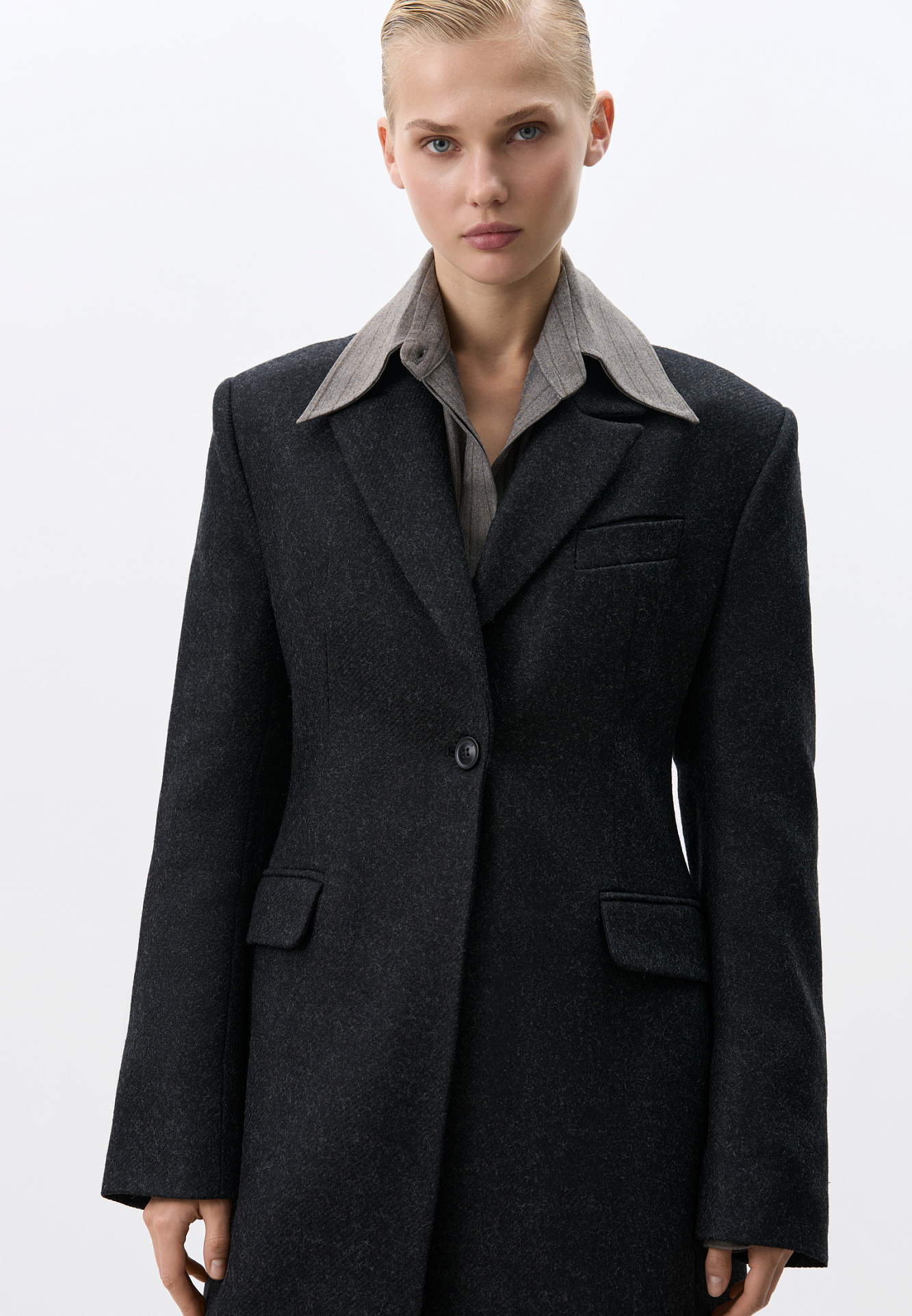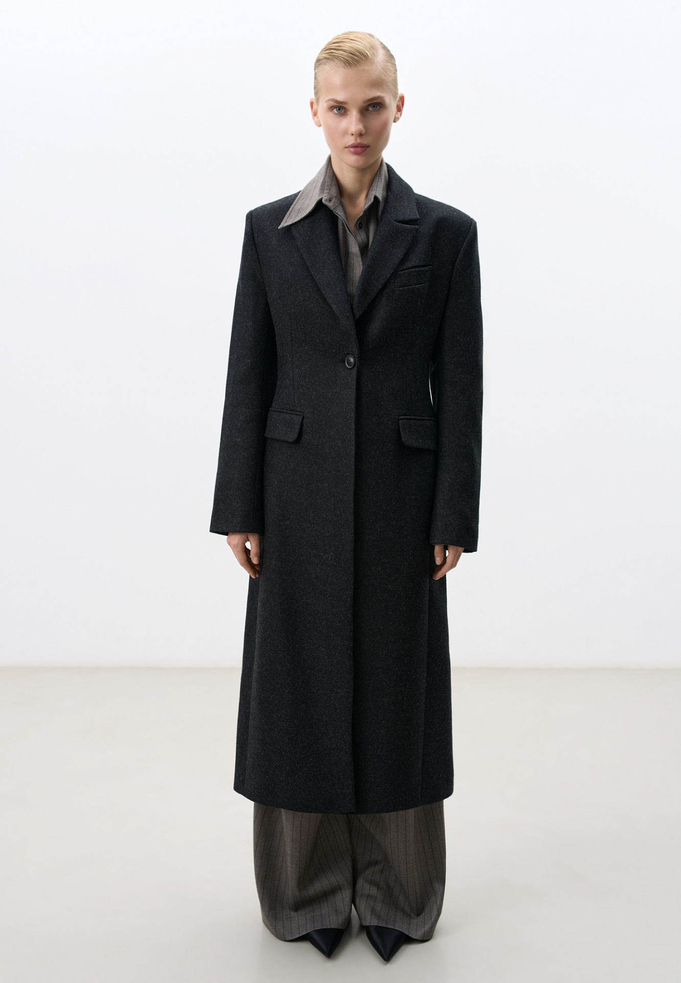 Однобортное шерстяное пальто