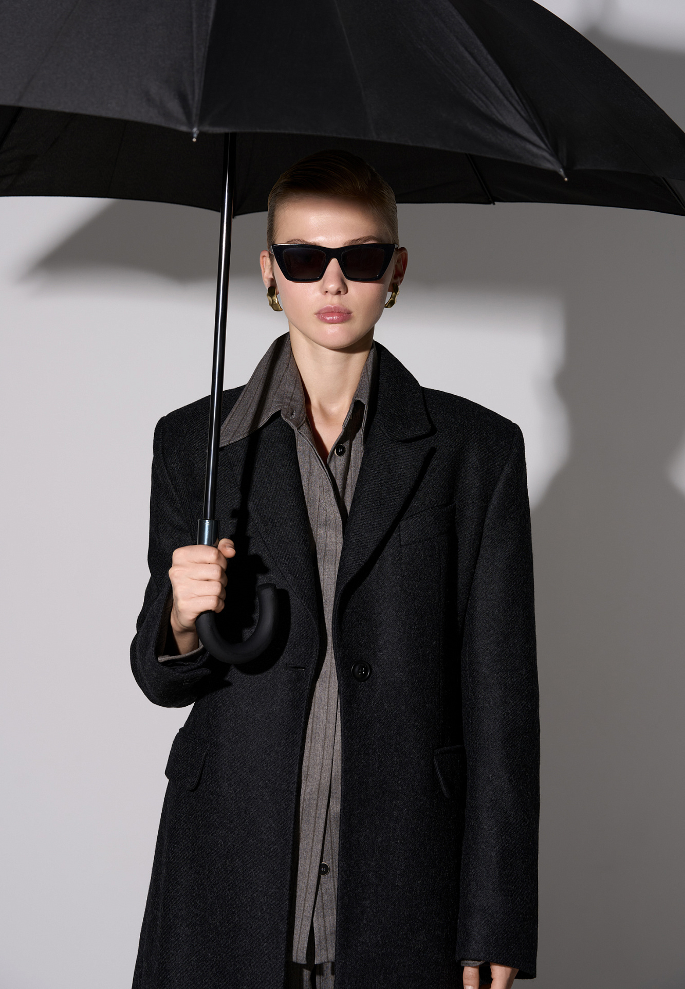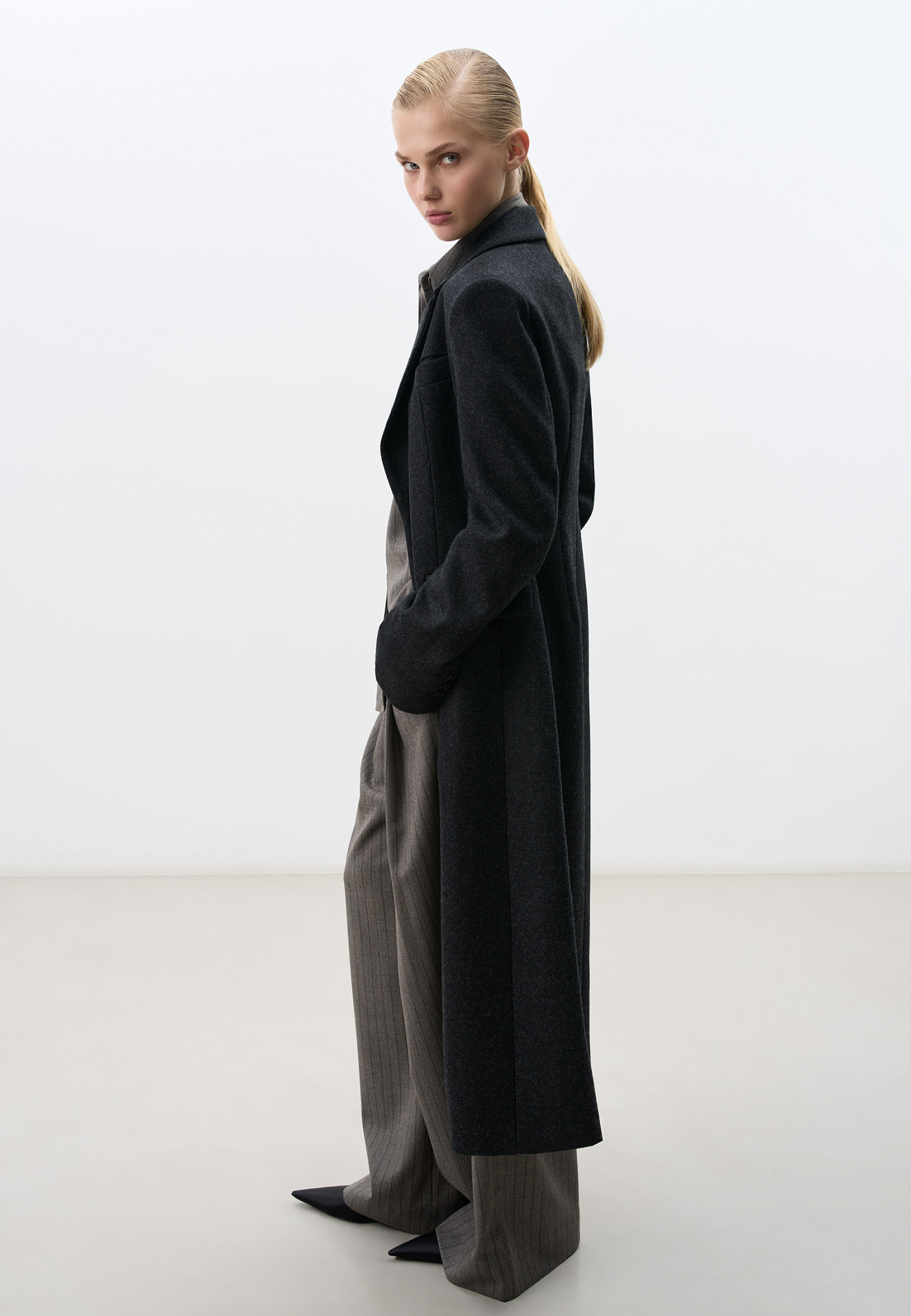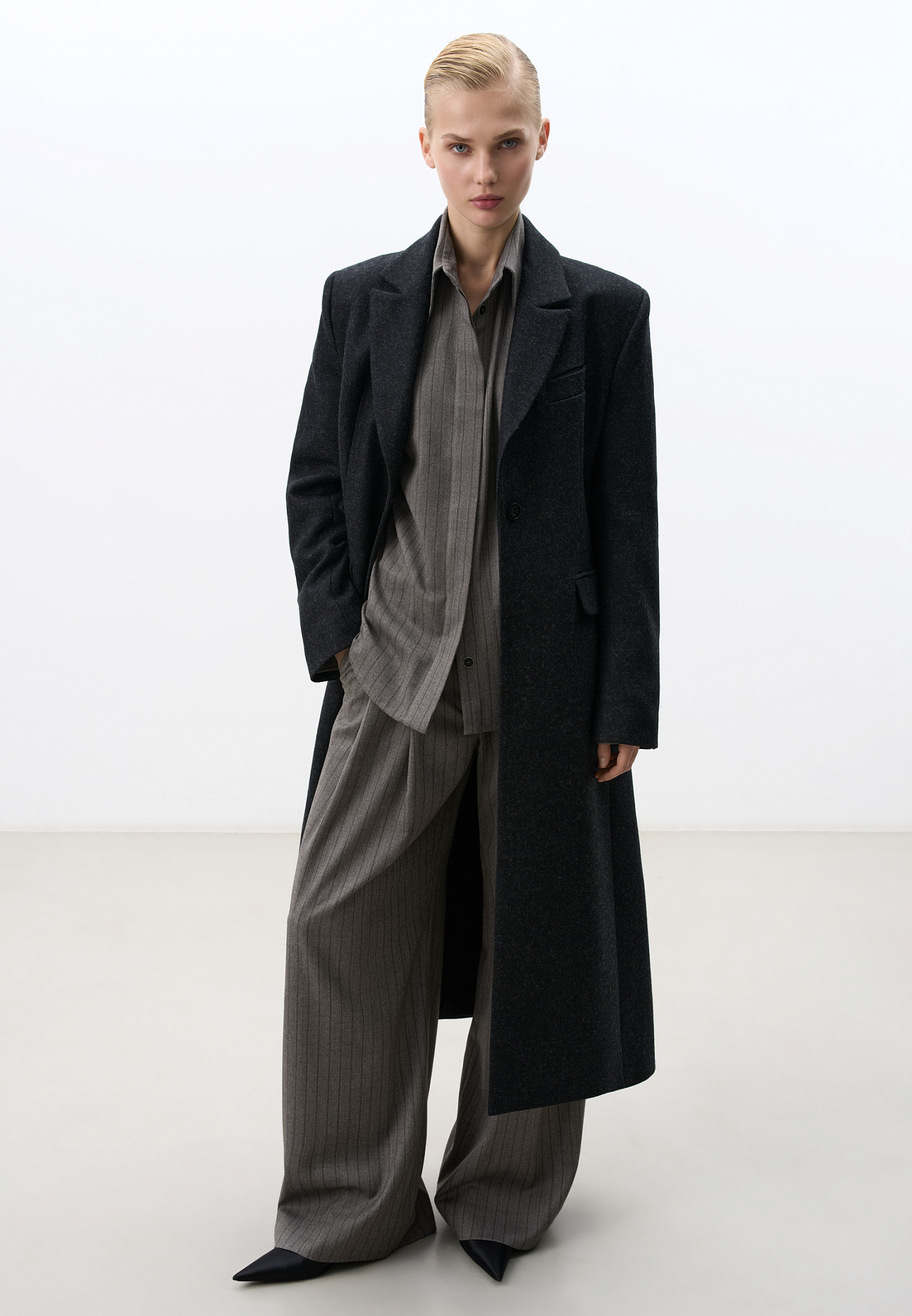 Однобортное шерстяное пальто