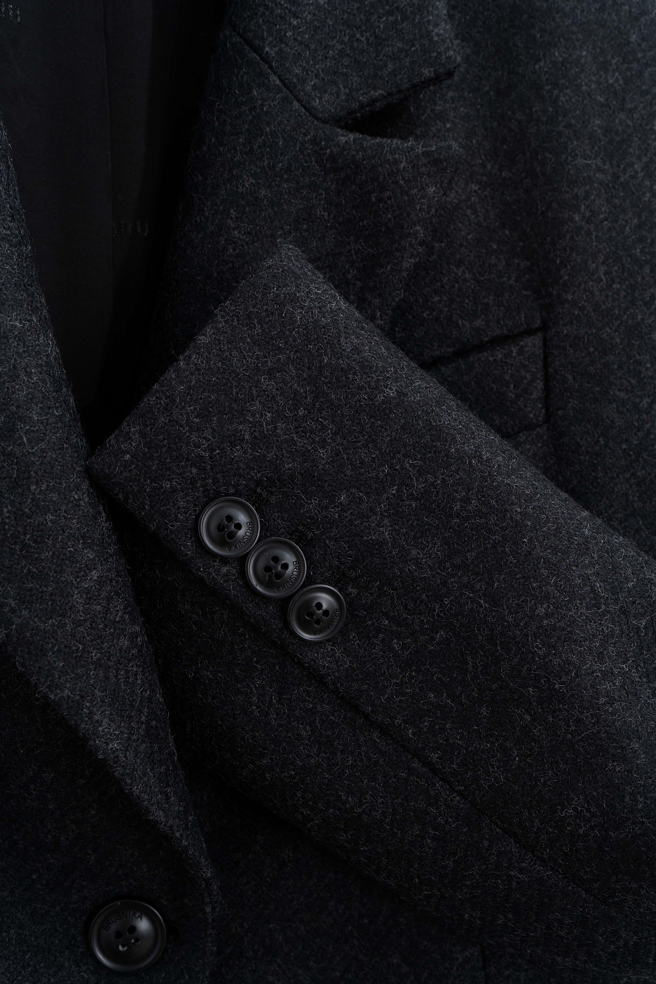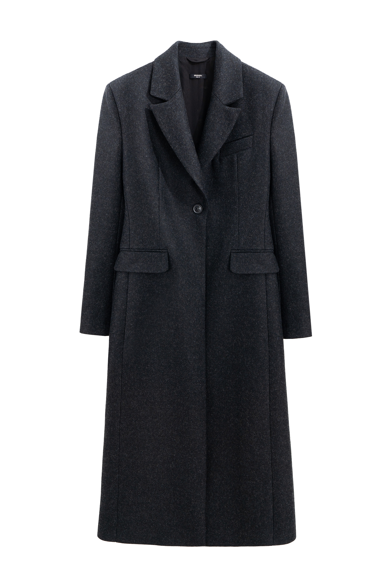 Классическое однобортное пальто из шерсти. Модель приталенного силуэта с широкими лацканами и карманами с клапанами. Изделие на подкладке. Застежка на пуговицу.