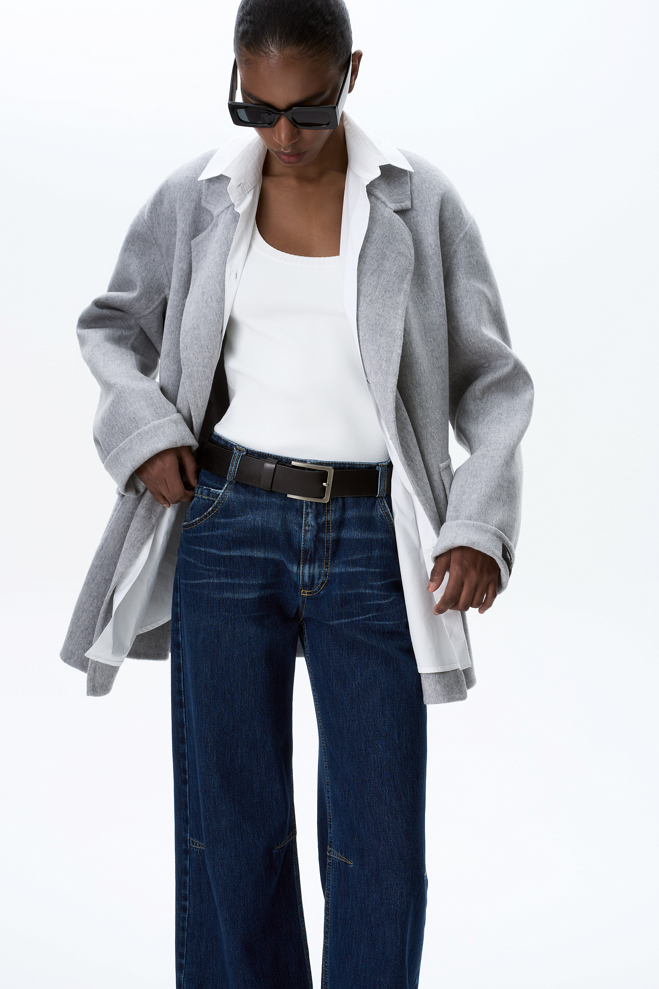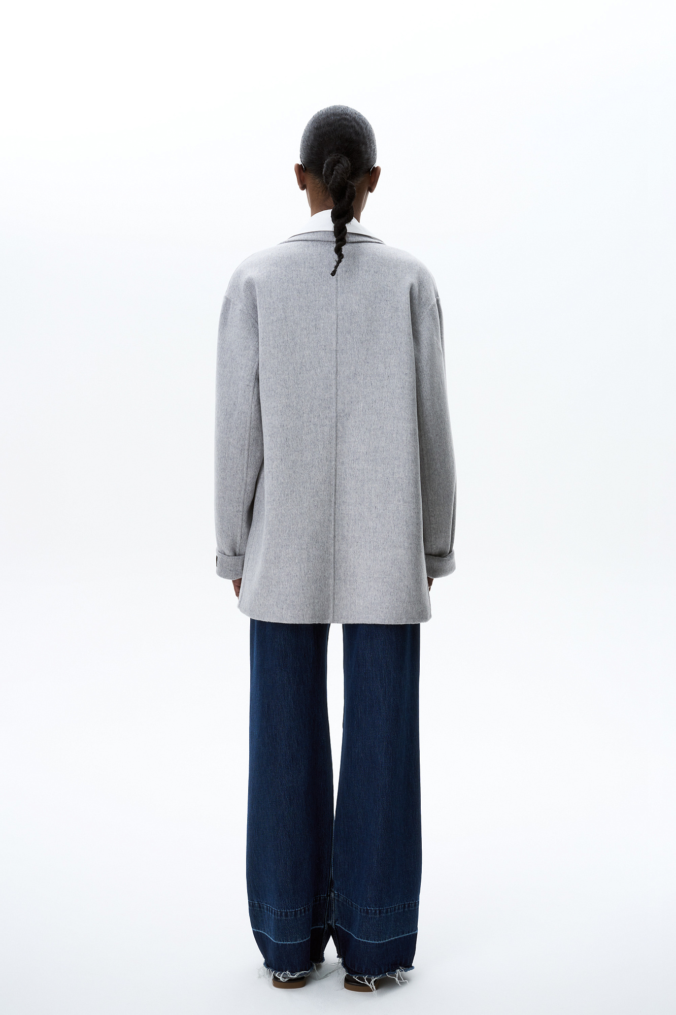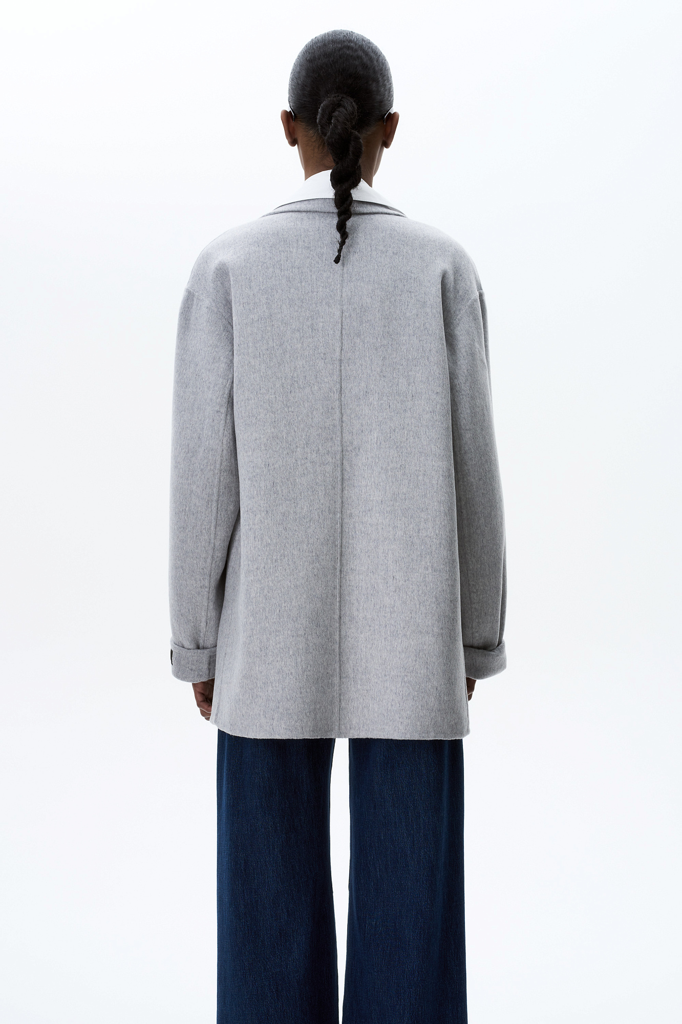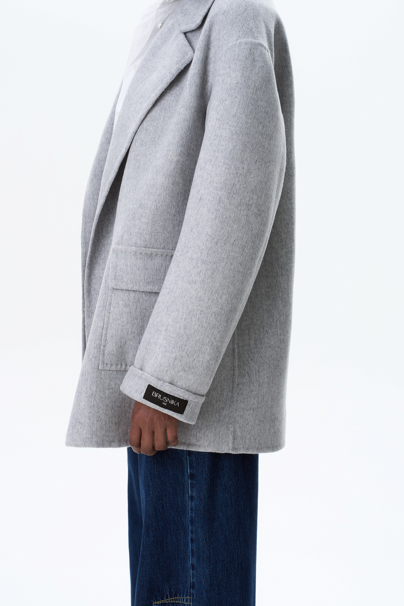 Жакет из двусторонней шерстной ткани на запах. Модель прямого кроя с отложным воротником и накладными карманами с клапанами. Изделие выполнено без подкладки. Тонкий пояс из экокожи в комплекте.