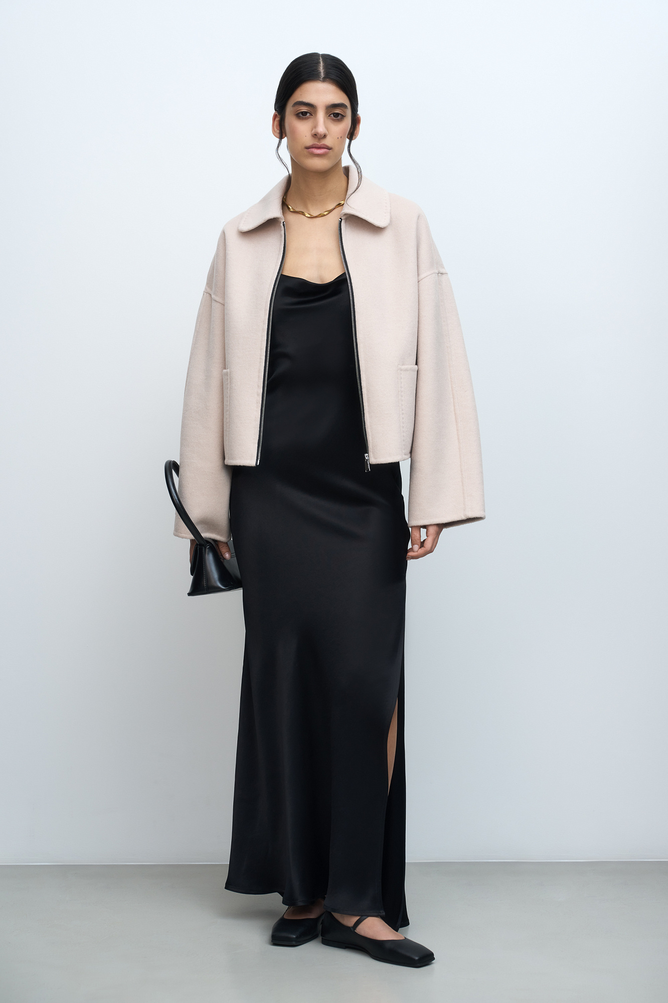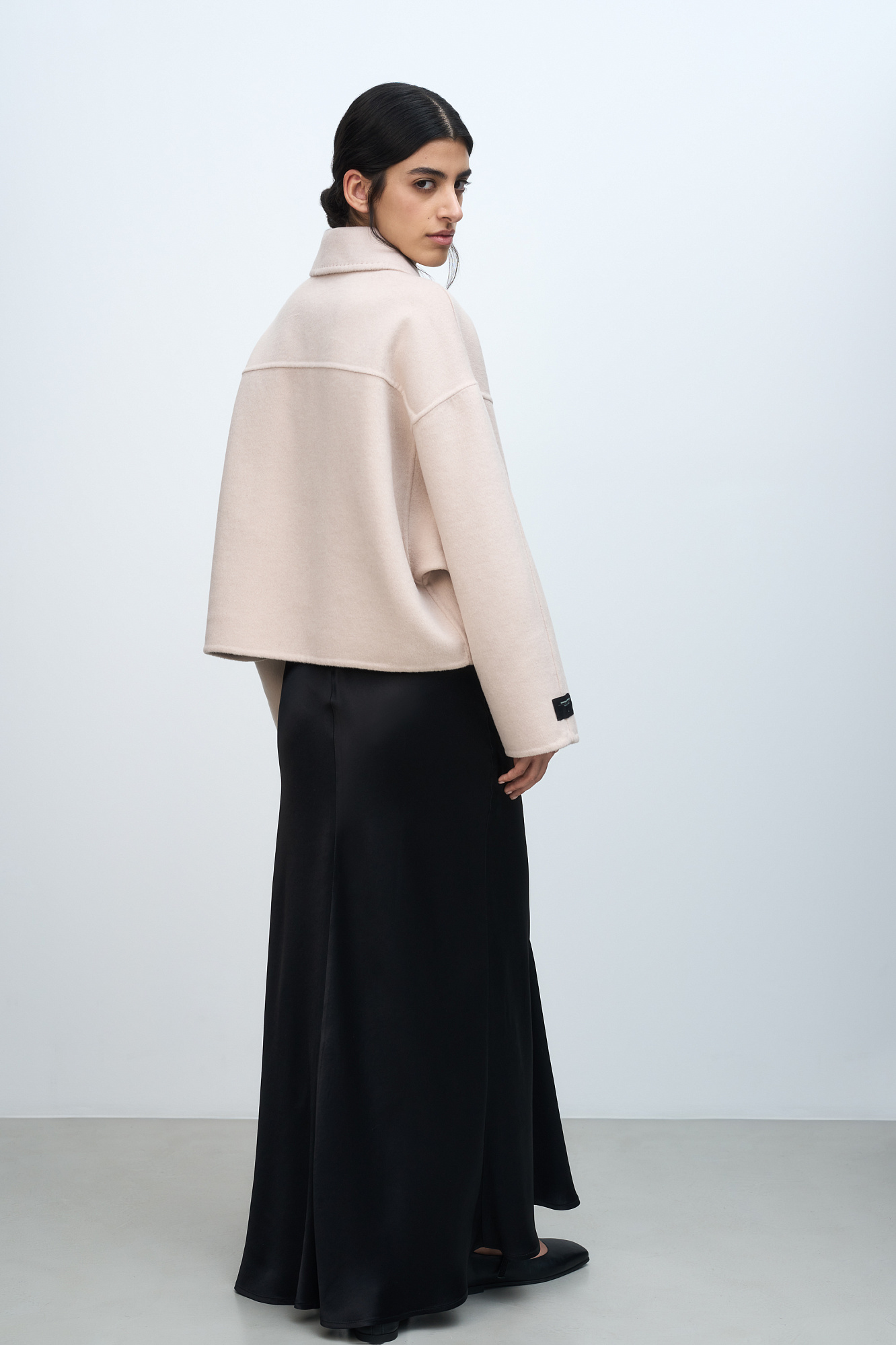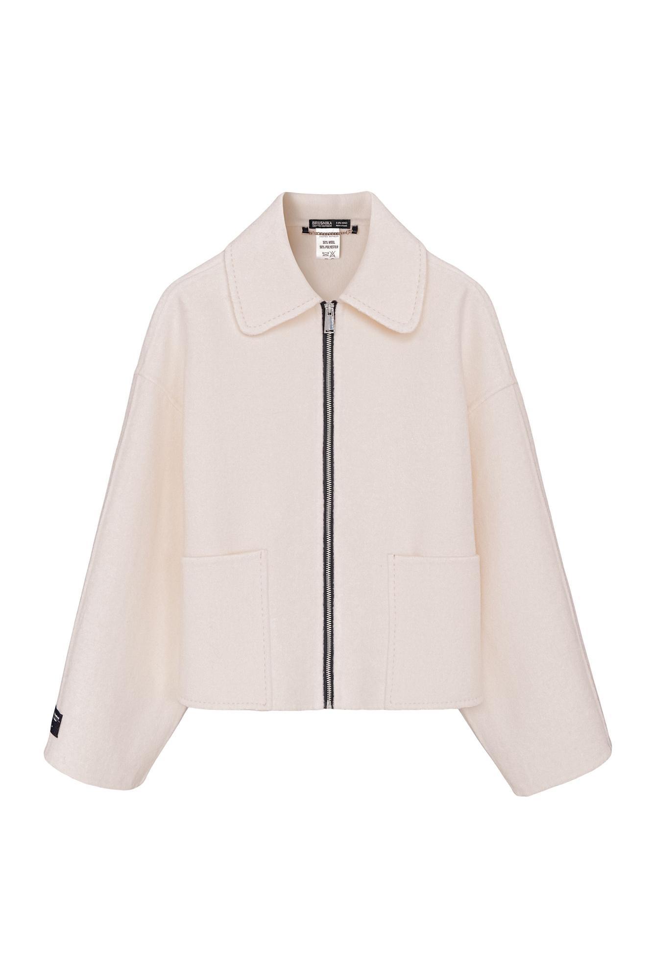 Укороченное пальто прямого силуэта с накладными карманами и застежкой на молнию. Акцентные швы с имитацией ручного стежка. При пошиве модели была использована технология double face, внутренняя сторона выглядит также аккуратно, как и внешняя.