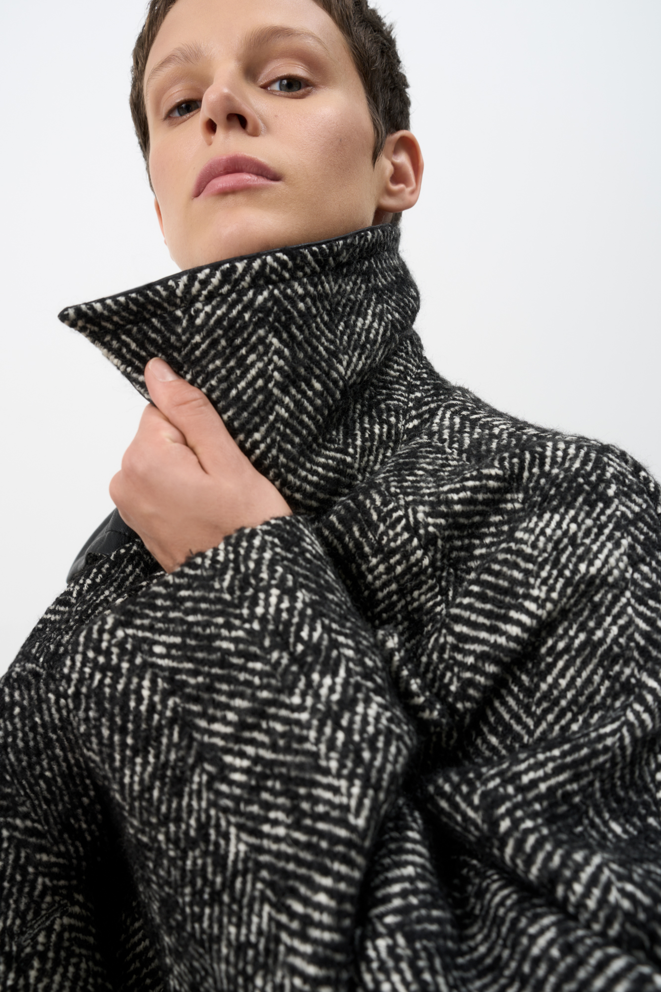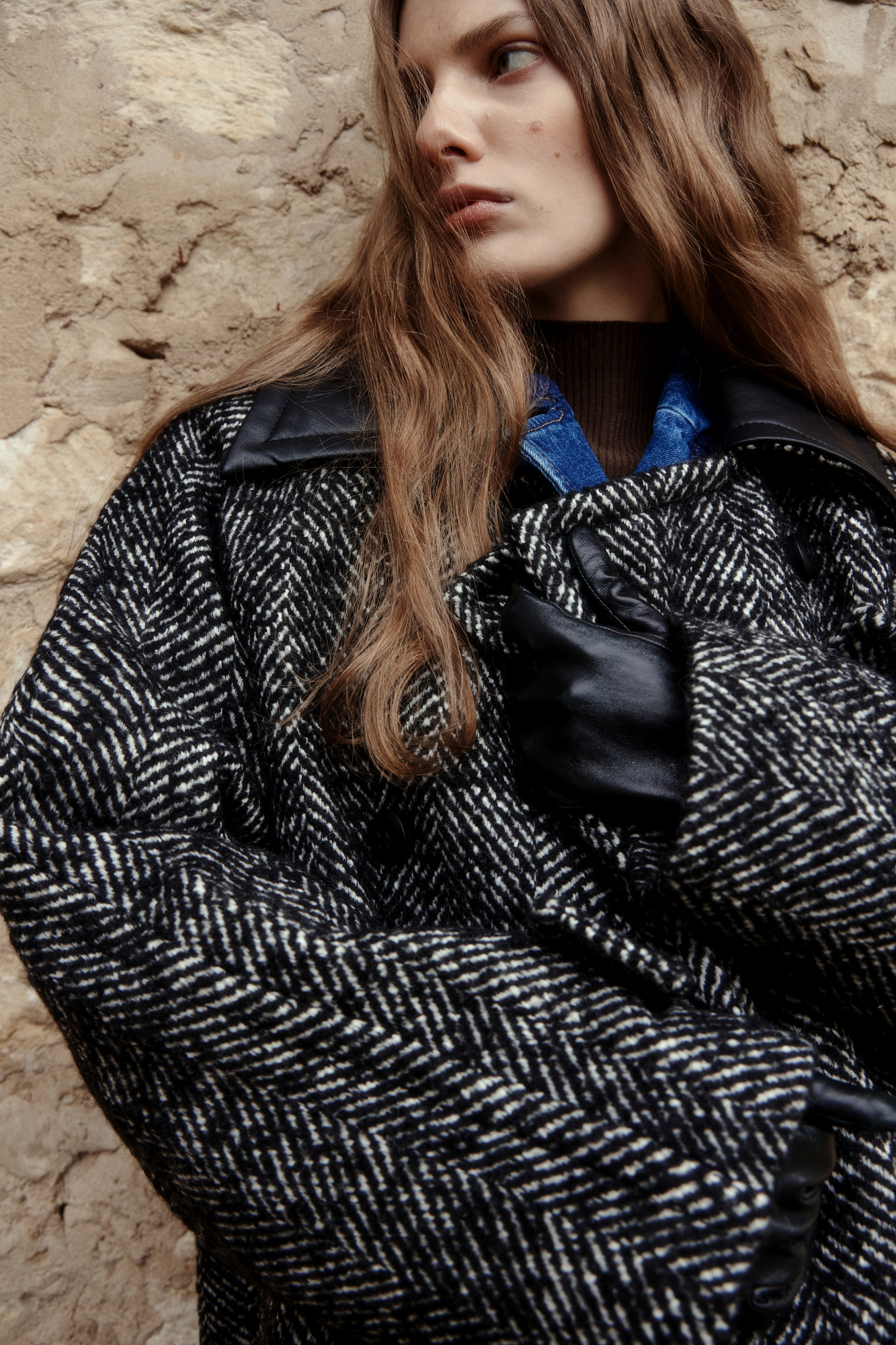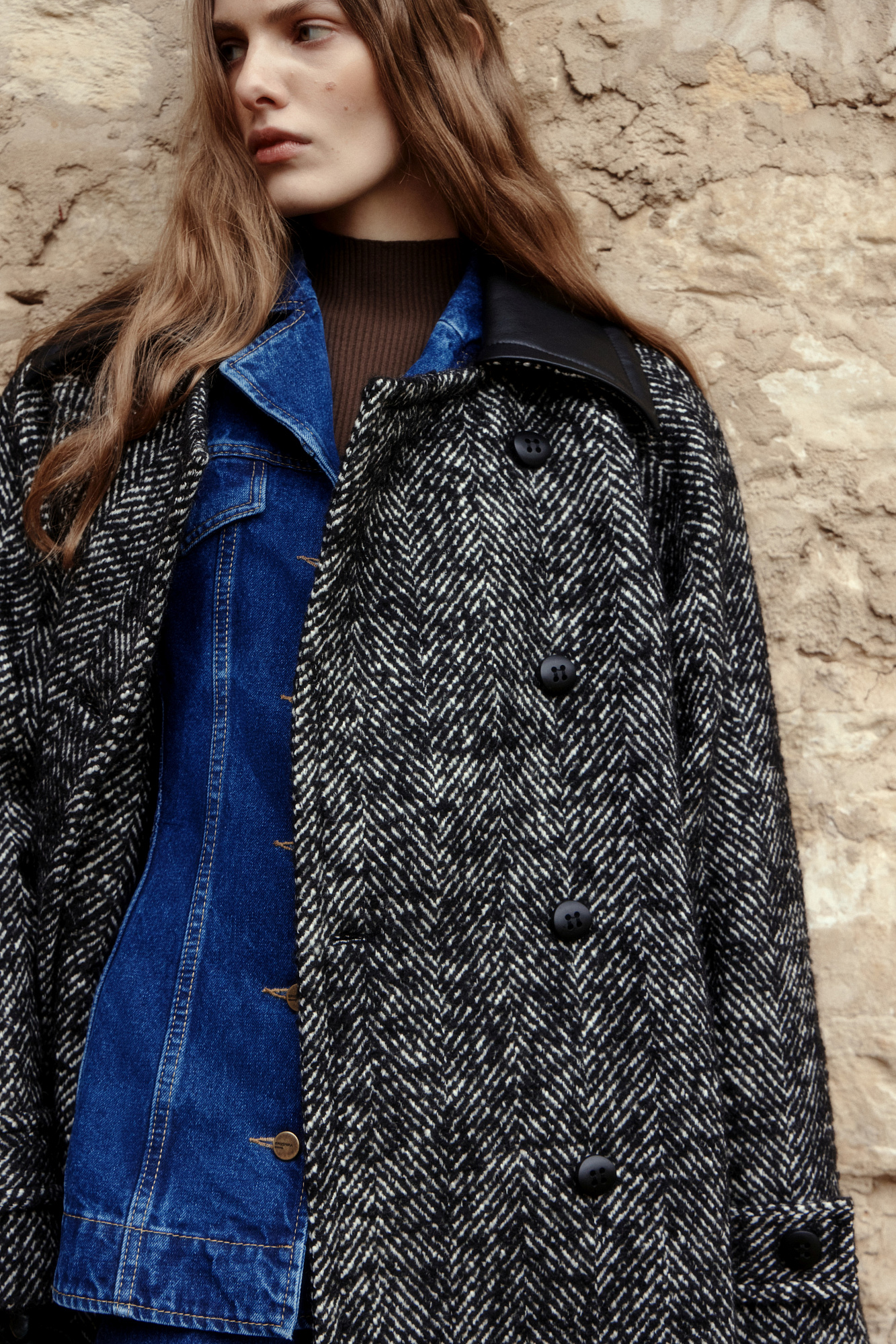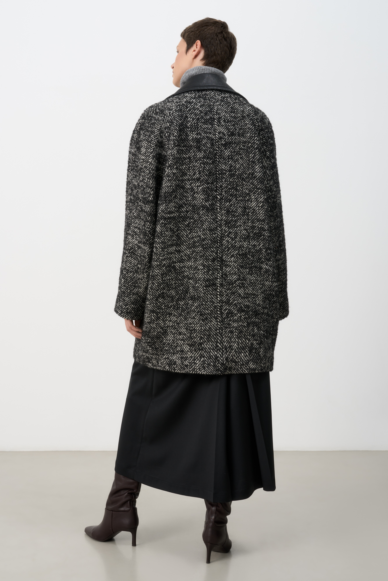 Шерстяное пальто с воротником из экокожи