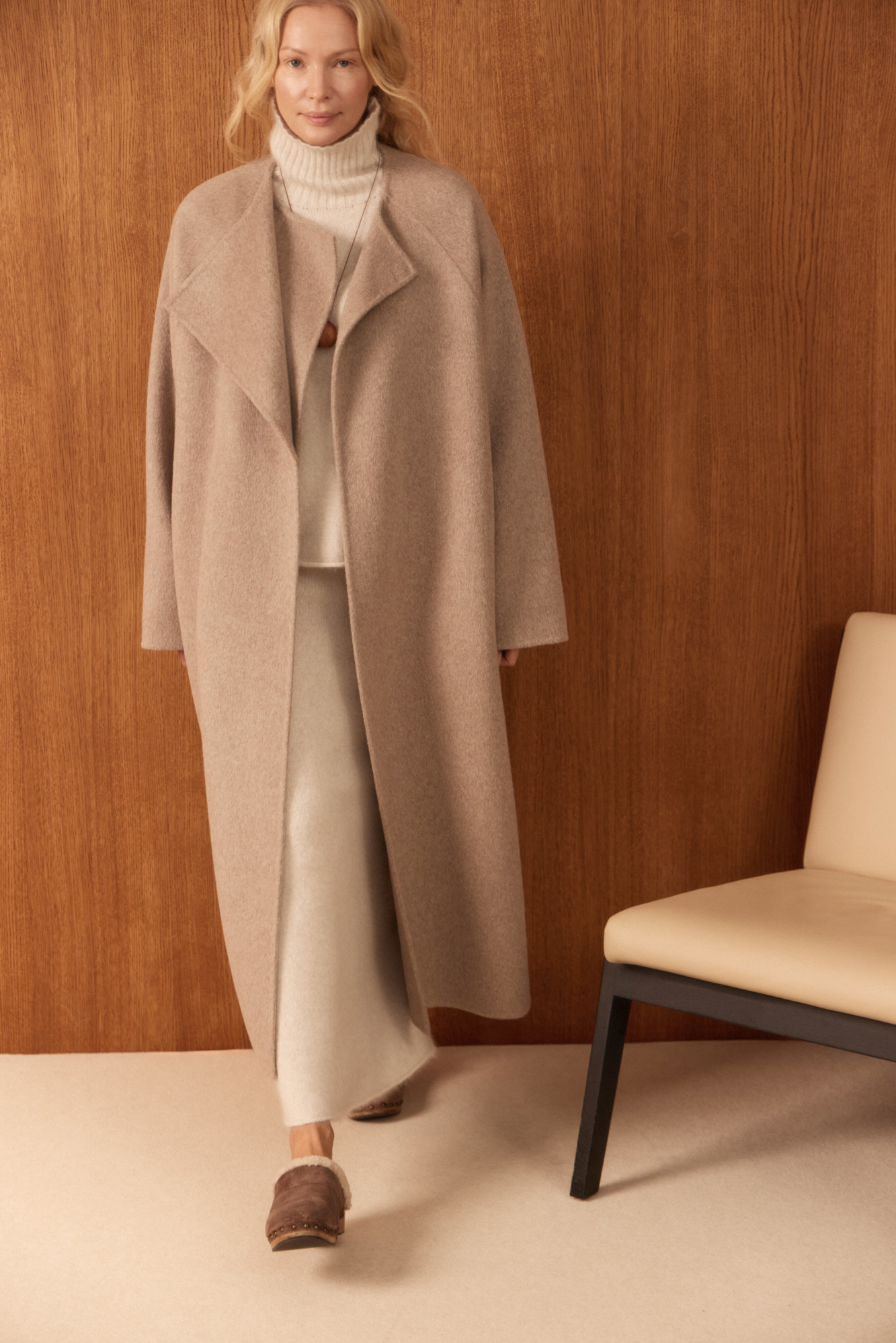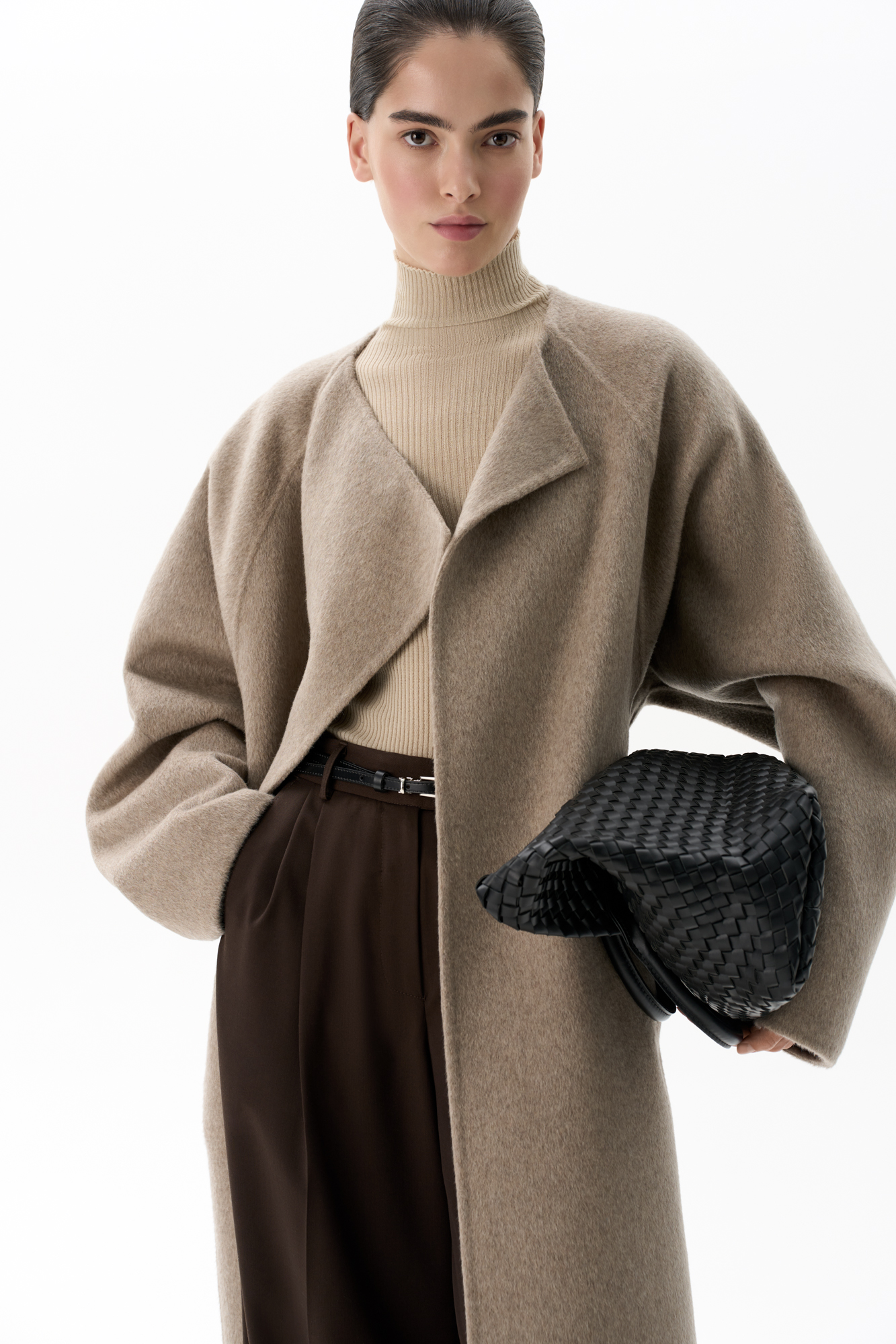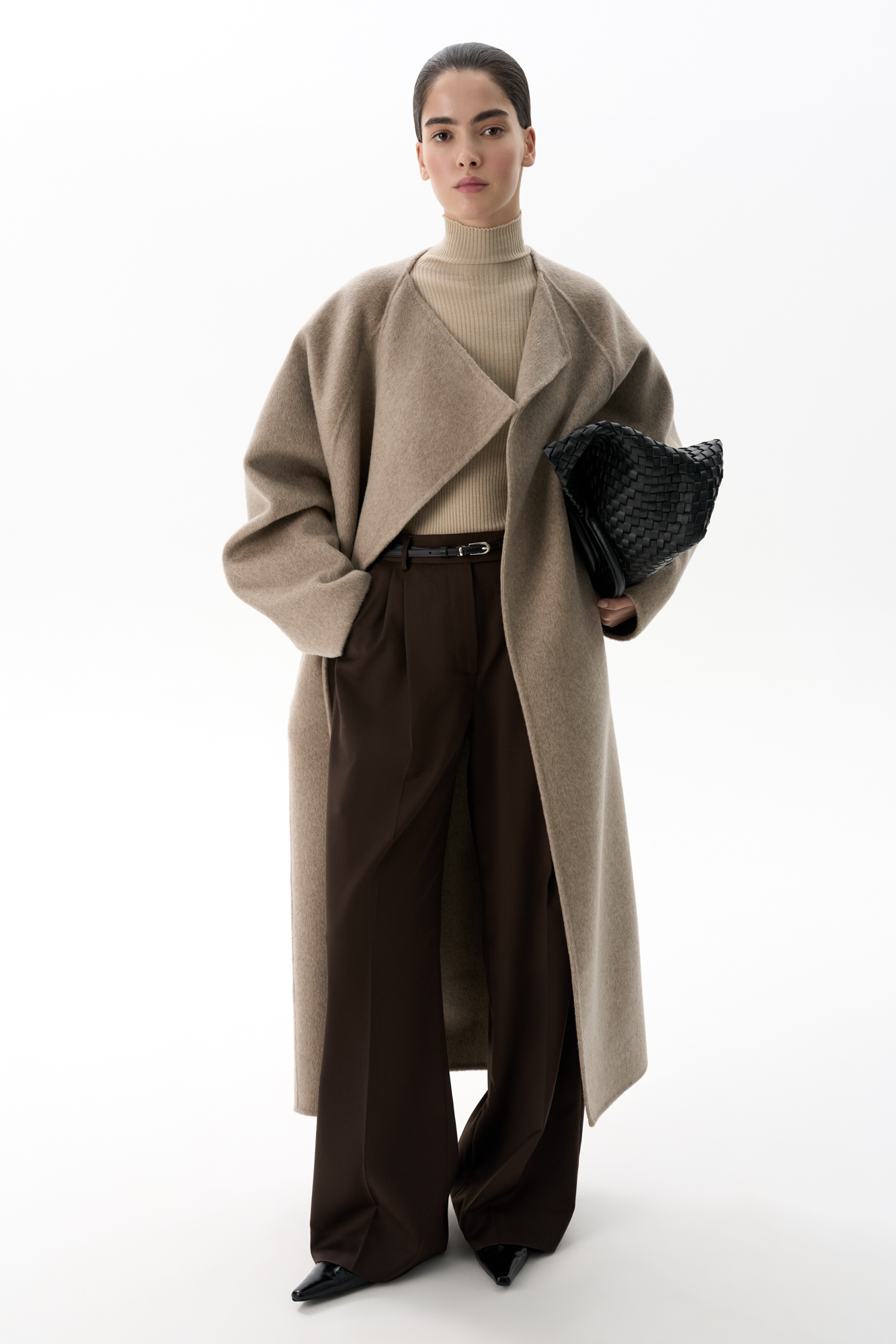 Шерстяное пальто с асимметричным лацканом