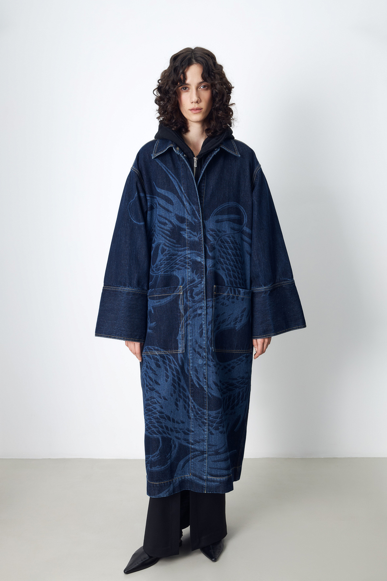 Принтованный джинсовый плащ