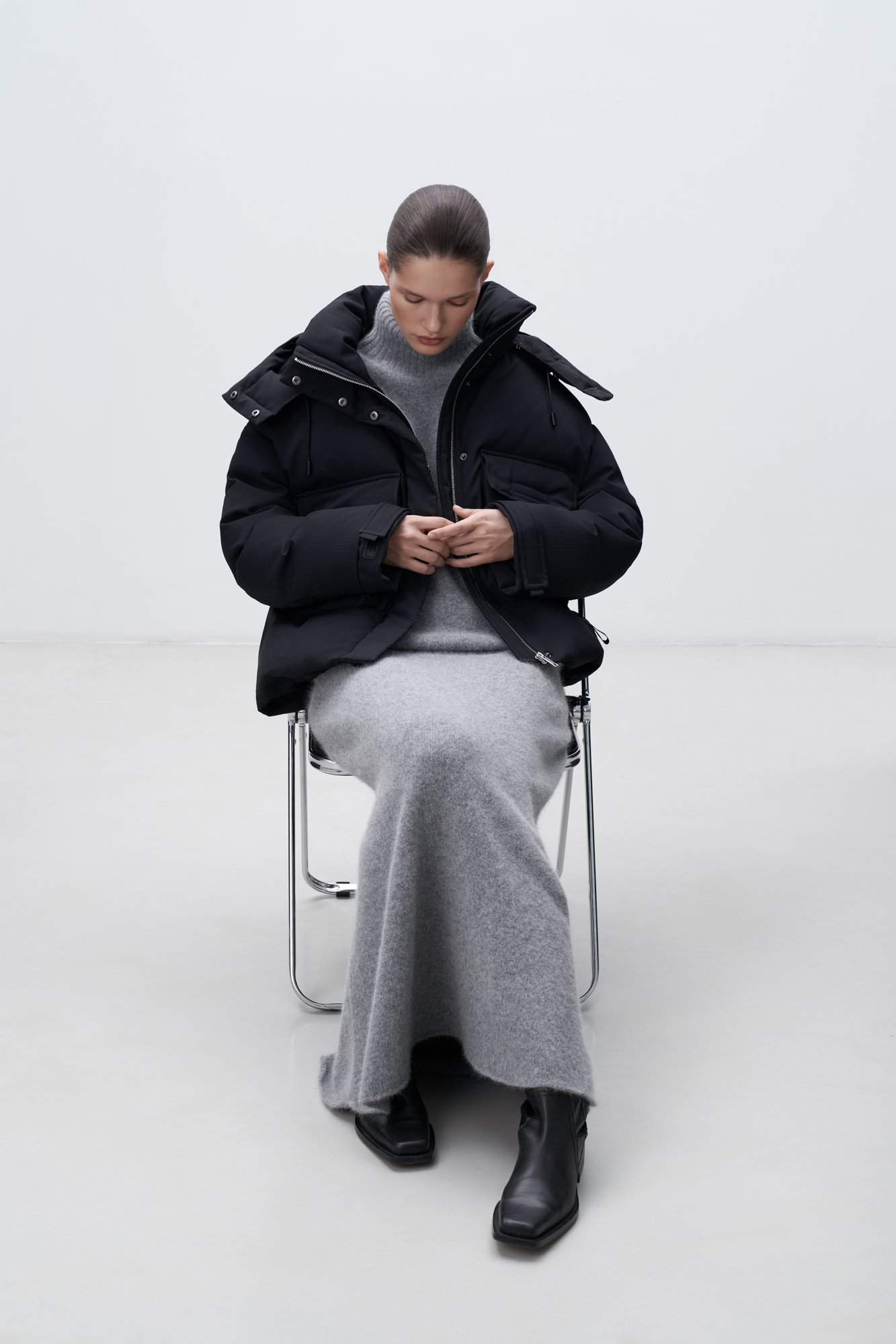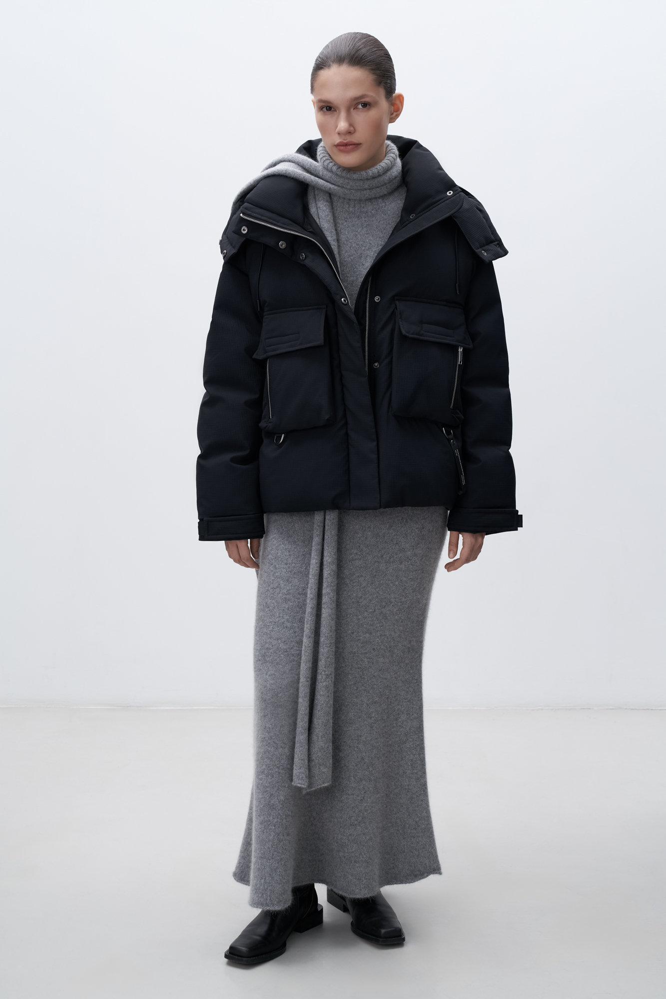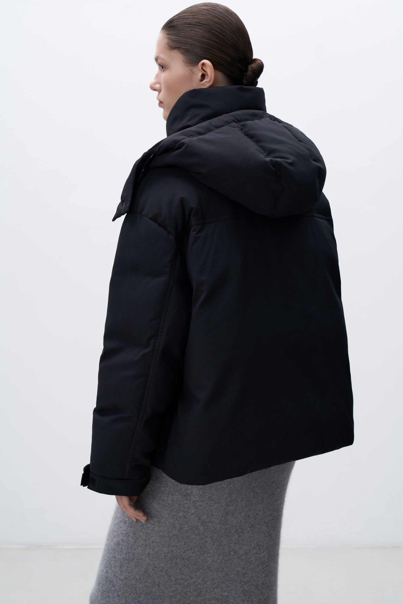 Пуховик с воротником-стойкой и капюшоном