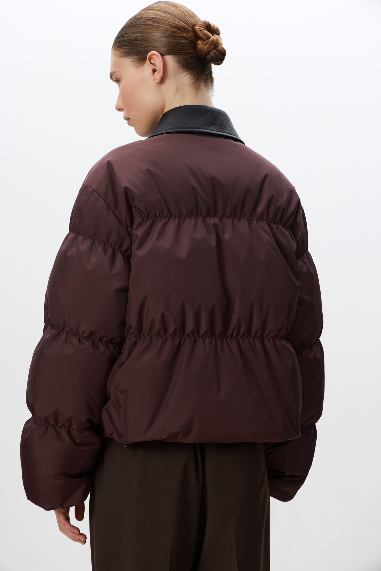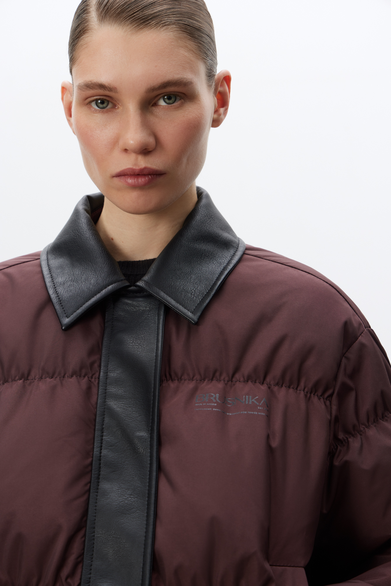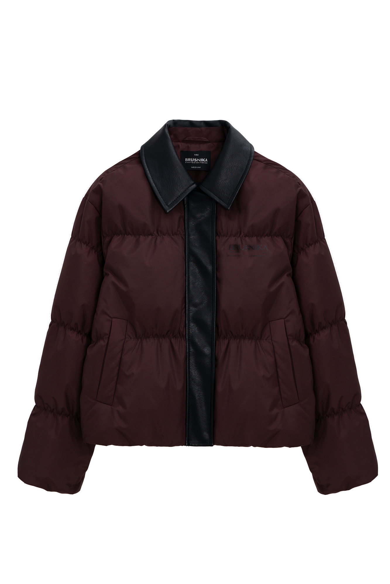 Пуховик с отложным воротником из экокожи