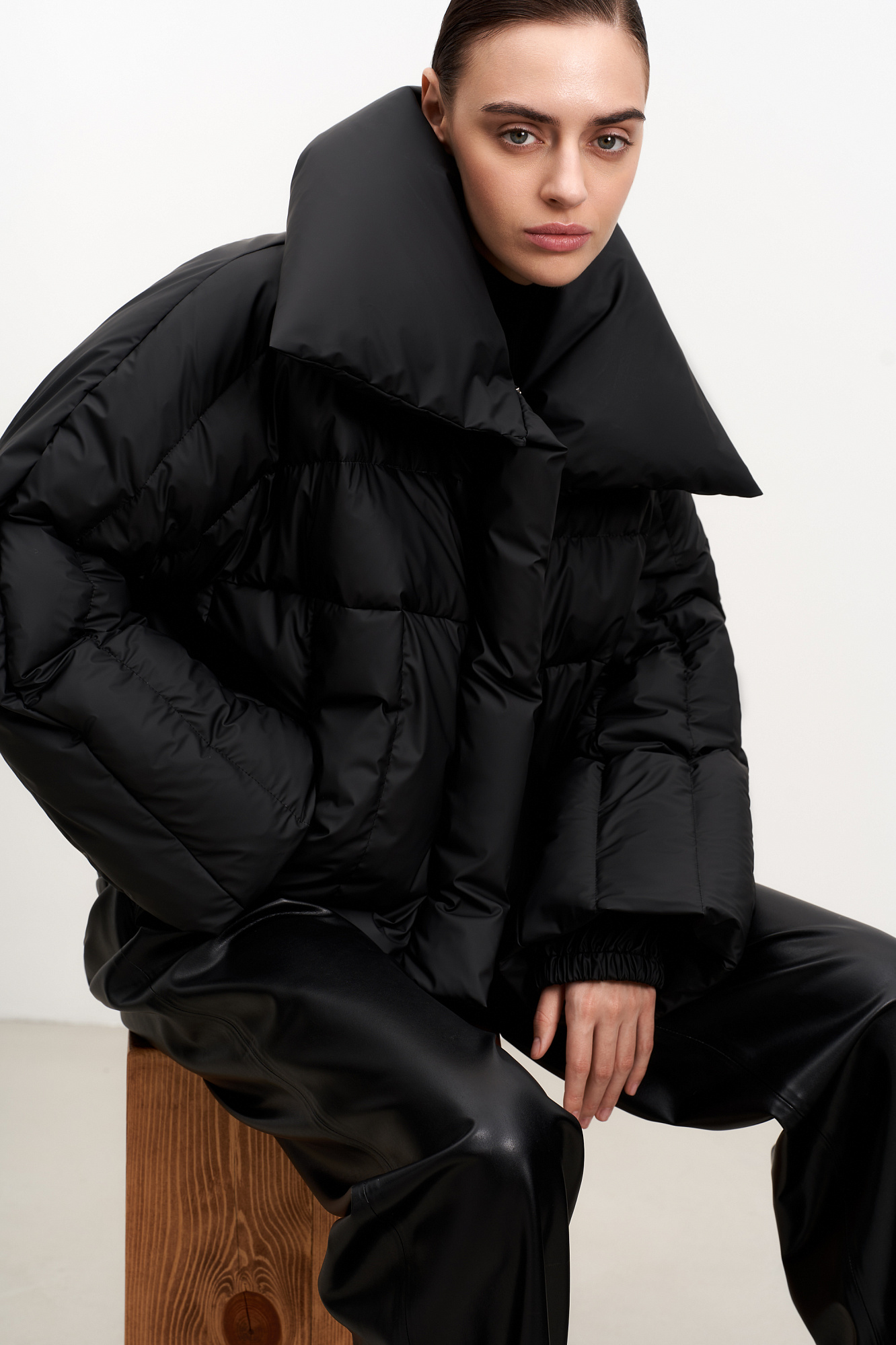 Короткий пуховик с воротником-стойкой