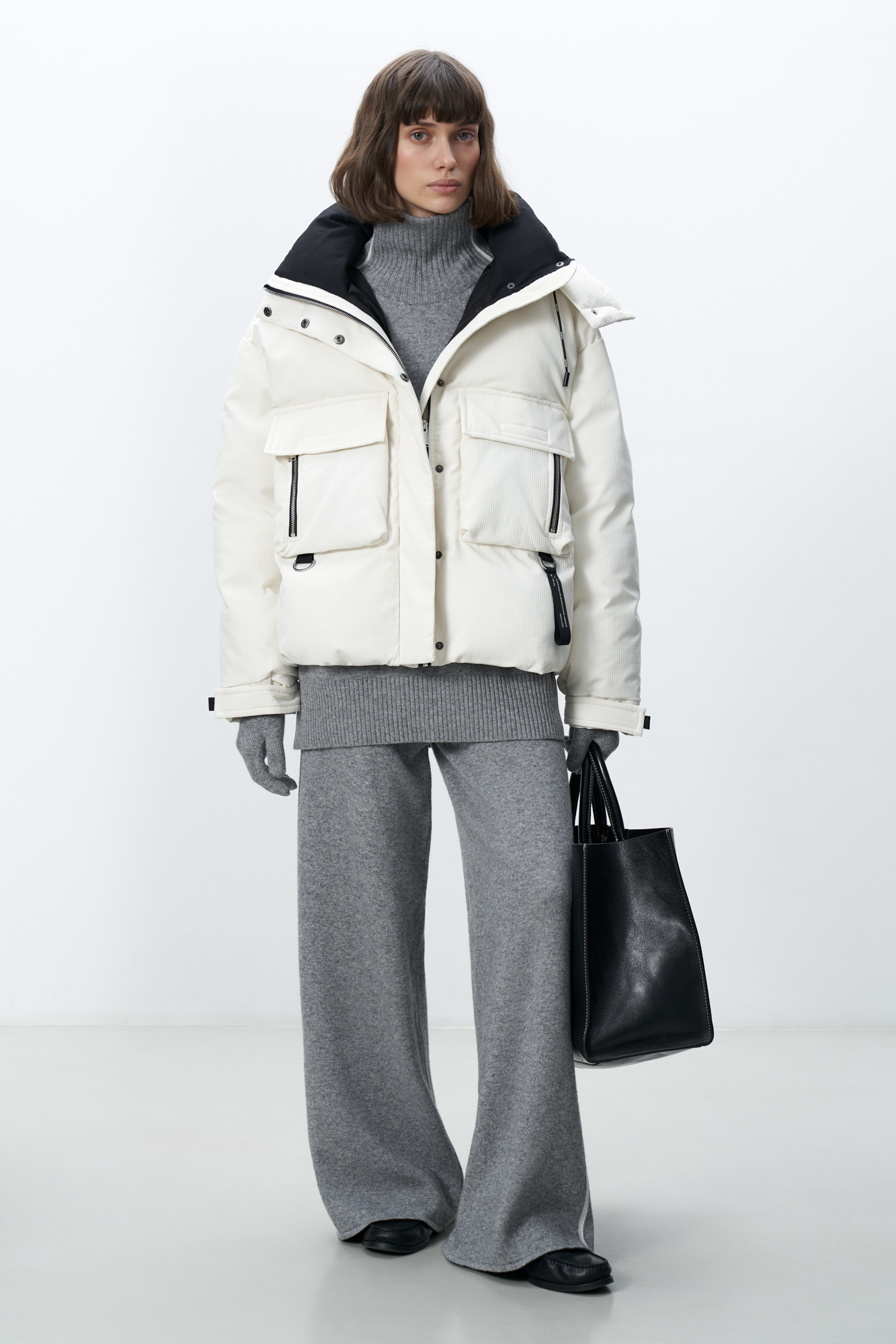 Пуховик с воротником-стойкой и капюшоном