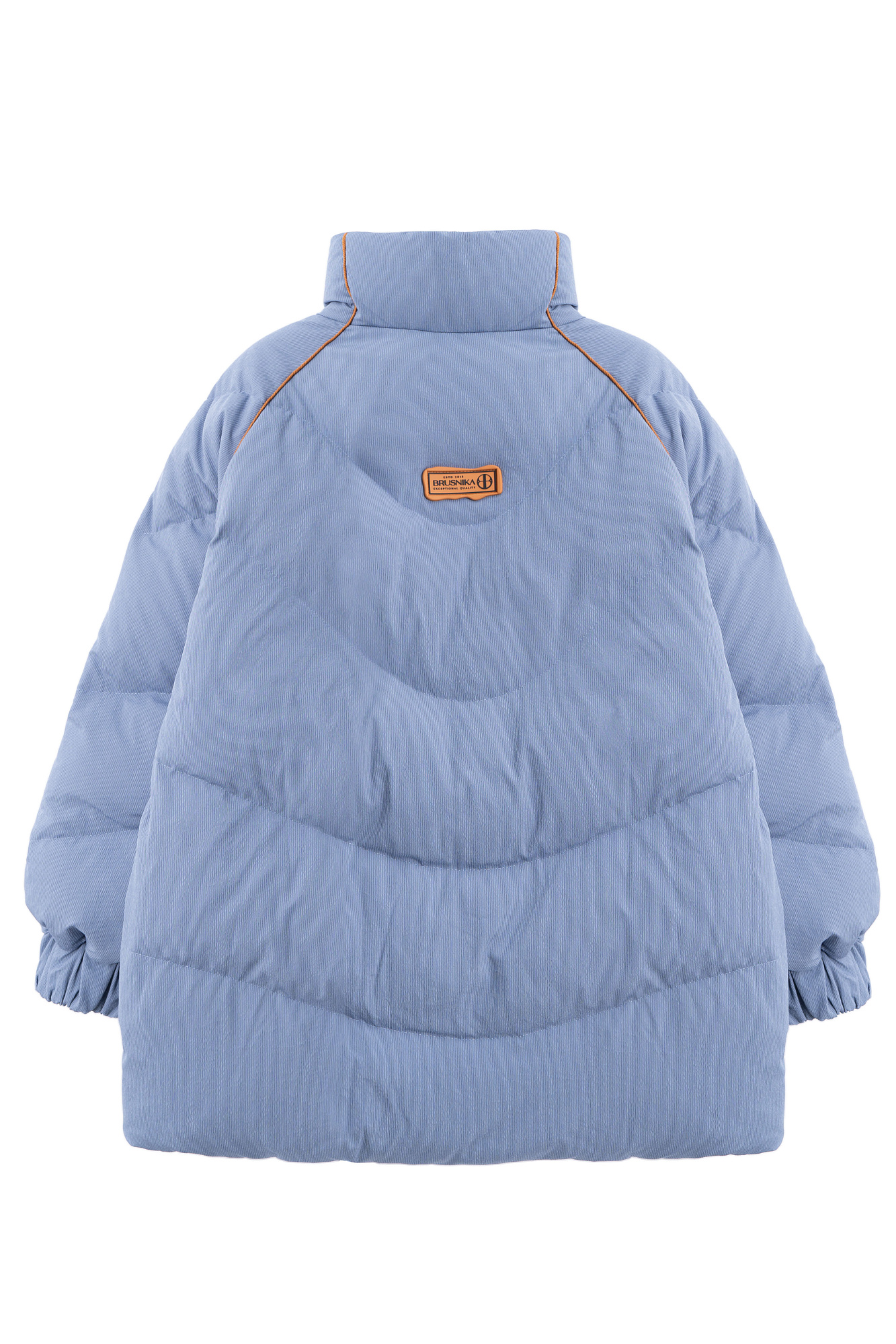 Удлиненный стеганый пуховик из текстурного нейлона. Модель с воротником-стойкой и прорезными карманами. Застежка на молнию. Брендированный ярлык на спине и рукаве изделия.
