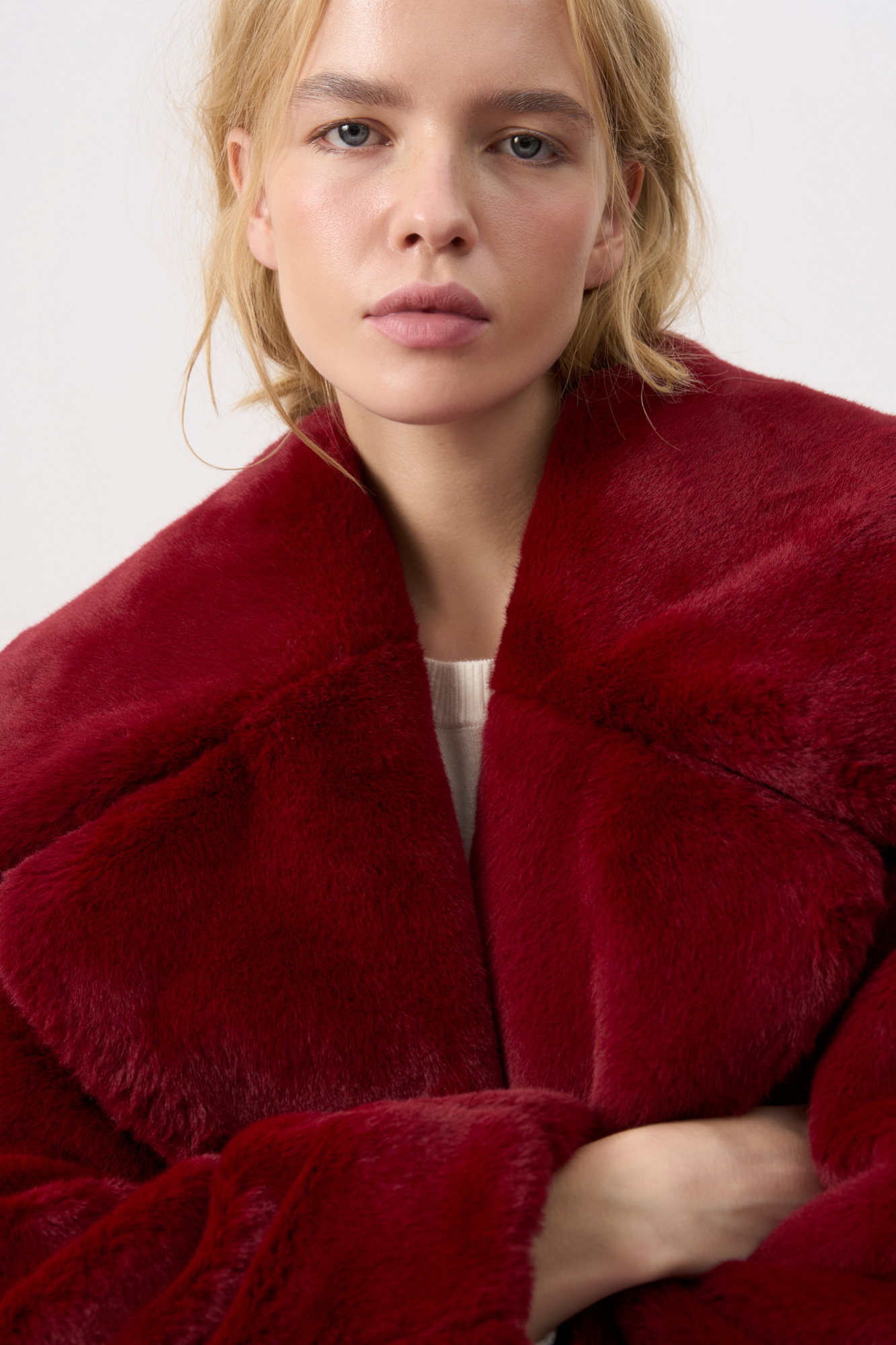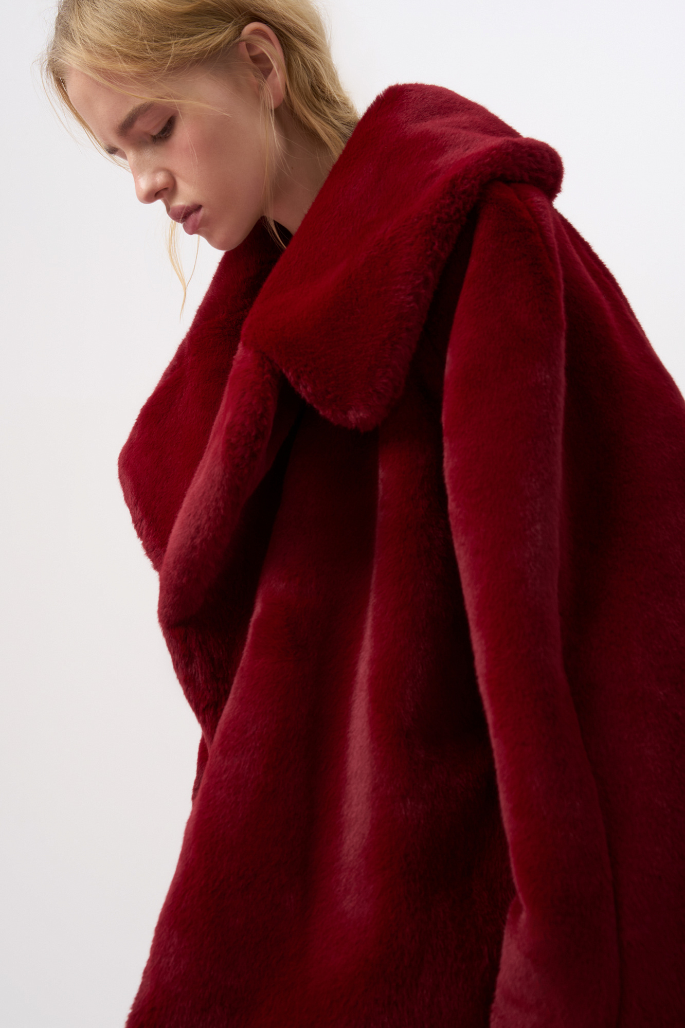 Шуба из экомеха. Модель с широким отложным воротником и врезными карманами. Изделие выполнено на подкладке.