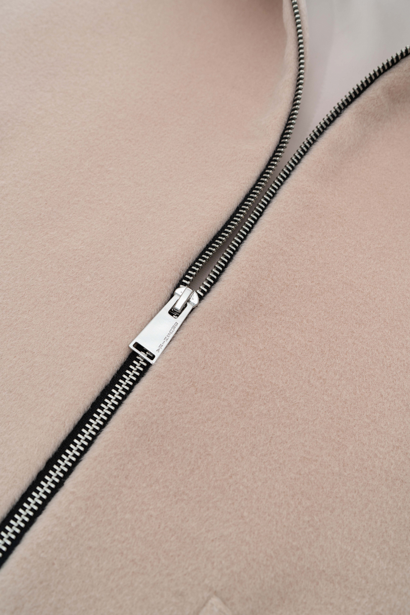 Куртка-жакет из шерсти. Модель со спущенной линией плеч, отложным воротником и накладными карманами. Застежка на молнию. Изделие выполнено на подкладке.