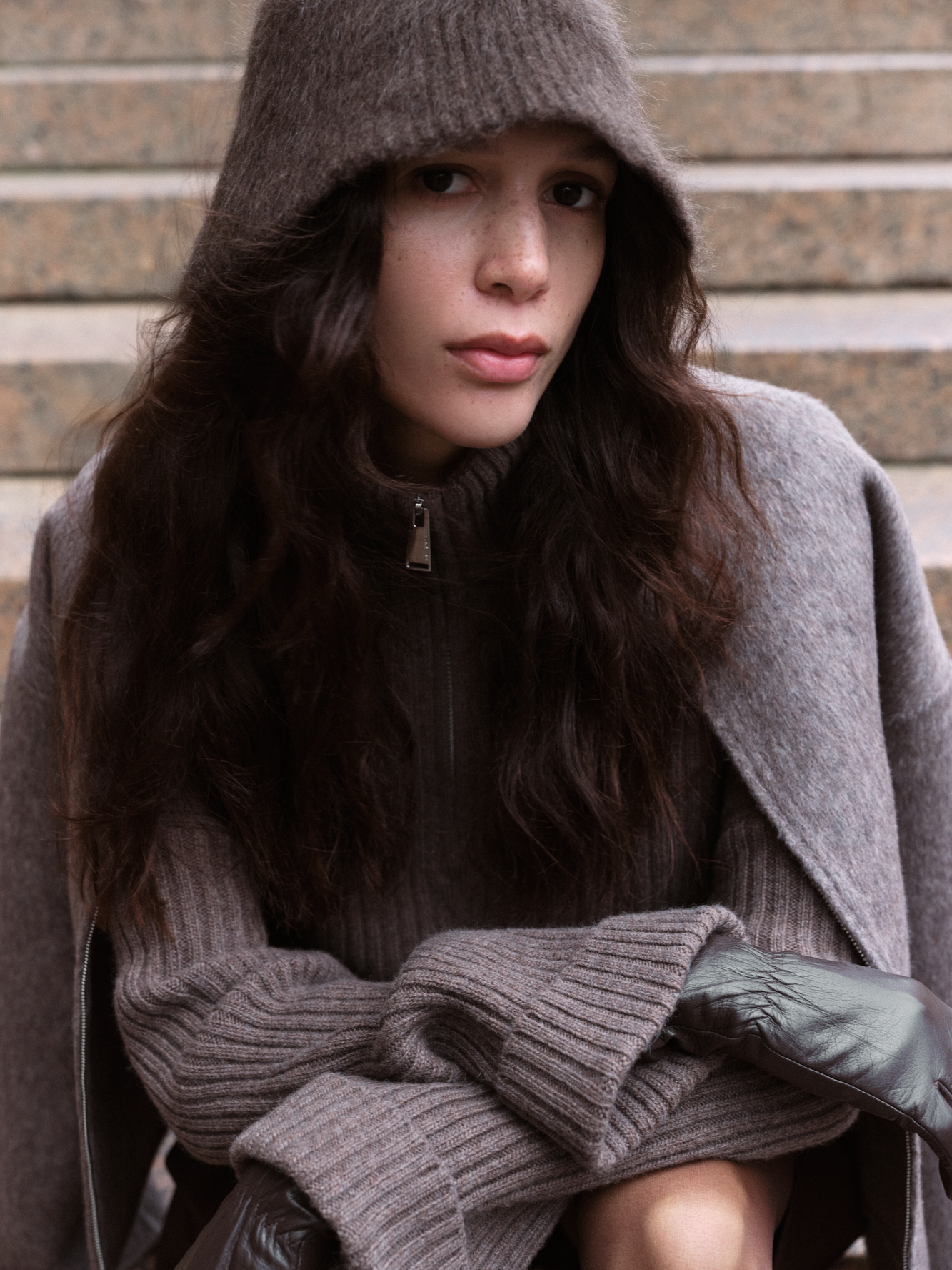 Укороченный жакет со спущенной линией плеча. Модель свободного силуэта с боковыми карманами и брендированным ярлыком.