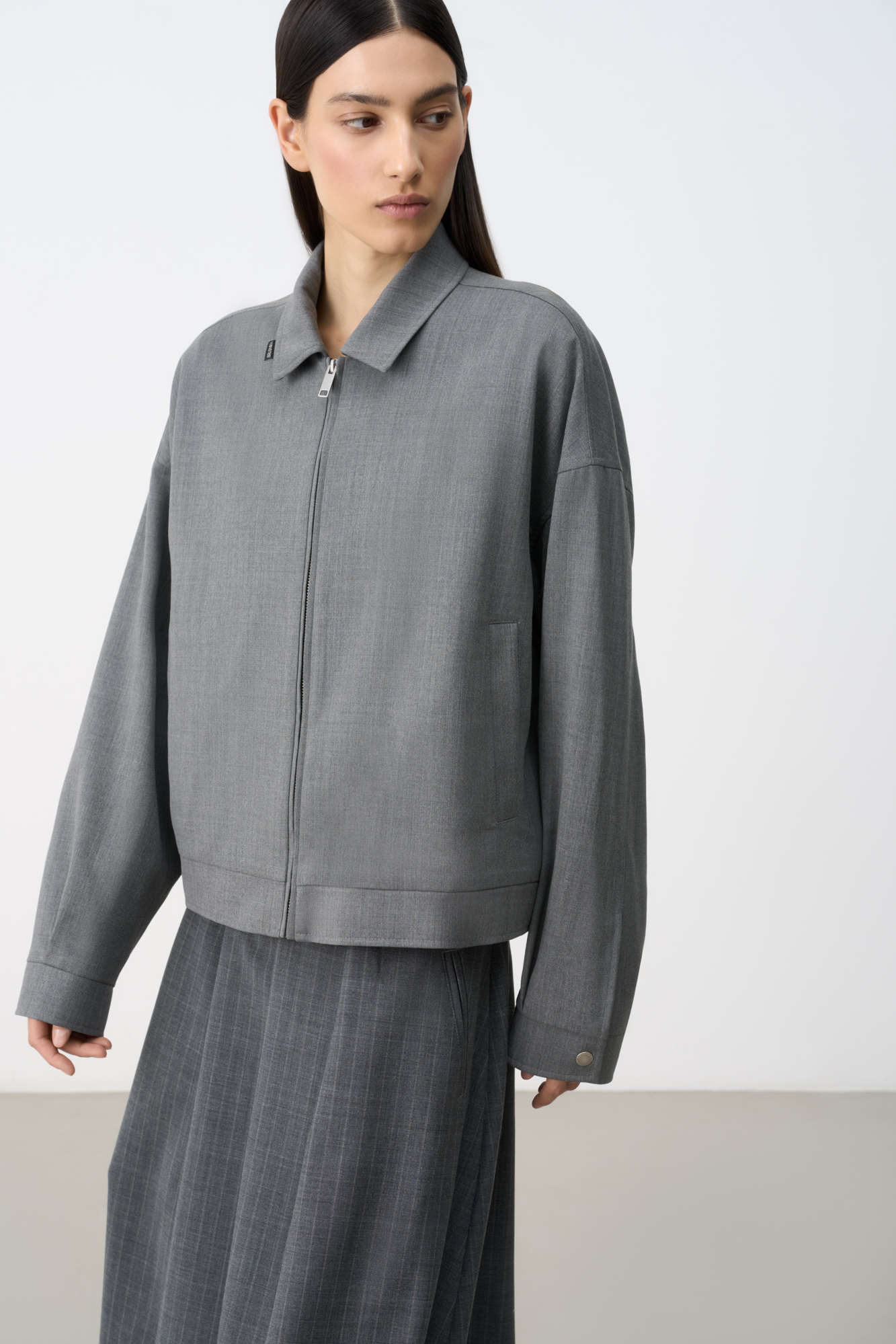 Куртка из вискозы с застежкой на молнию. Модель с отложным воротником. Манжеты рукавов на заклепках.
