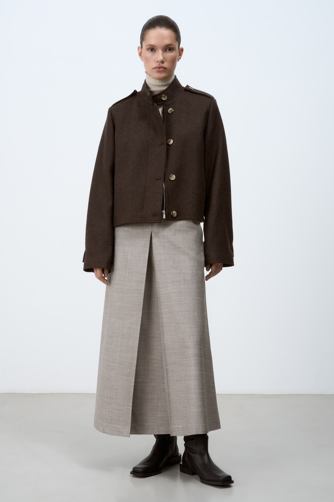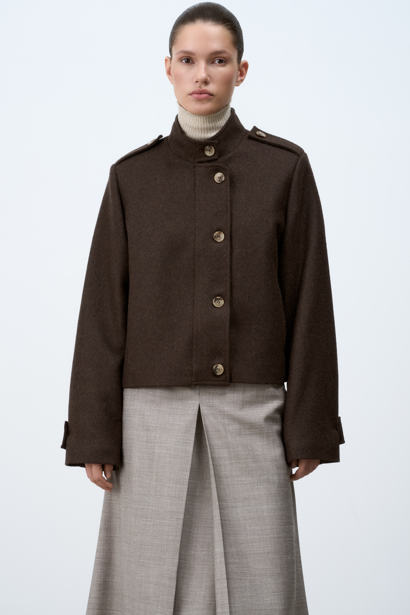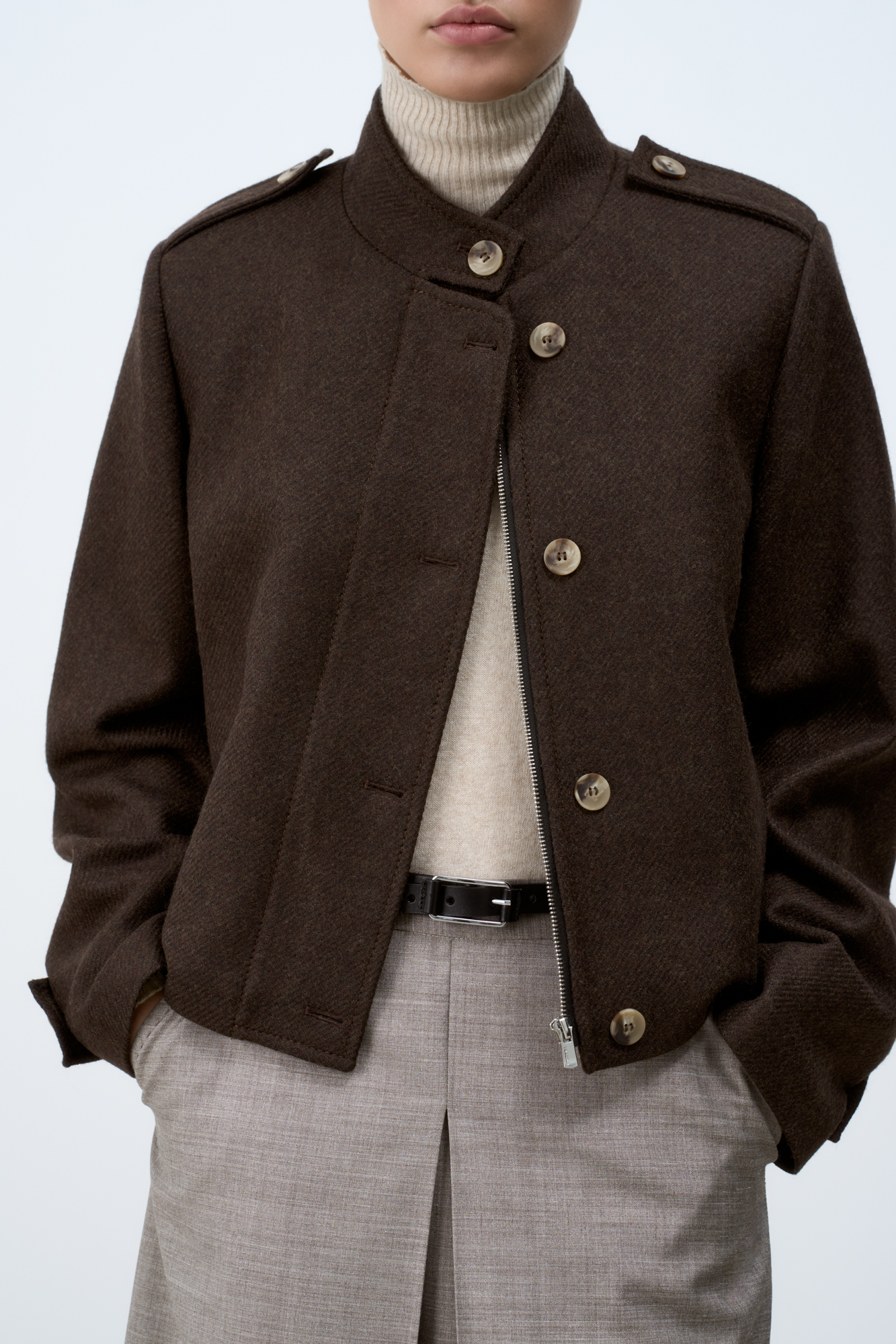 Шерстяной бомбер с воротником-стойкой