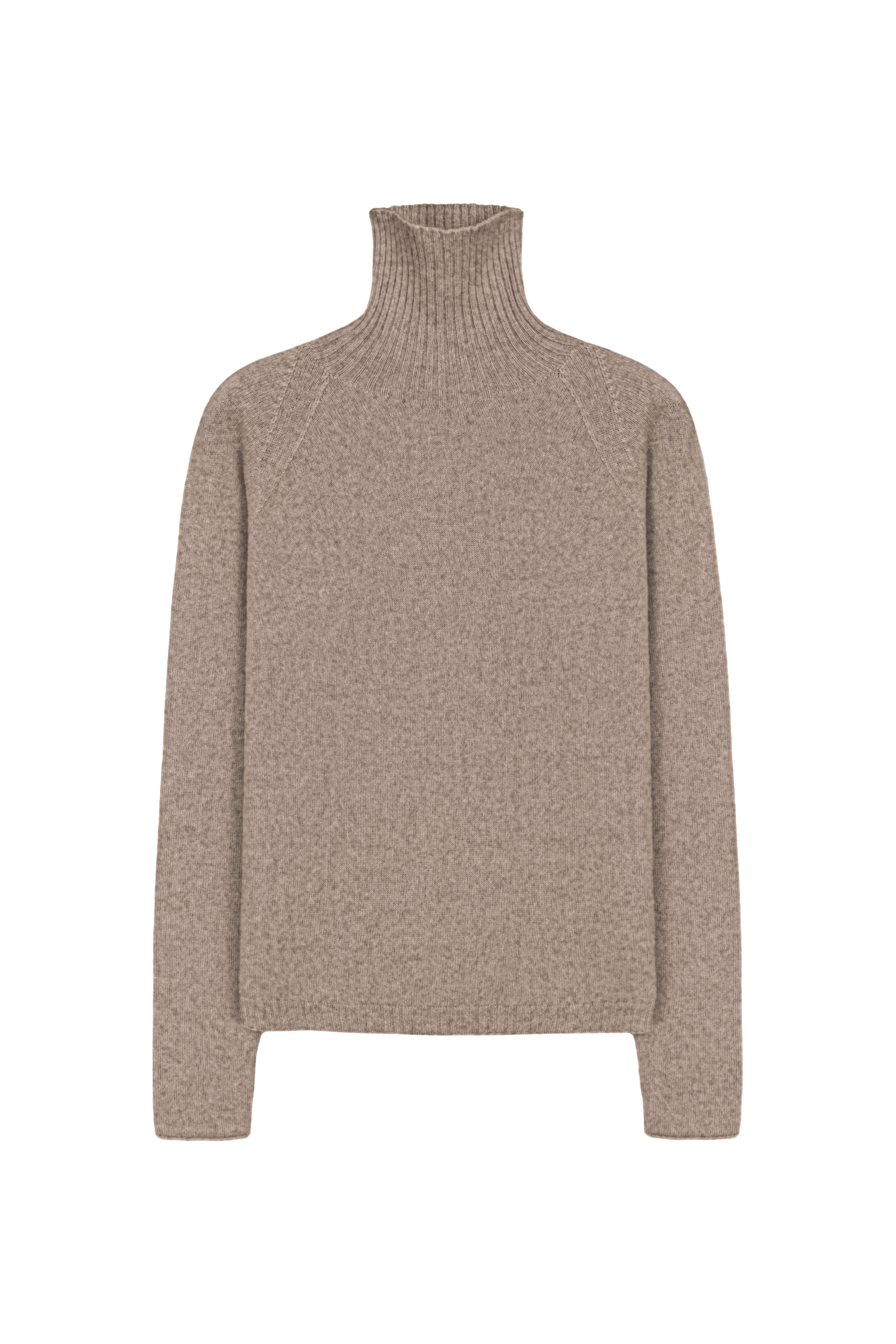 Джемпер из 100% кашемира. Модель с высоким воротником и рукавом реглан. Низ изделия и воротник выполены в рубчик.