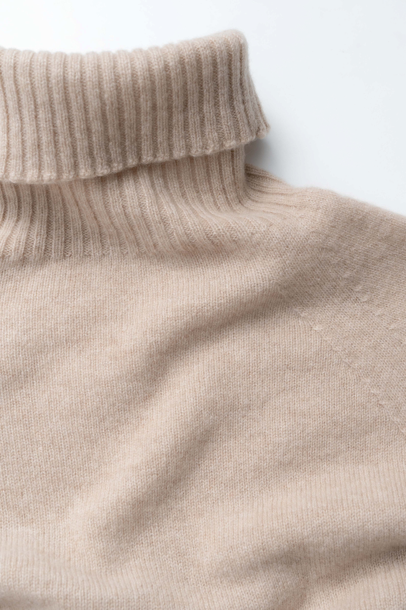 Джемпер из 100% кашемира. Модель с высоким воротником и рукавом реглан. Низ изделия и воротник выполены в рубчик.