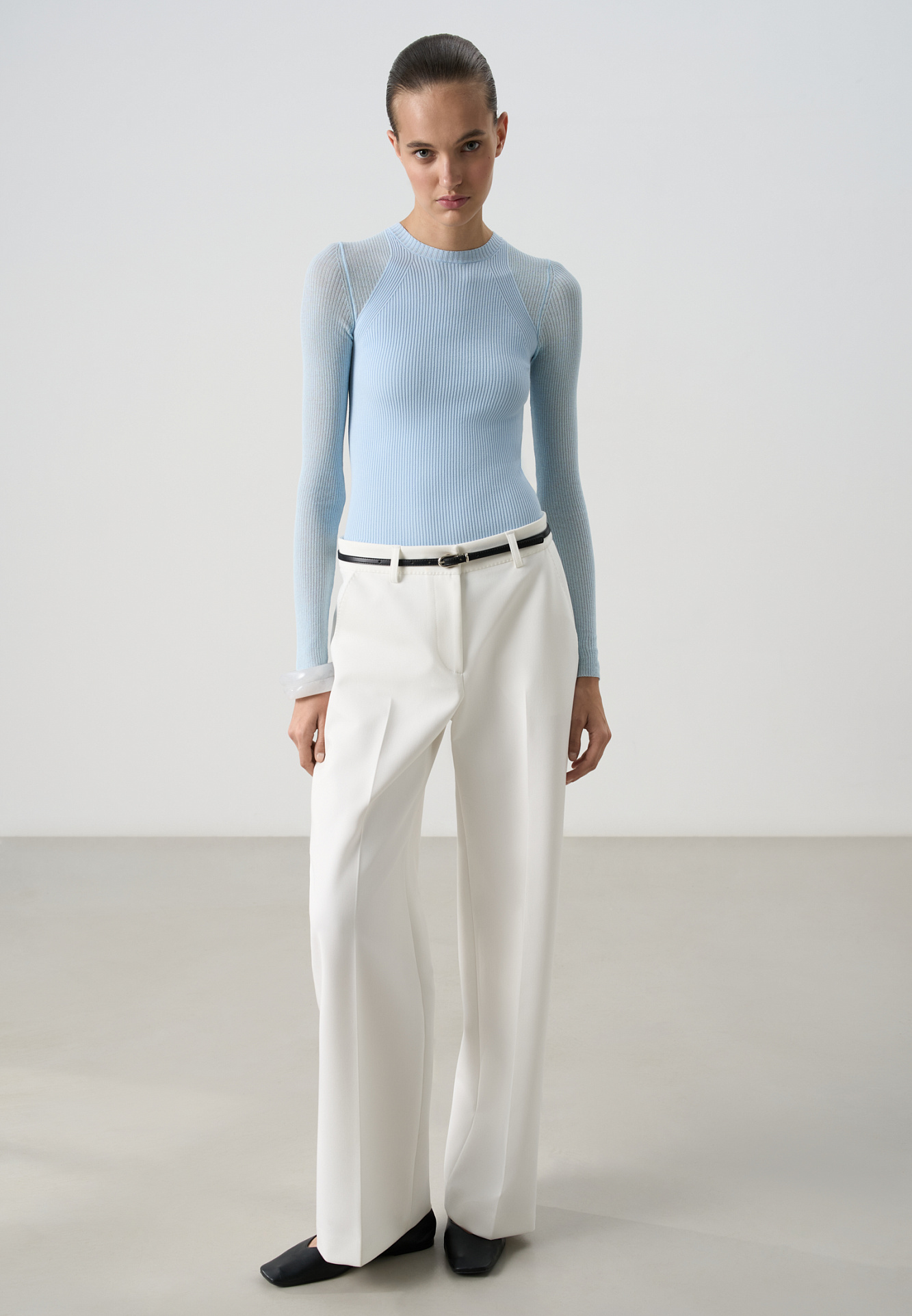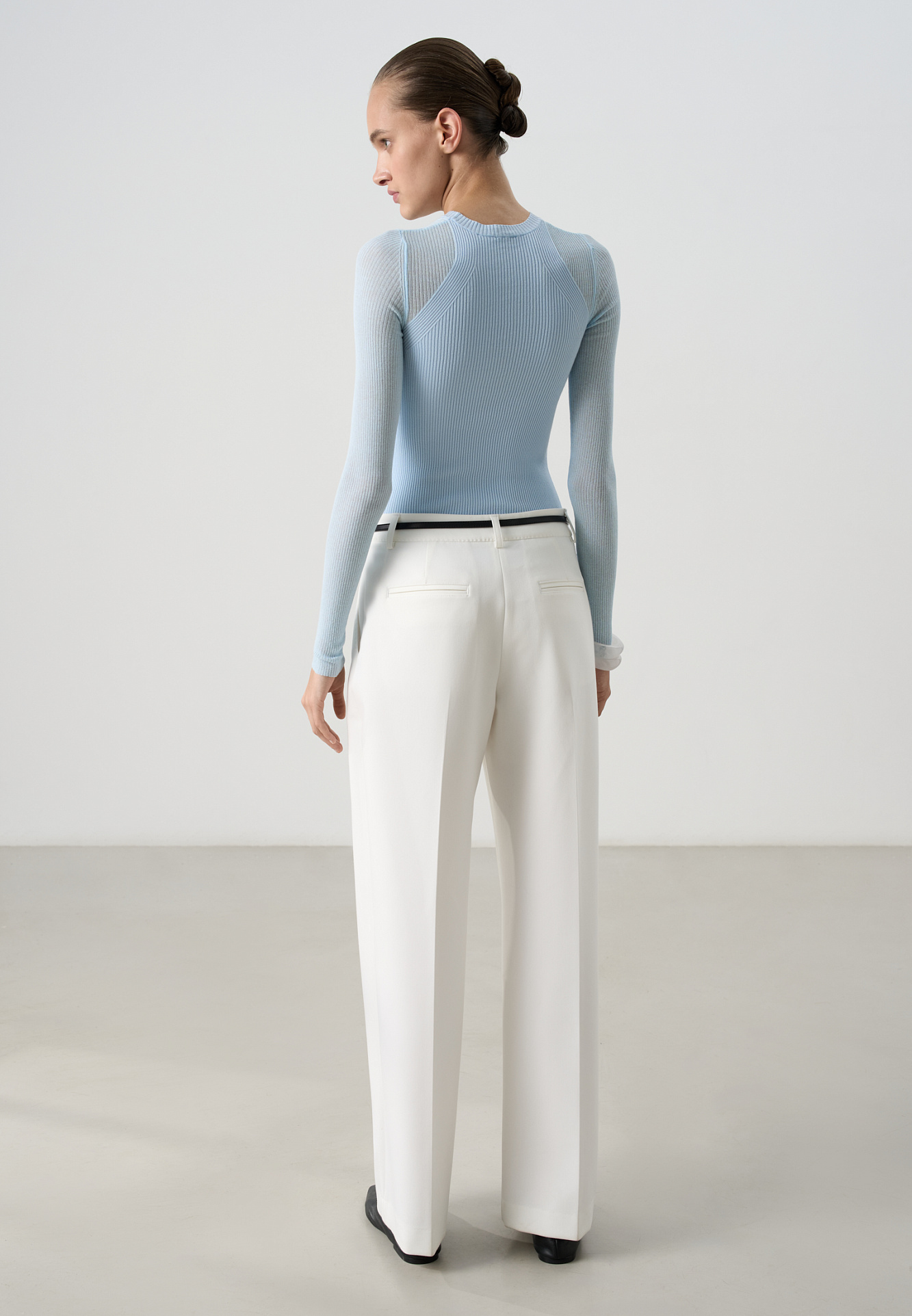Трикотажная водолазка из вискозы. Модель облегающего силуэта с полупрозрачными длинными рукавами.