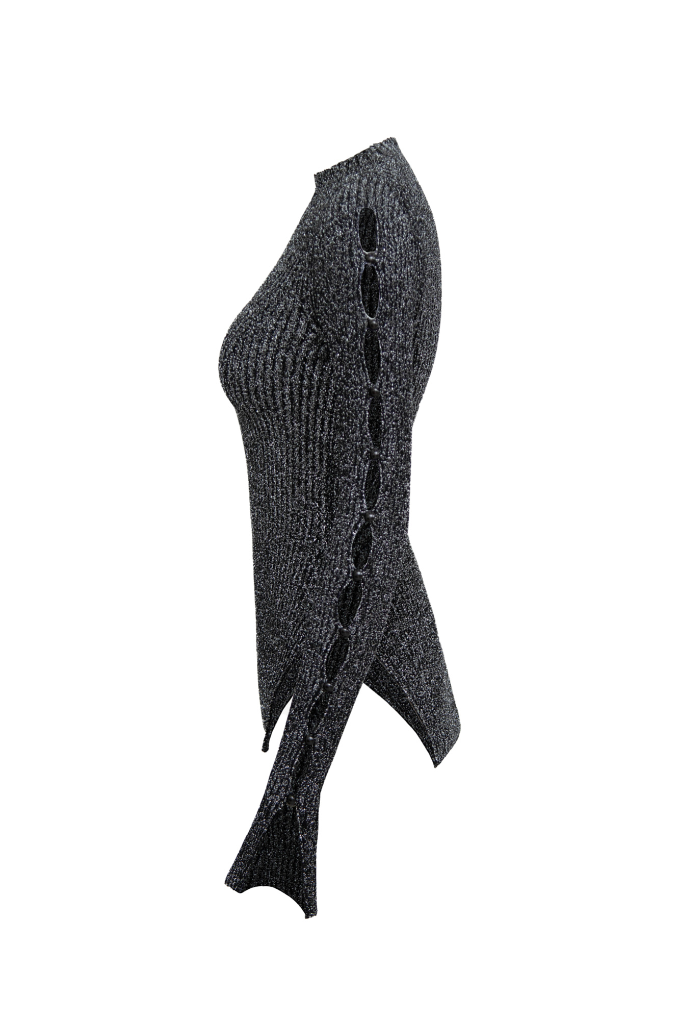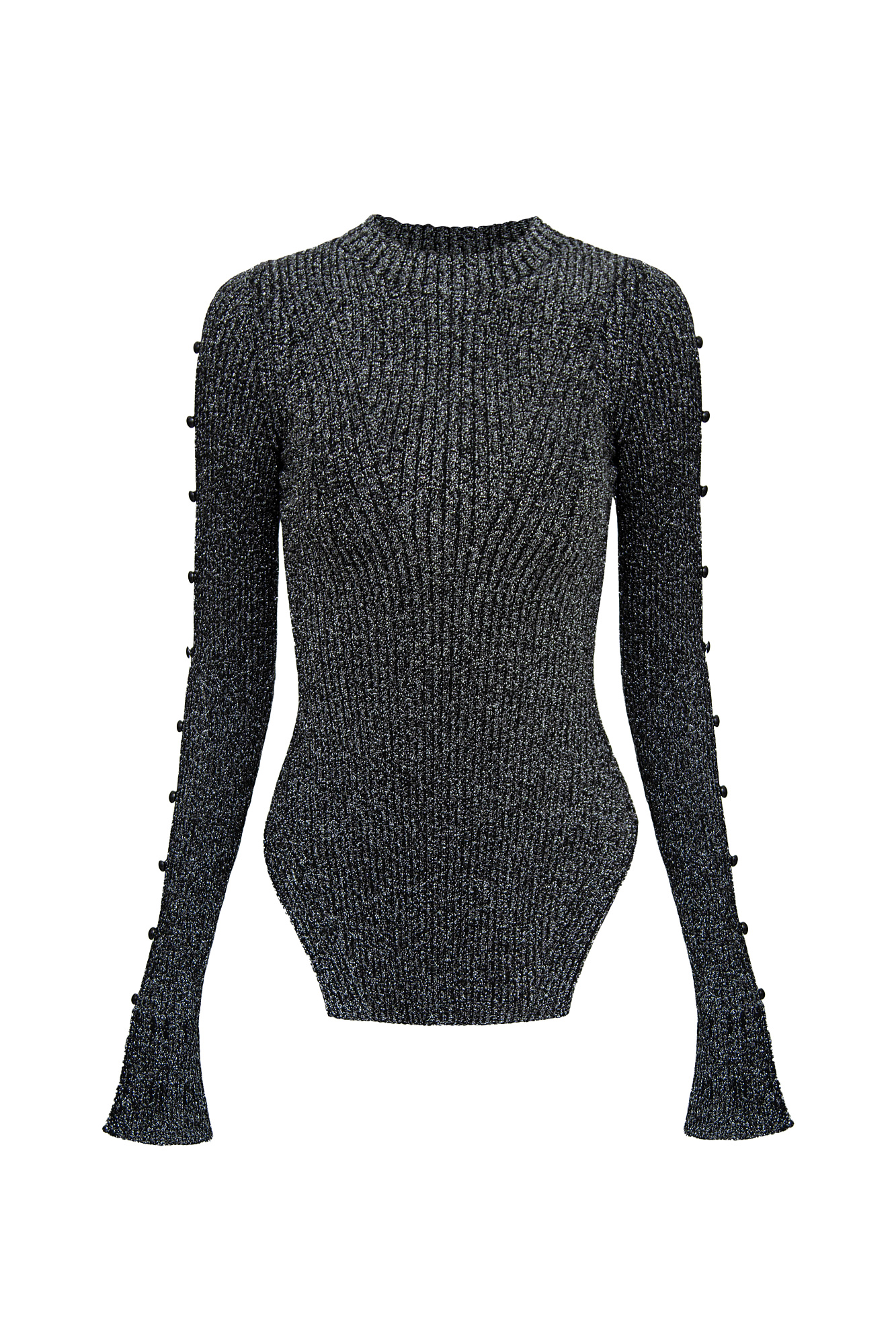 Удлиненная водолазка из вискозы с люрексом и рукавами на пуговицах