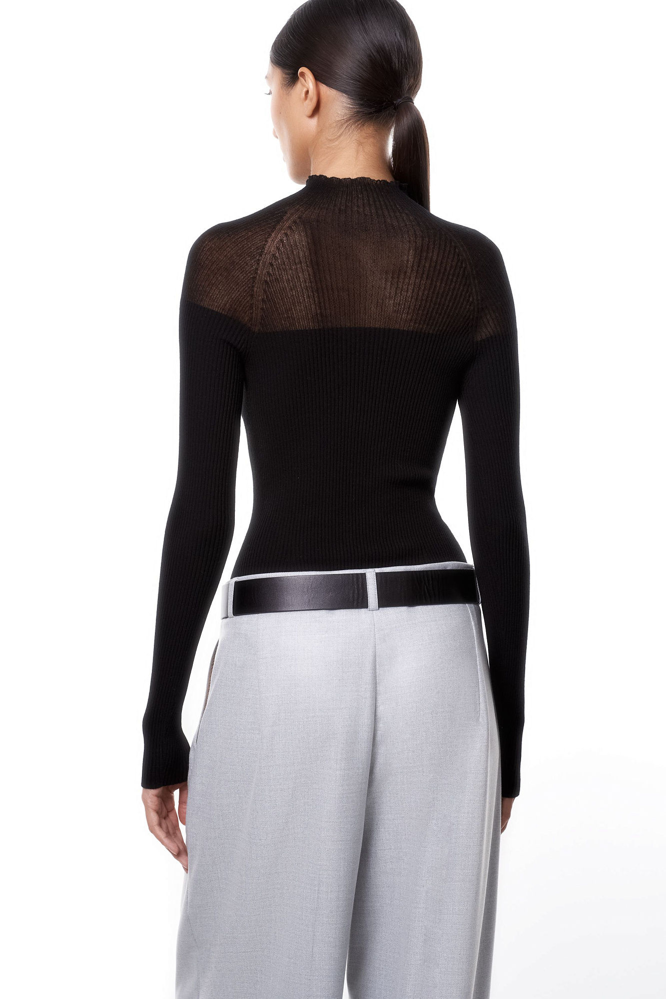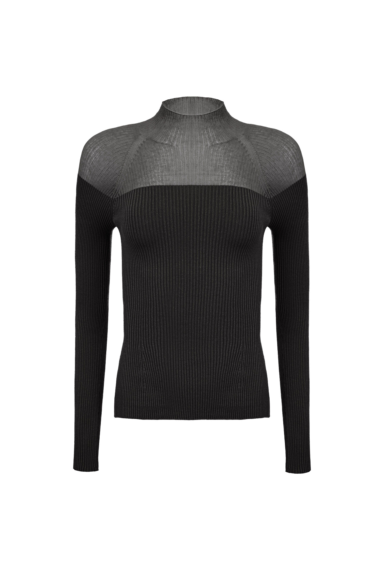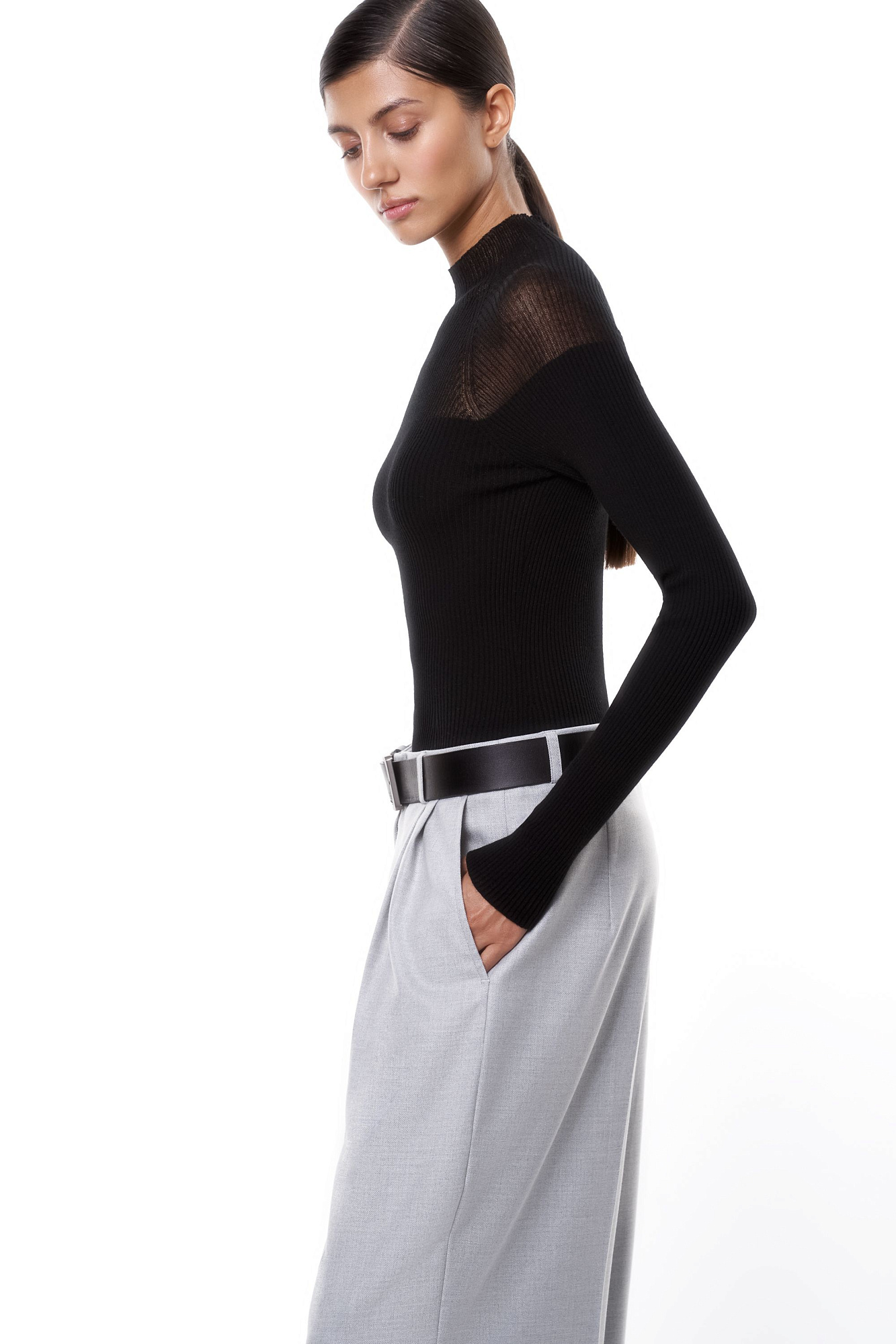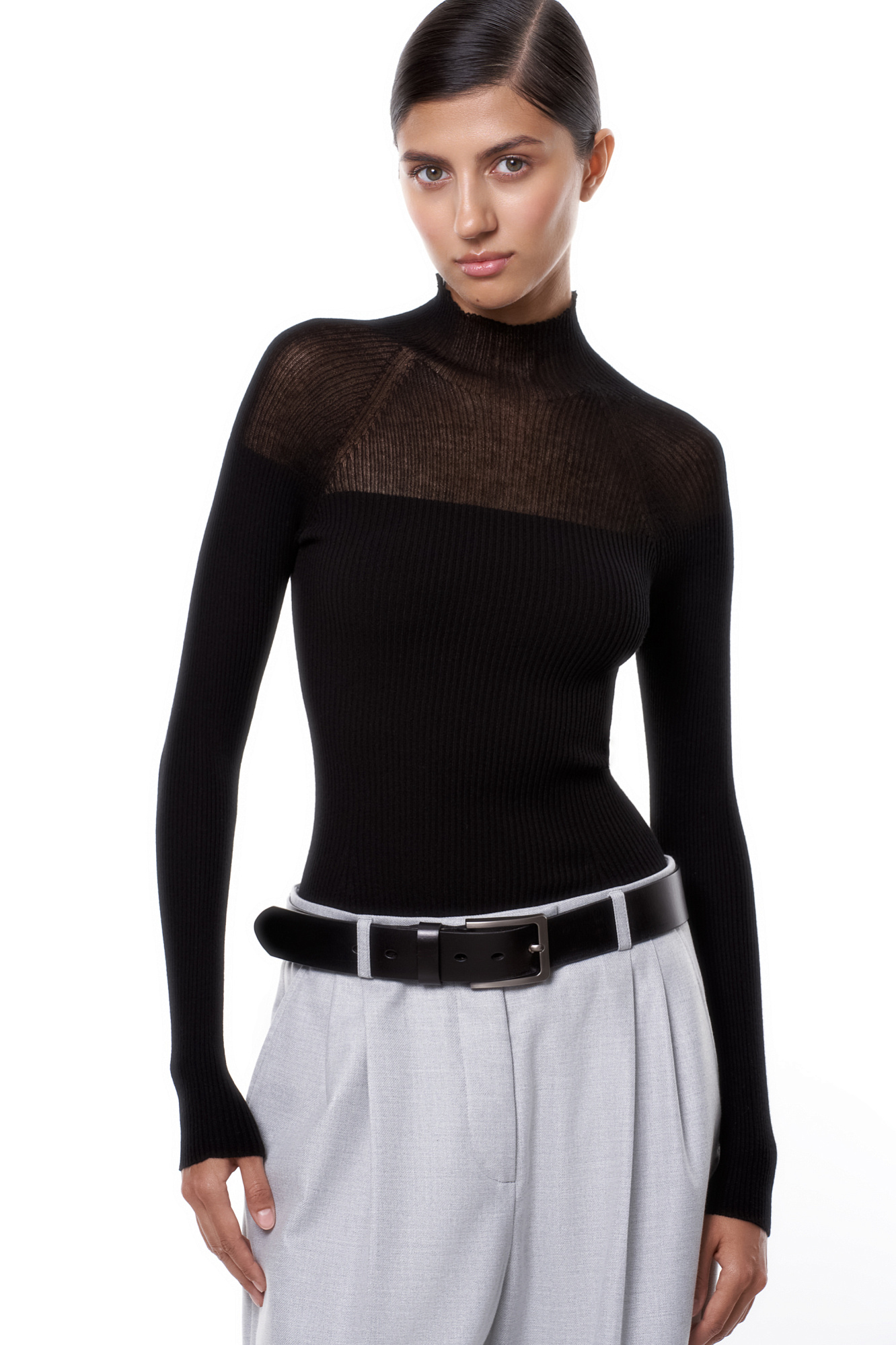 Цельновязаная водолазка из вискозы. Модель приталенного силуэта с длинным рукавом и невысоким воротником.
