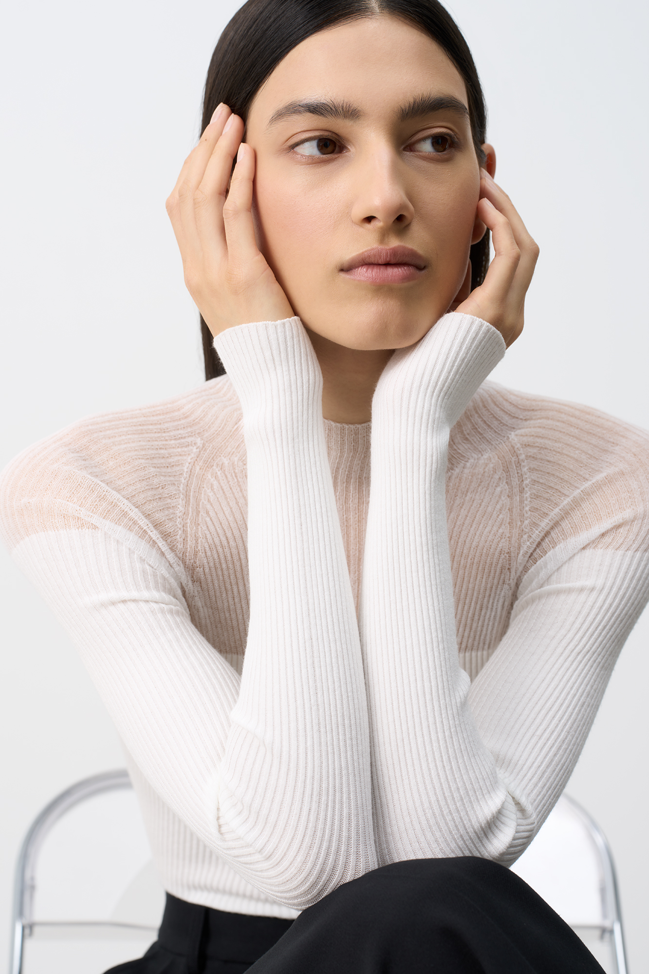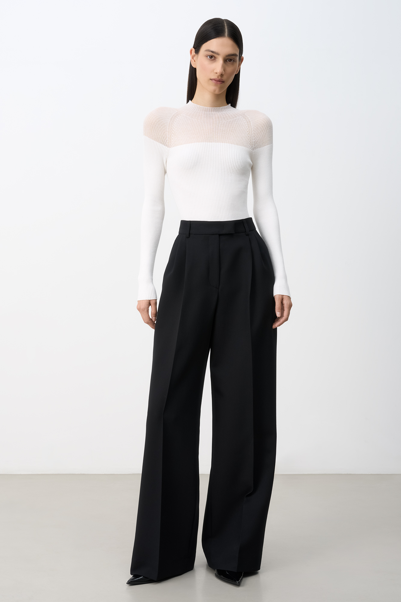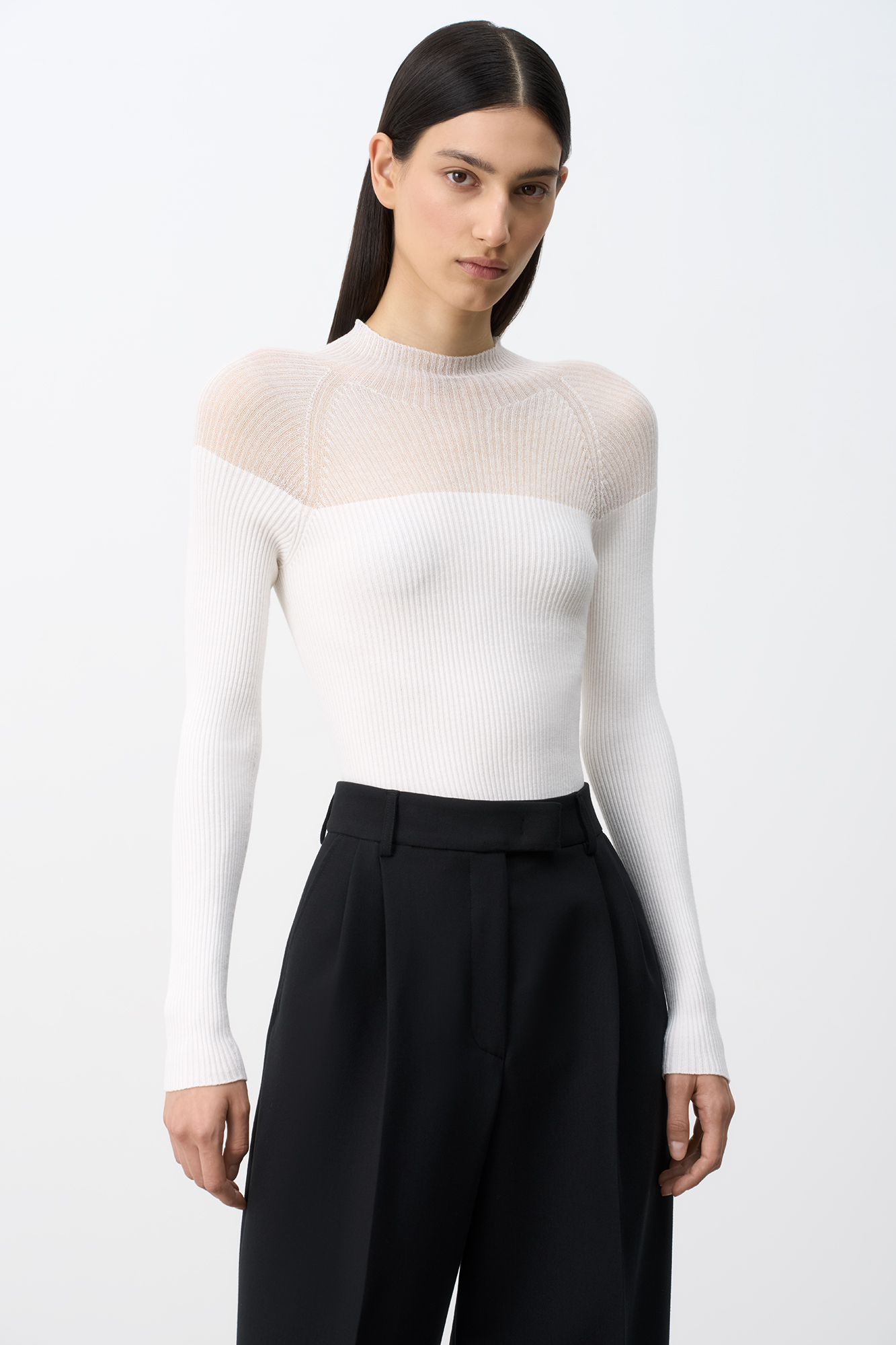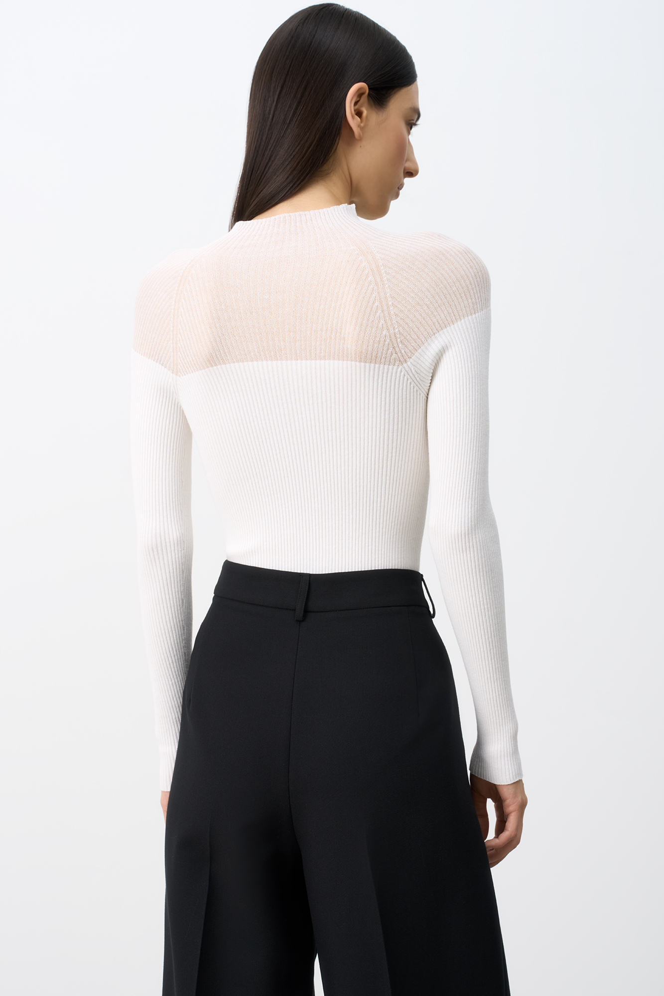 Цельновязаная водолазка из вискозы. Модель приталенного силуэта с длинным рукавом и невысоким воротником.