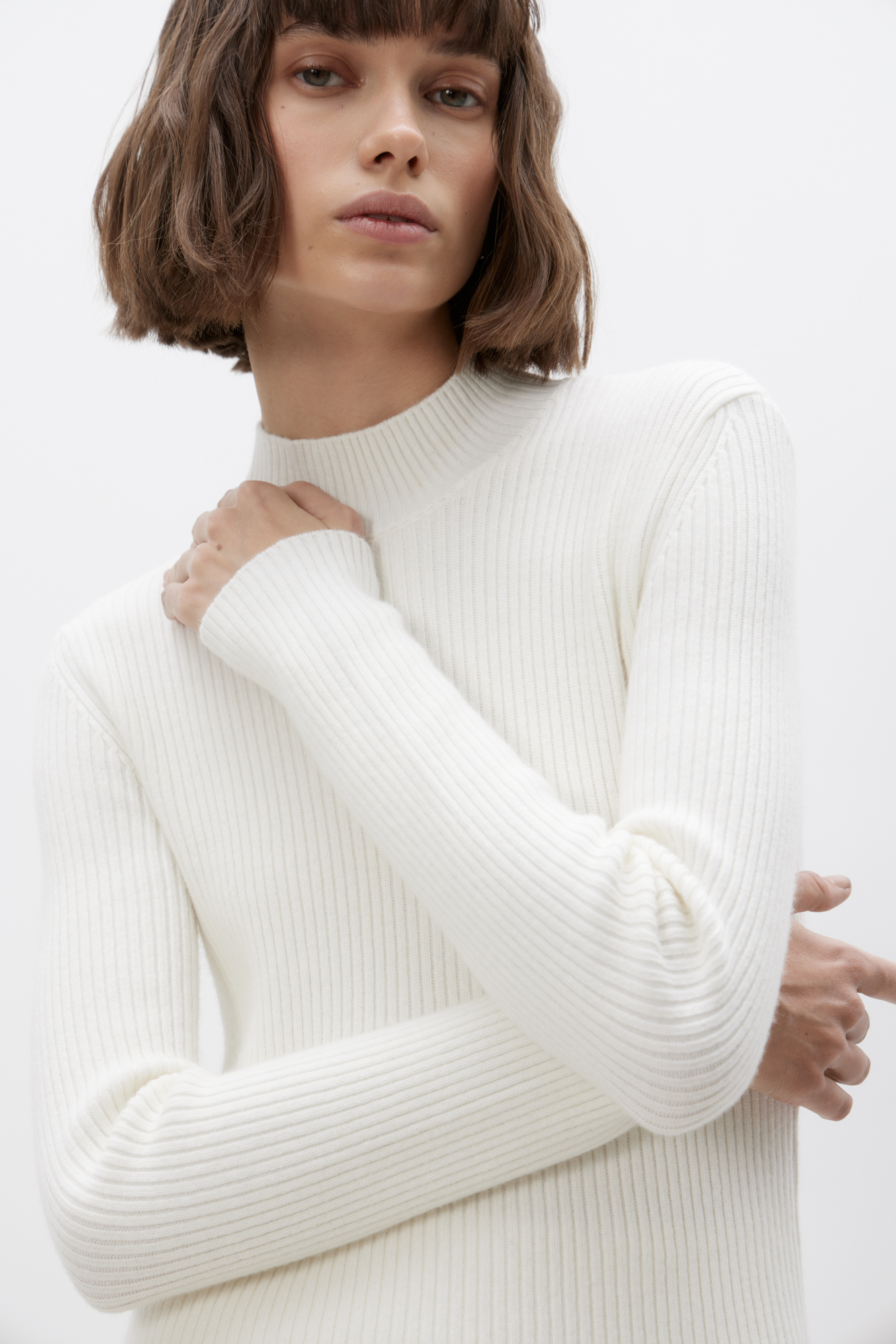 Трикотажная водолазка из шерсти с добавлением кашемира. Модель приталенного силуэта с воротником-стойкой.