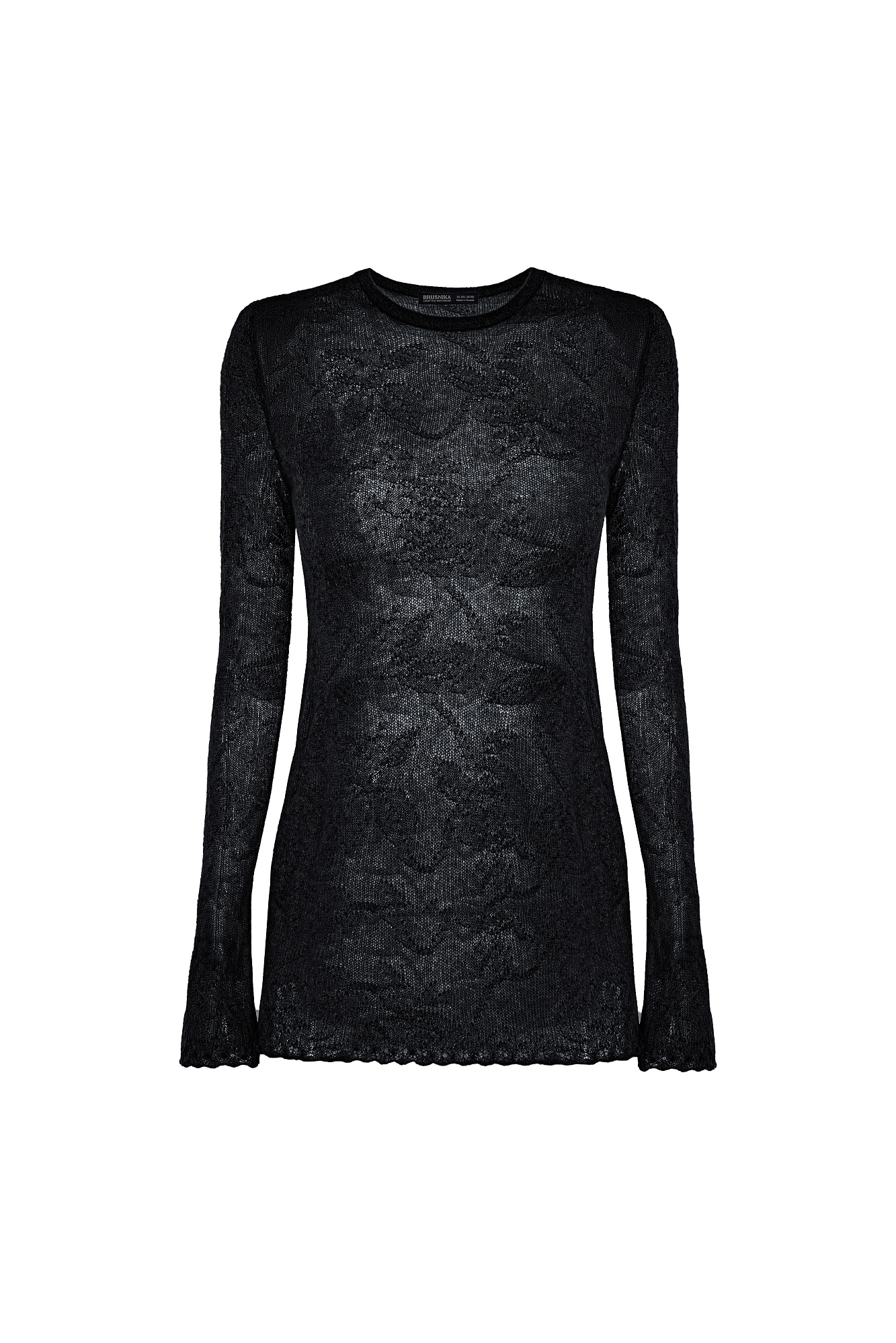 Ажурная водолазка из мягкой пряжи из беби альпака и супер кид мохера с вывязанным цветочным узором. Модель приталенного силуэта с длинными рукавами и круглым вырезом горловины. Манжеты рукавов и низ изделия декорированы ажурной каймой.