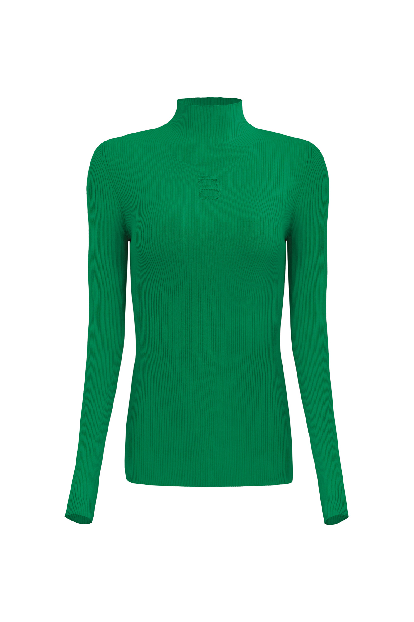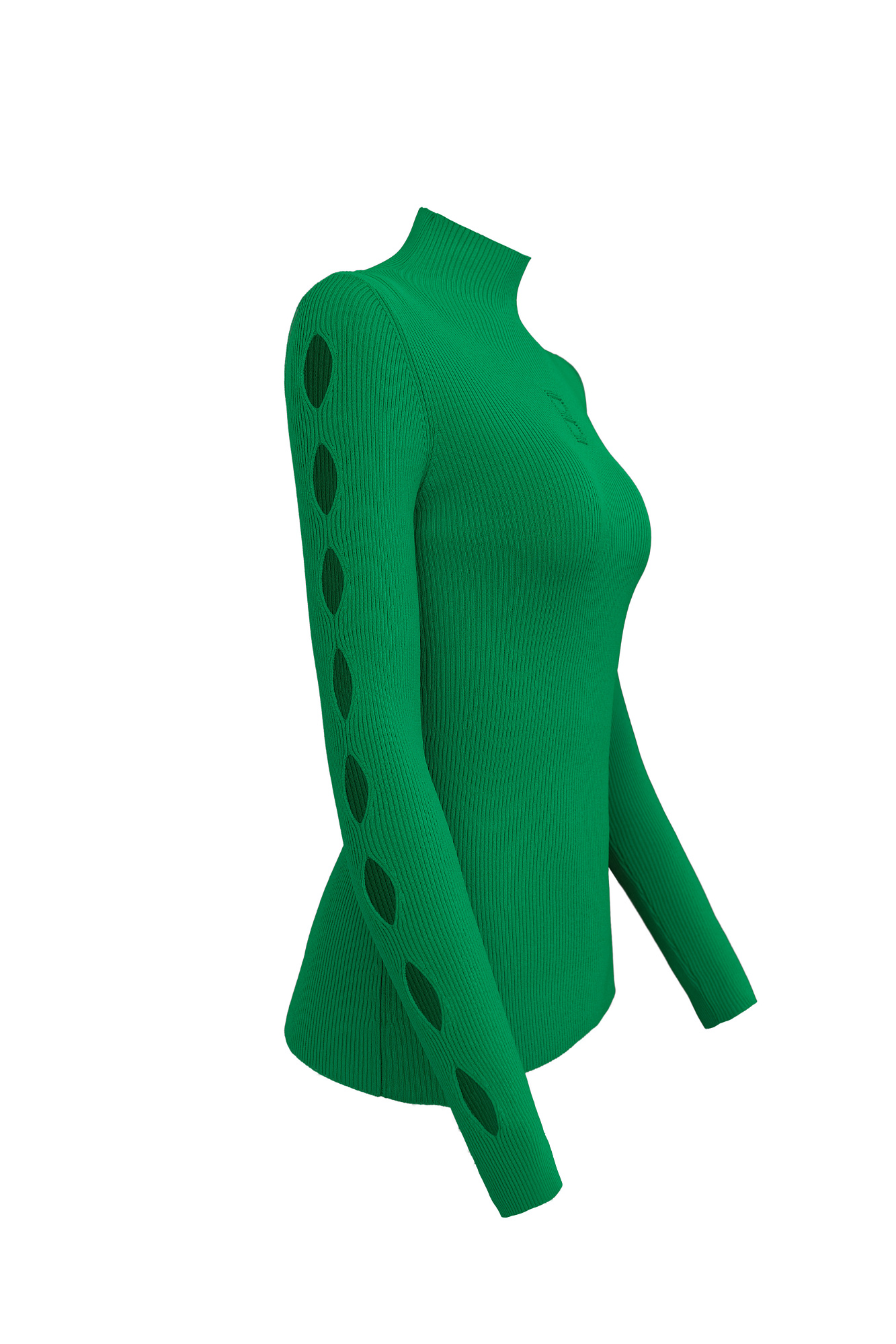 Трикотажная водолазка из вискозы. Модель приталенного силуэта, с воротником-стойкой и длинными рукавами реглан. Изделие декорировано вывязанным логотипом на груди и разрезами на внешней стороне рукавов.