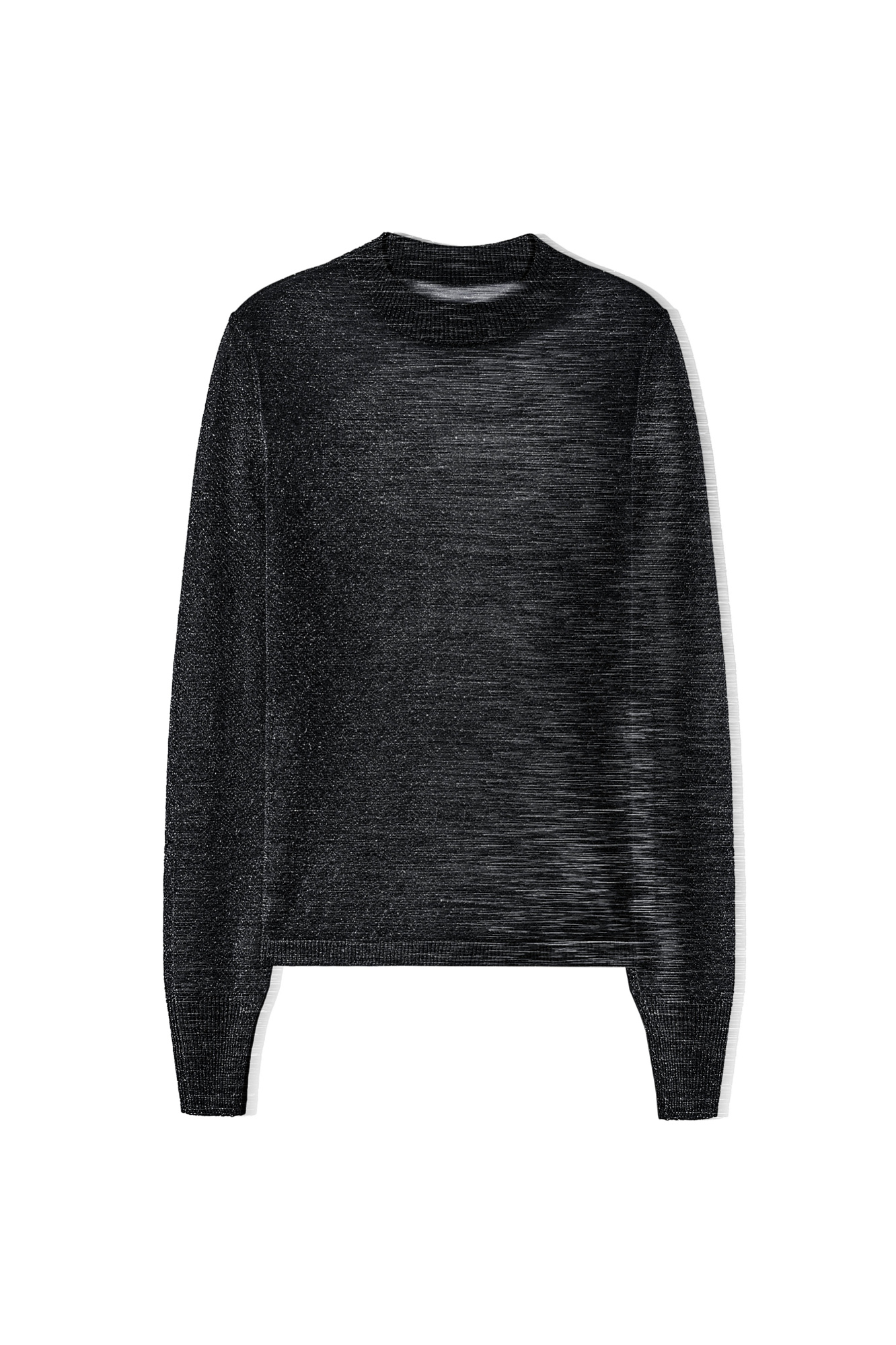 Трикотажная тонкая водолазка из вискозы с добавлением люрекса. Модель с длинным рукавом и воротником-стойкой. Воротник, манжеты рукавов и низ изделия выполнены в рубчик.