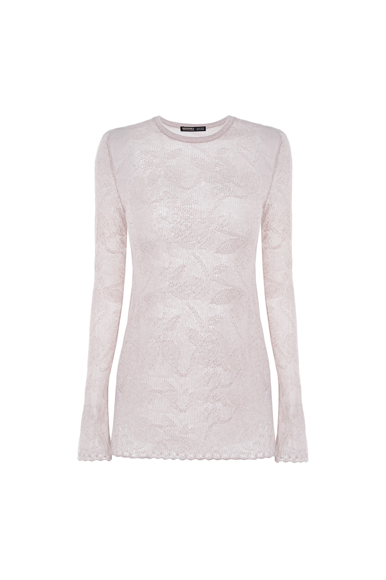 Ажурная водолазка из мягкой пряжи из беби альпака и супер кид мохера с вывязанным цветочным узором. Модель приталенного силуэта с длинными рукавами и круглым вырезом горловины. Манжеты рукавов и низ изделия декорированы ажурной каймой.