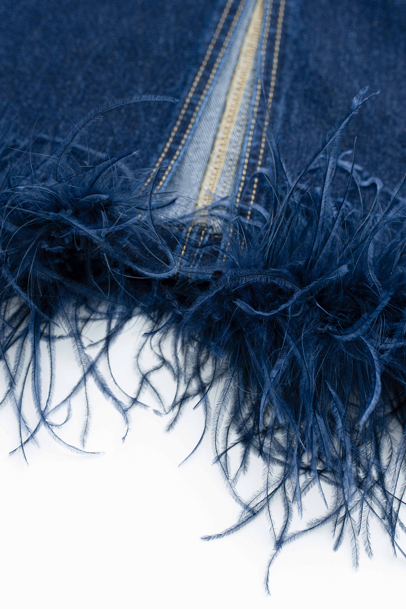 Джинсовый корсет с перьями