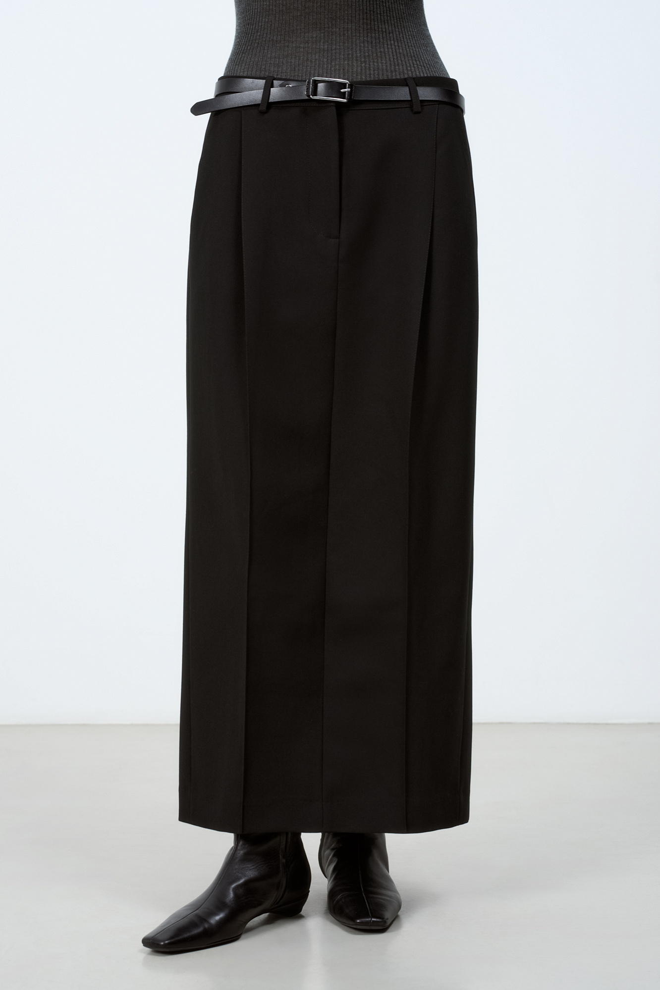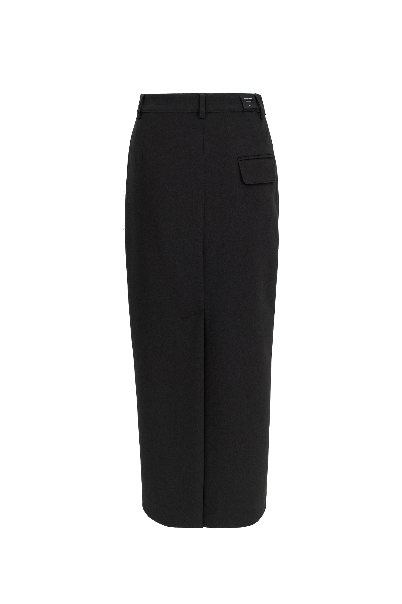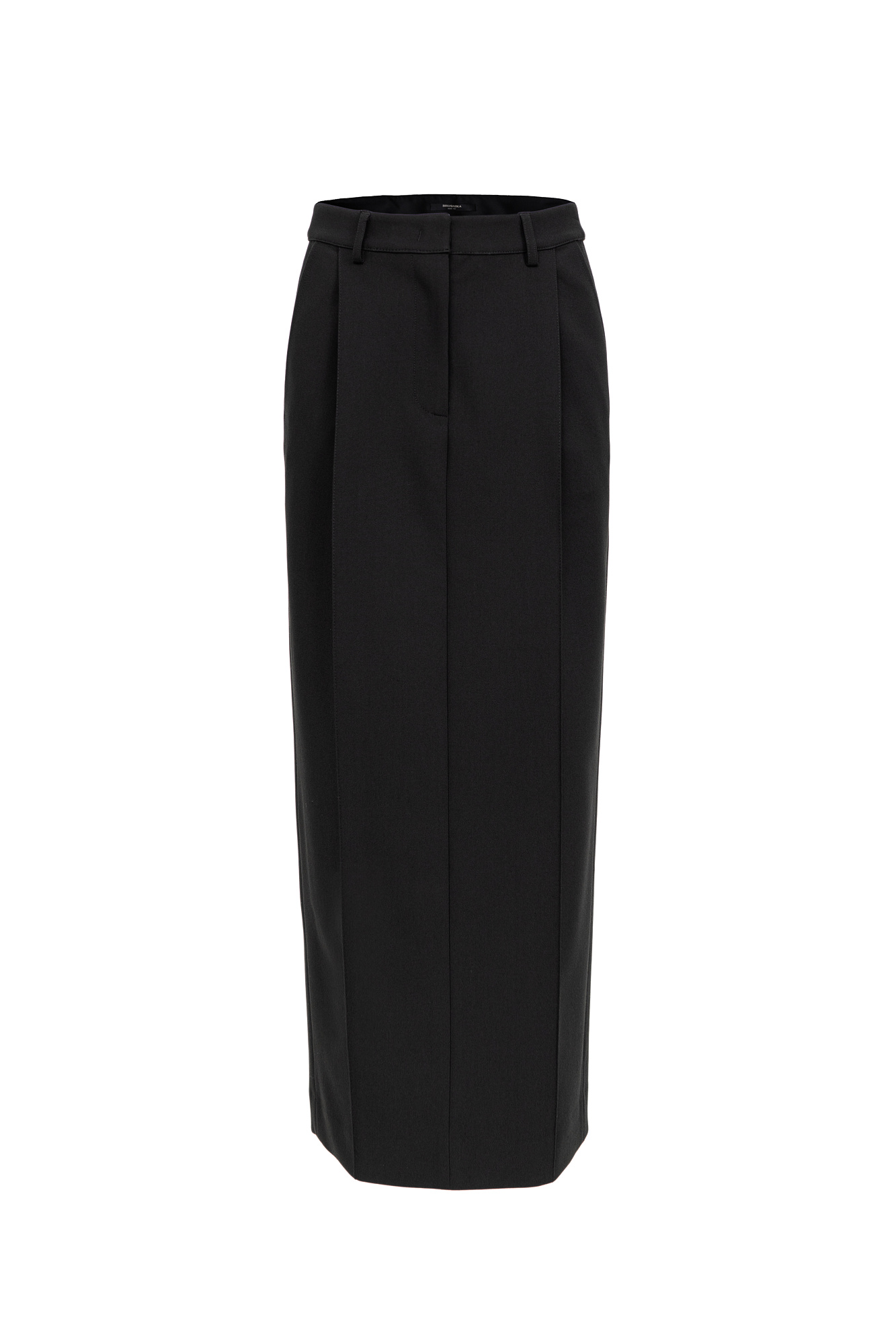 Длинная юбка из вискозы со стрелками и разрезом сзади. Брендированный ярлык на поясе сзади. Потайная застежка на молнии. Дополнить образ можно топом и жакетом.