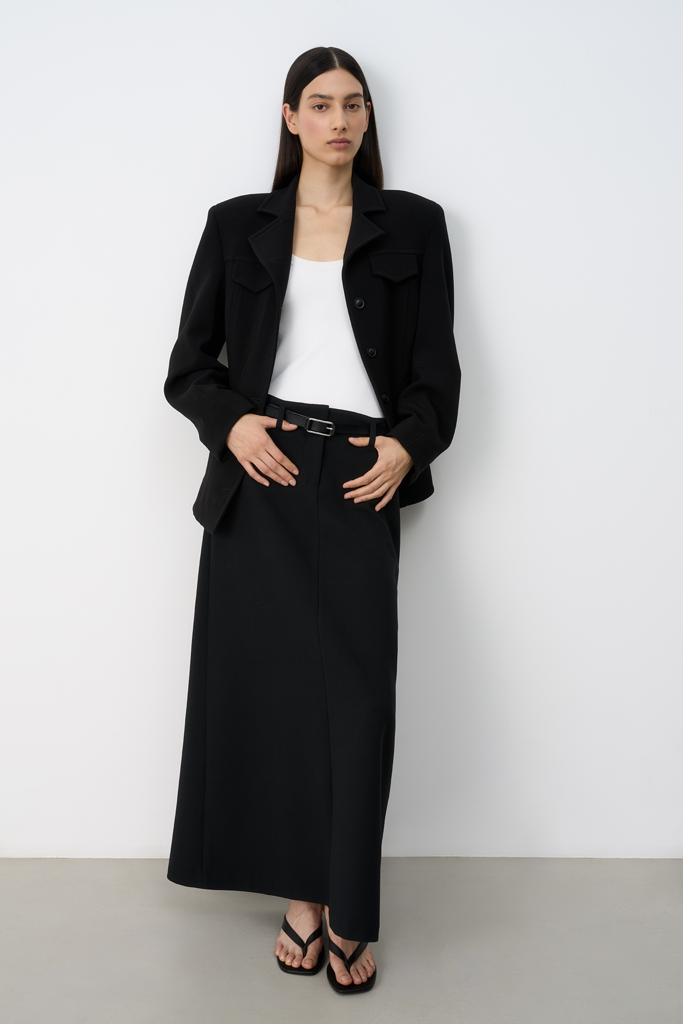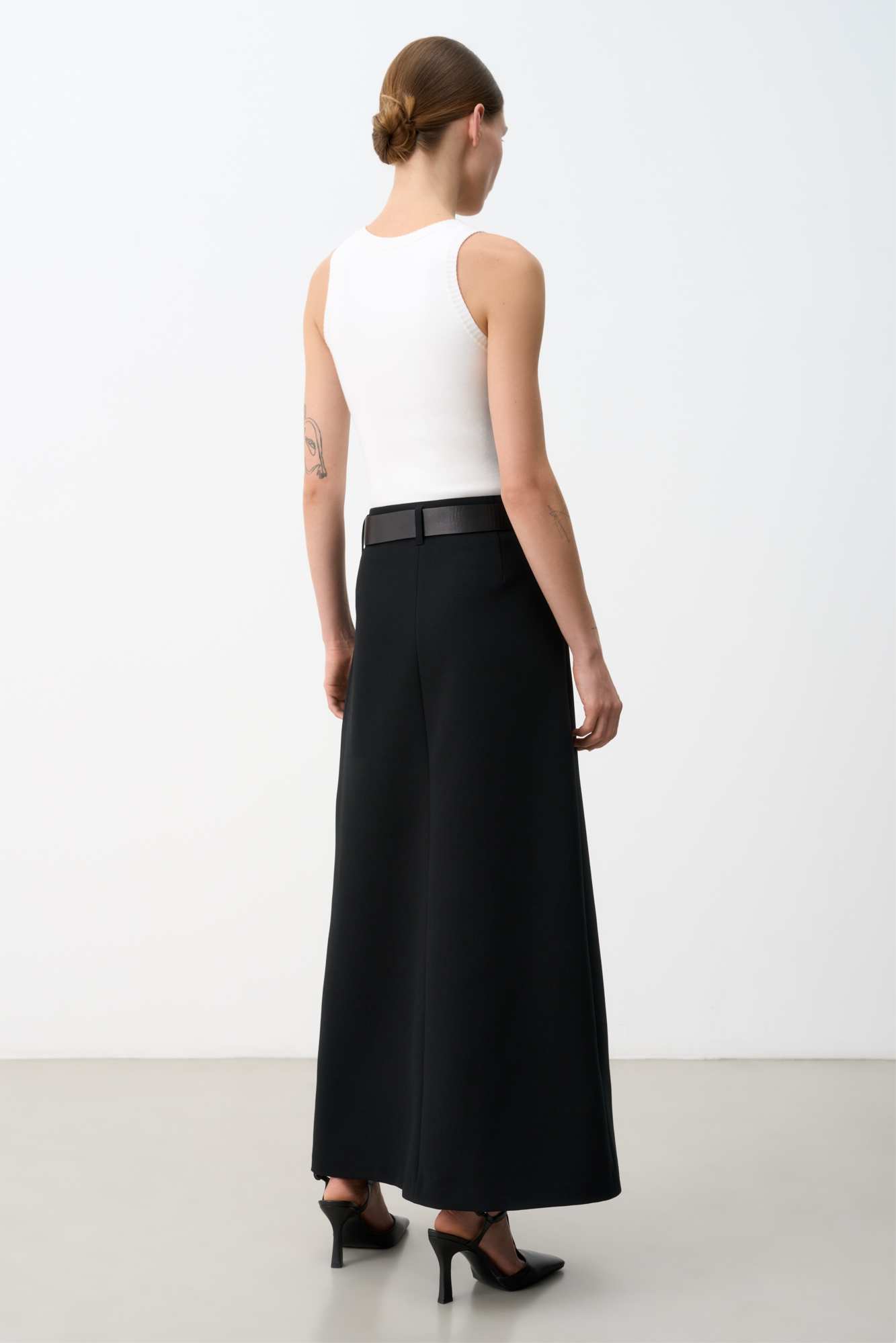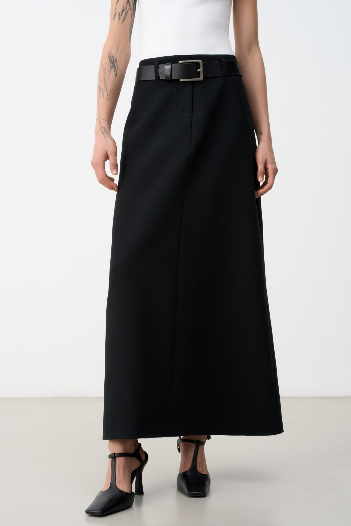 Юбка макси из вискозы. Модель А-силуэта со шлевками на поясе для ремня и застежкой на молнию и крючок.