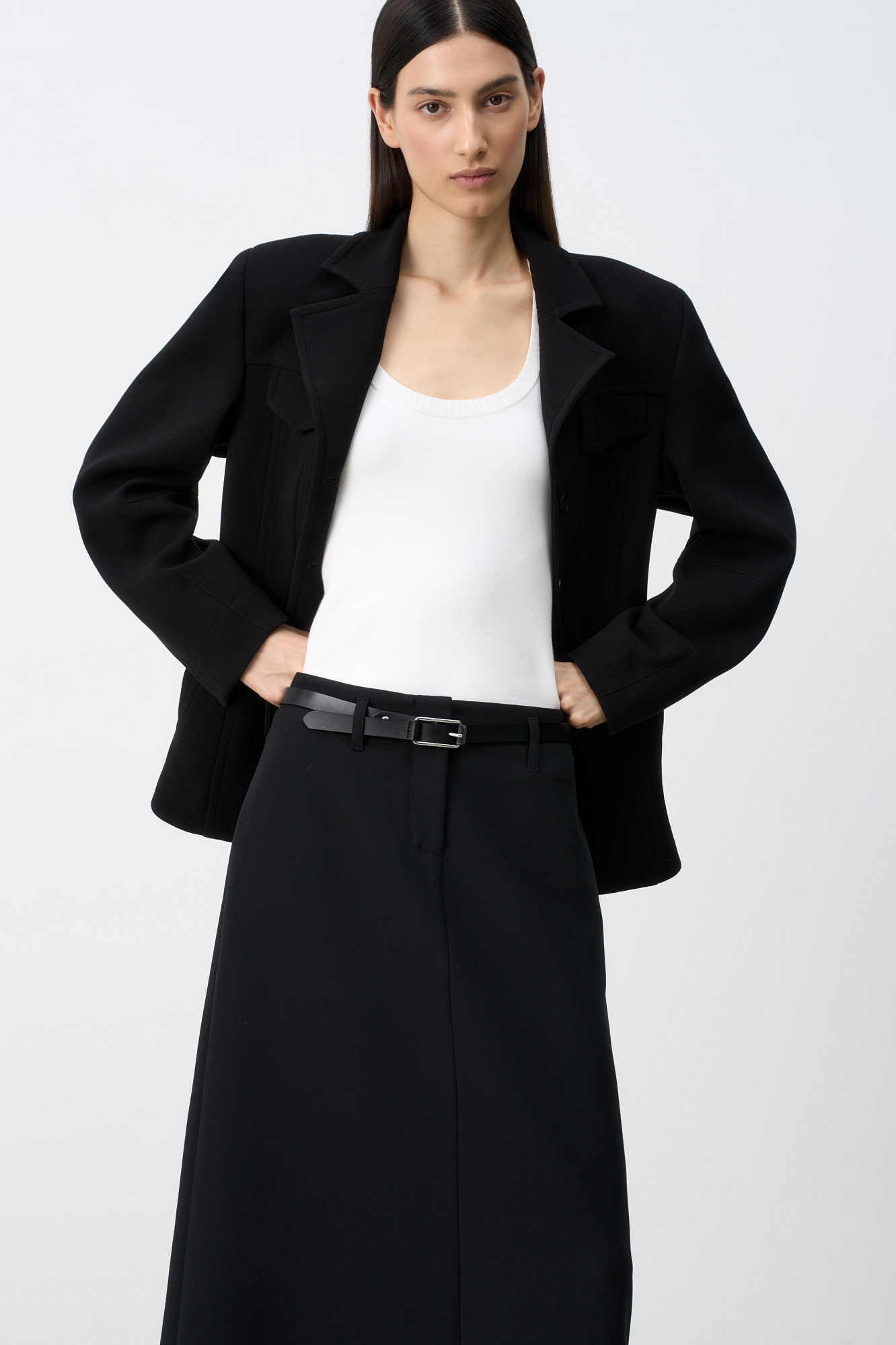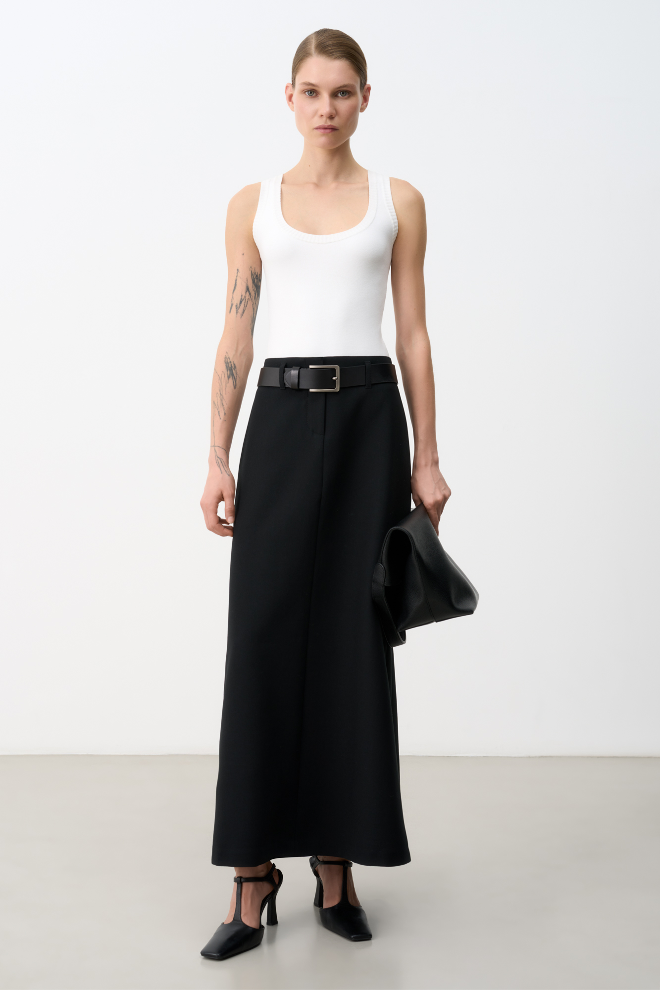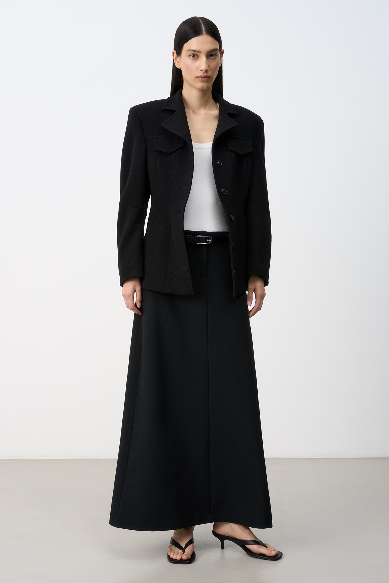 Юбка макси из вискозы. Модель А-силуэта со шлевками на поясе для ремня и застежкой на молнию и крючок.
