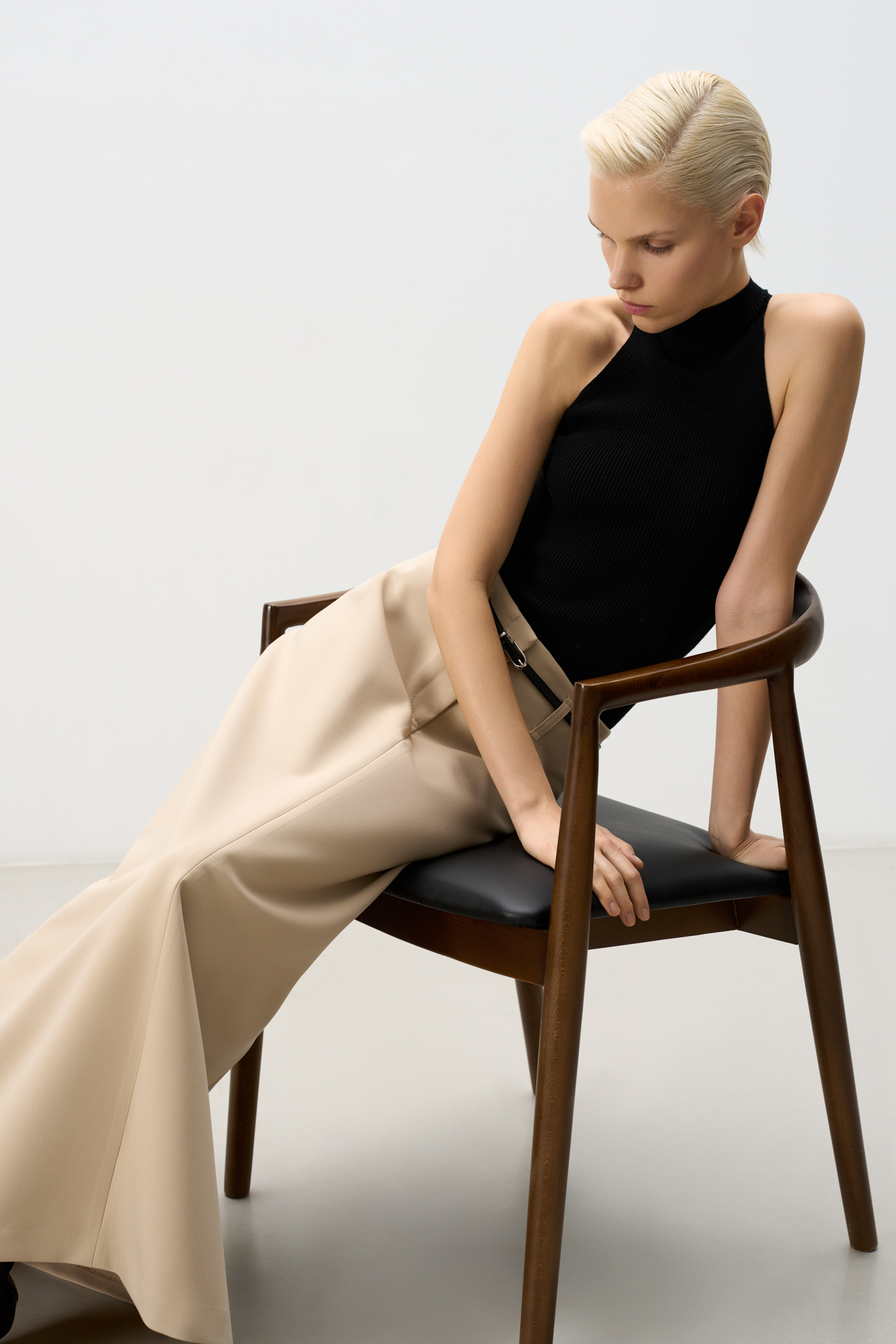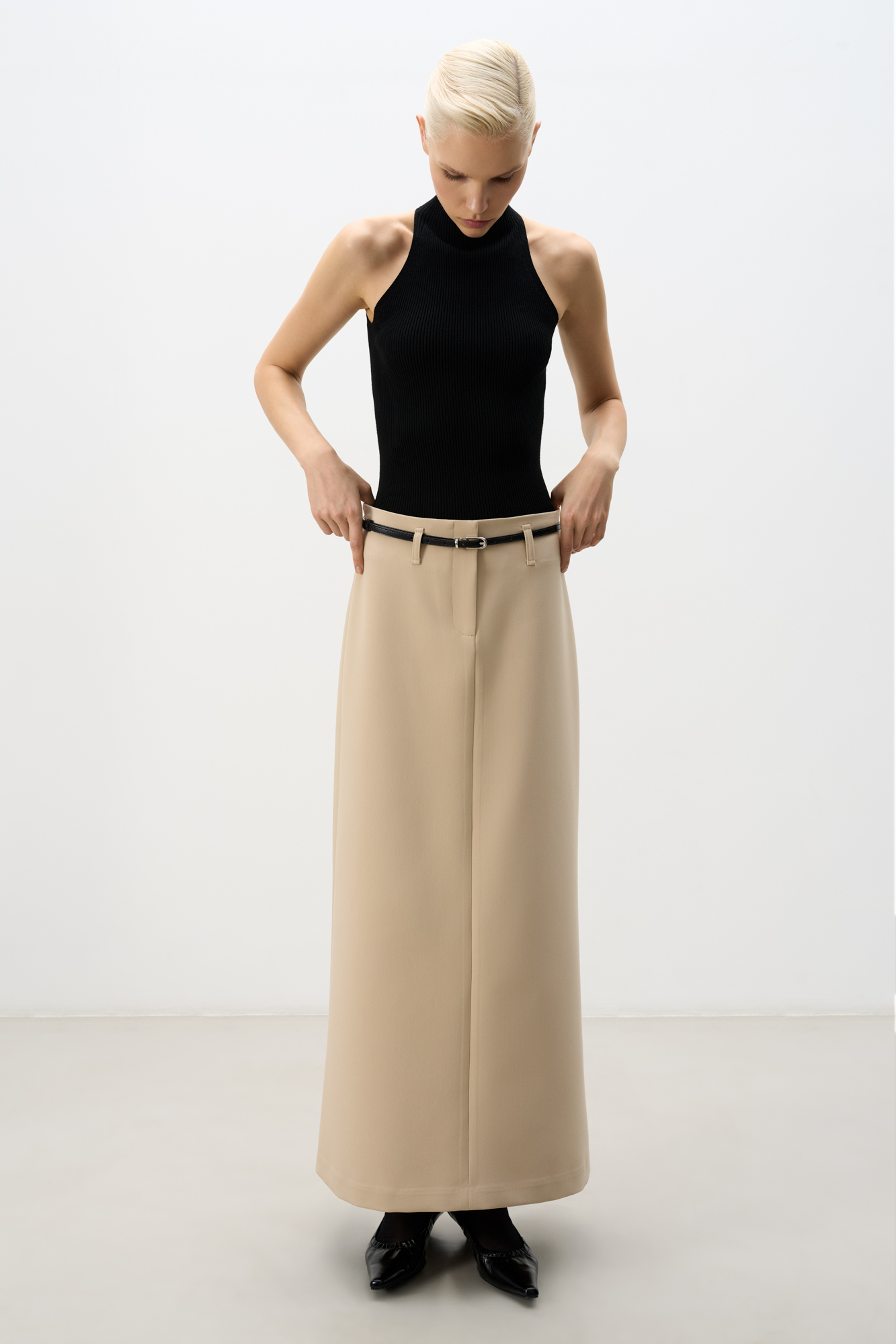 Юбка макси из вискозы. Модель А-силуэта со шлевками на поясе для ремня и застежкой на молнию и крючок.
