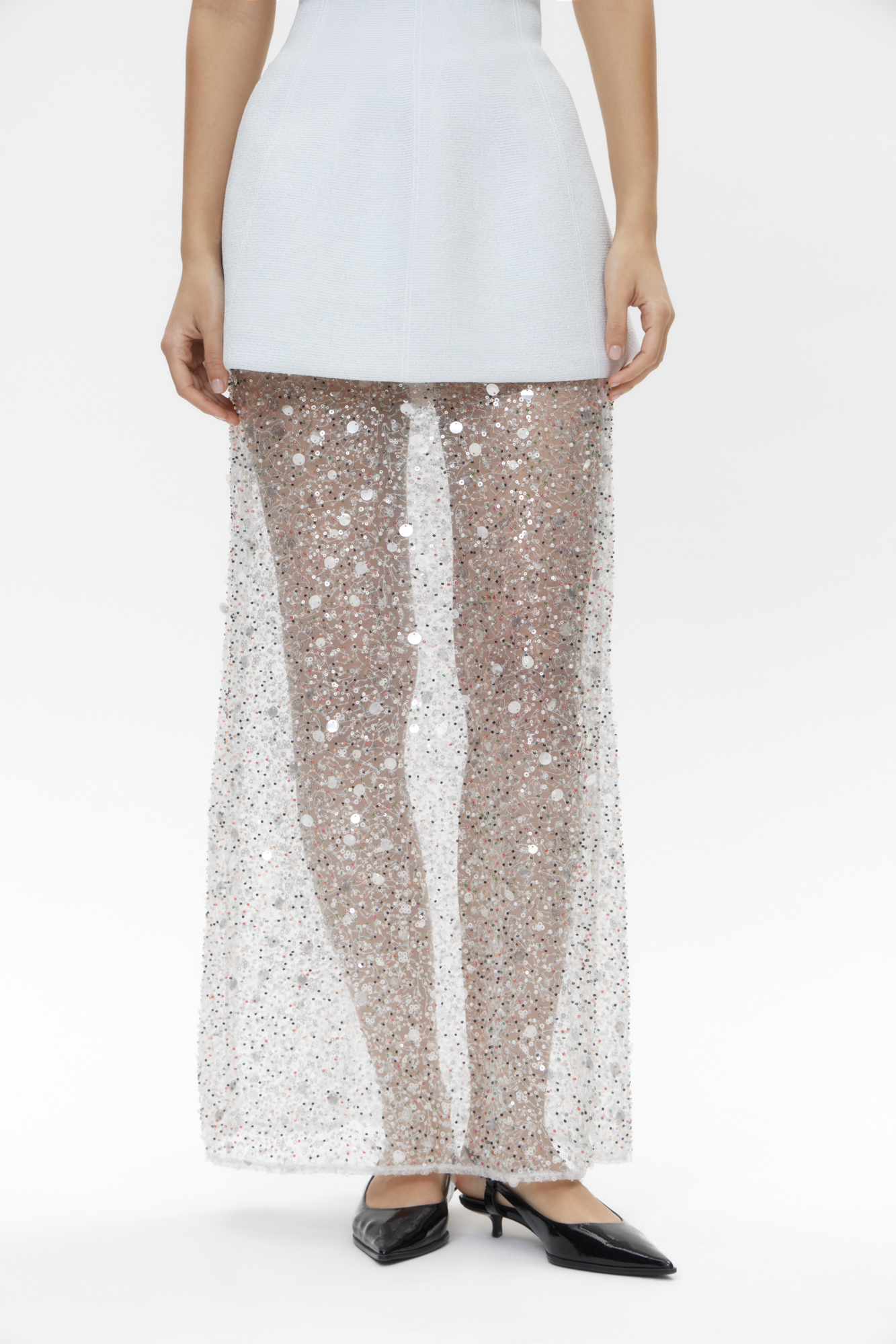 Юбка макси с пайетками и бисером