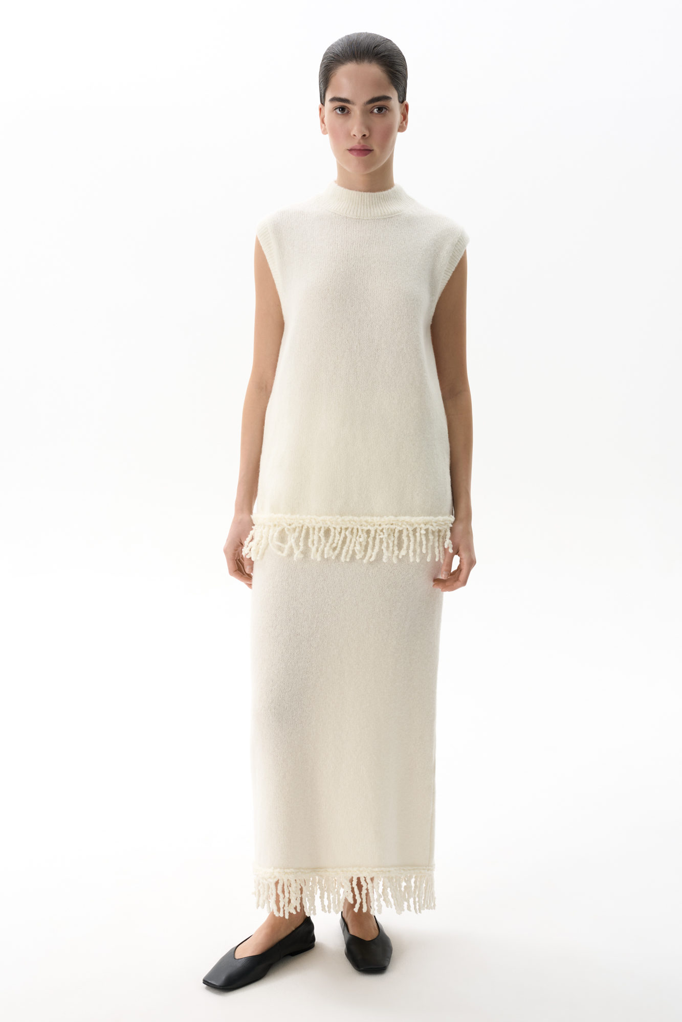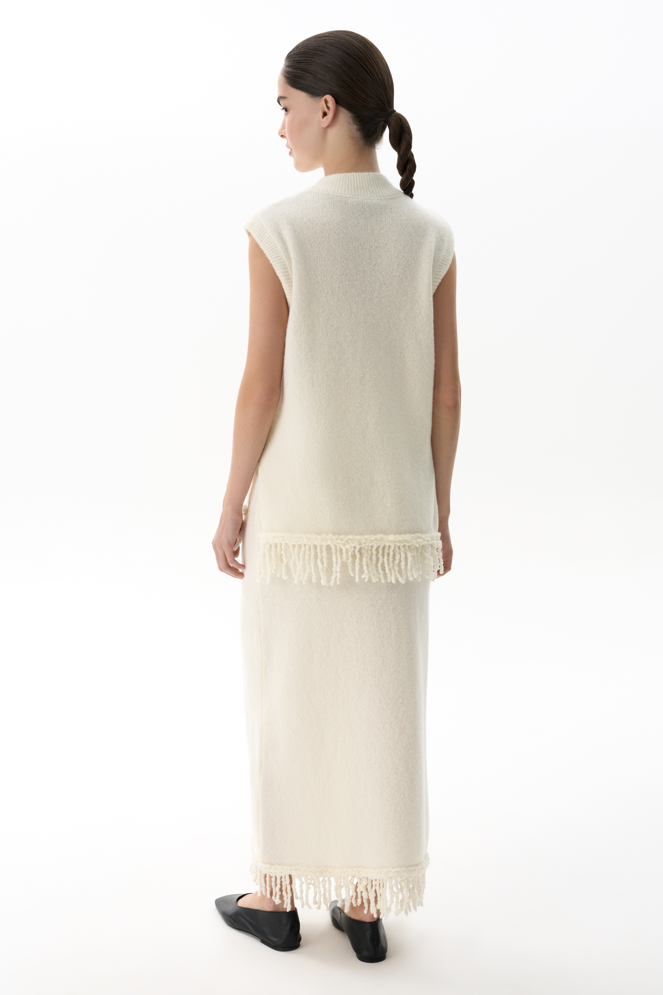 Трикотажная юбка макси из шерсти мериноса с бахромой