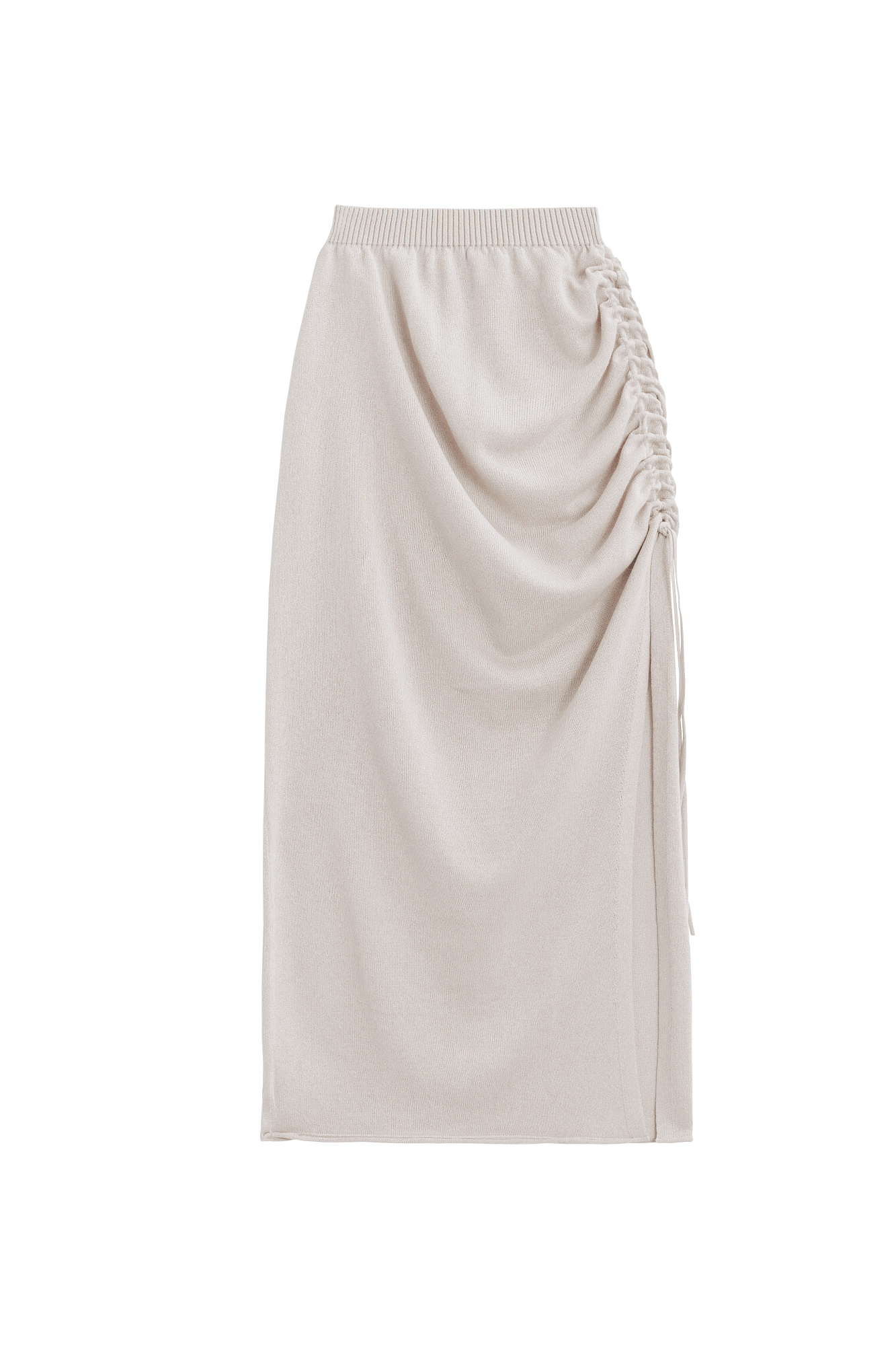Юбка длины макси из вискозы. Модель приталенного силуэта с широким эластичным поясом на резинке, асимметричной драпировкой и кулиской.