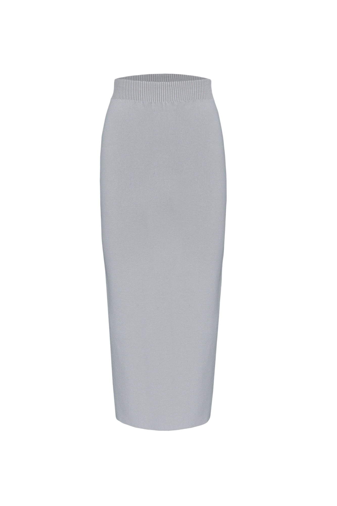Трикотажная юбка из мягкой вискозы с разрезом сзади и поясом из эластичной ленты в рубчик.