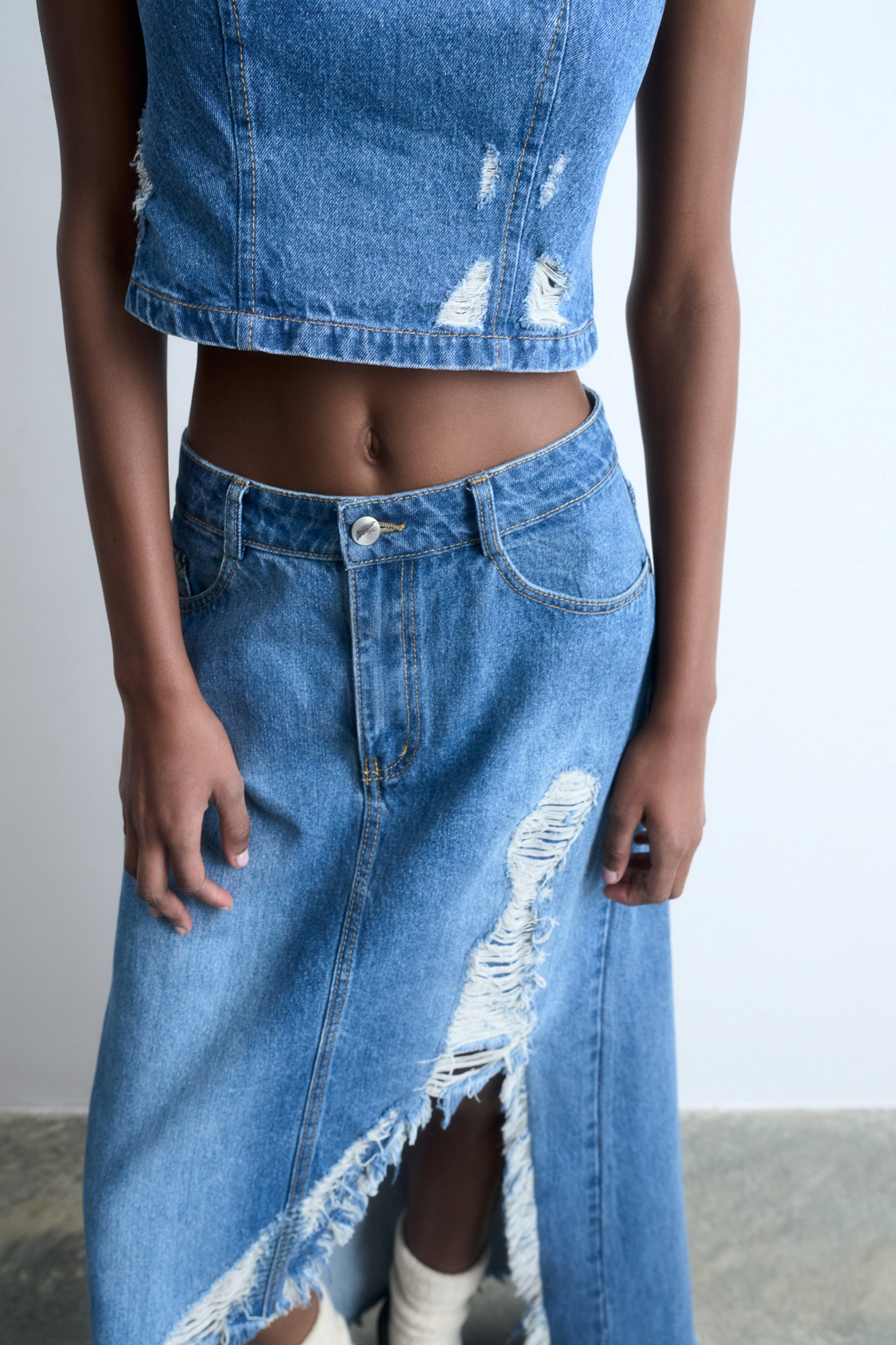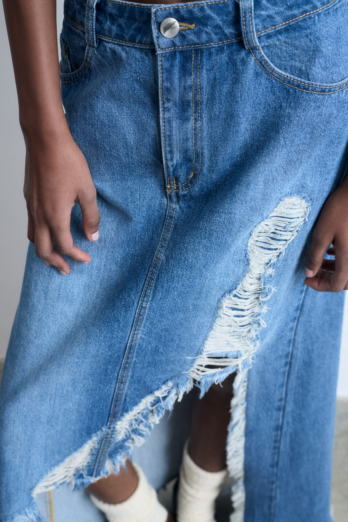 Джинсовая юбка в стиле гранж