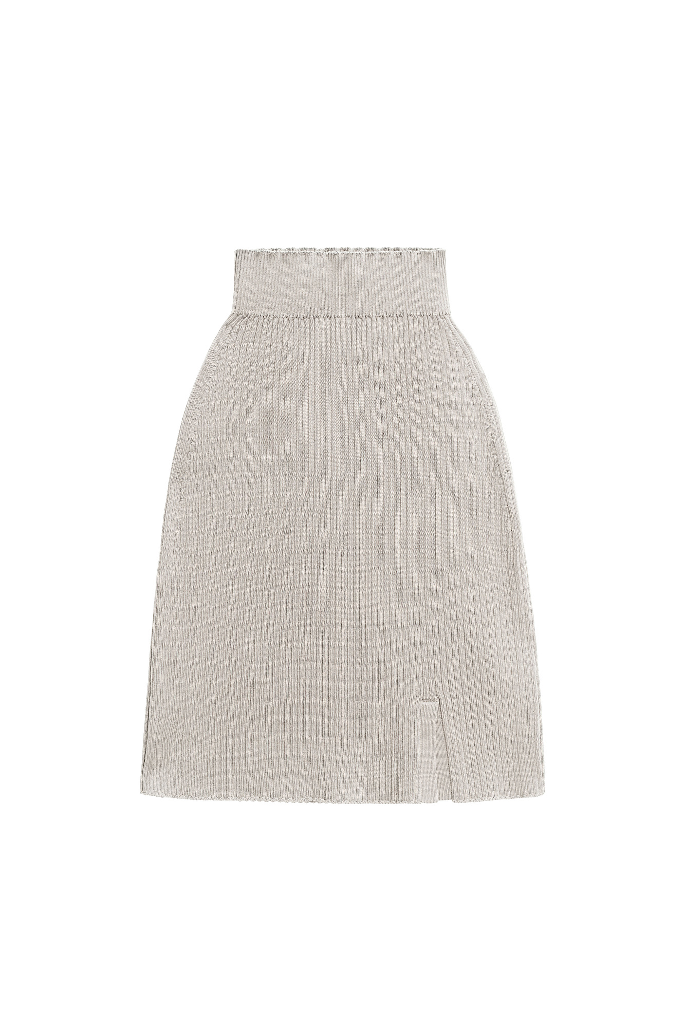 Трикотажная юбка длины мини из вискозы. Модель приталенного силуэта с эластичным поясом и небольшим разрезом сбоку.