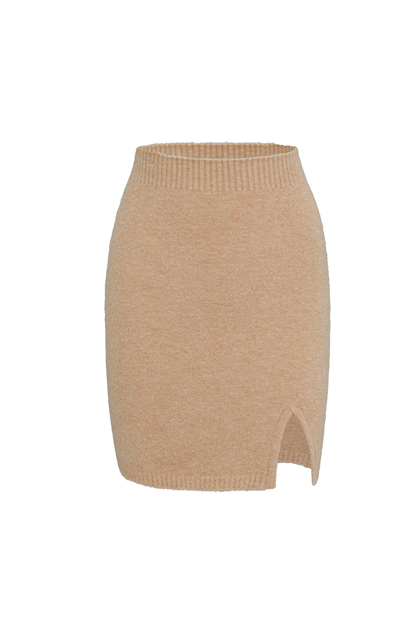 Облегающая юбка длины мини из смесовой шерсти. Модель с боковым разрезом и эластичным поясом.