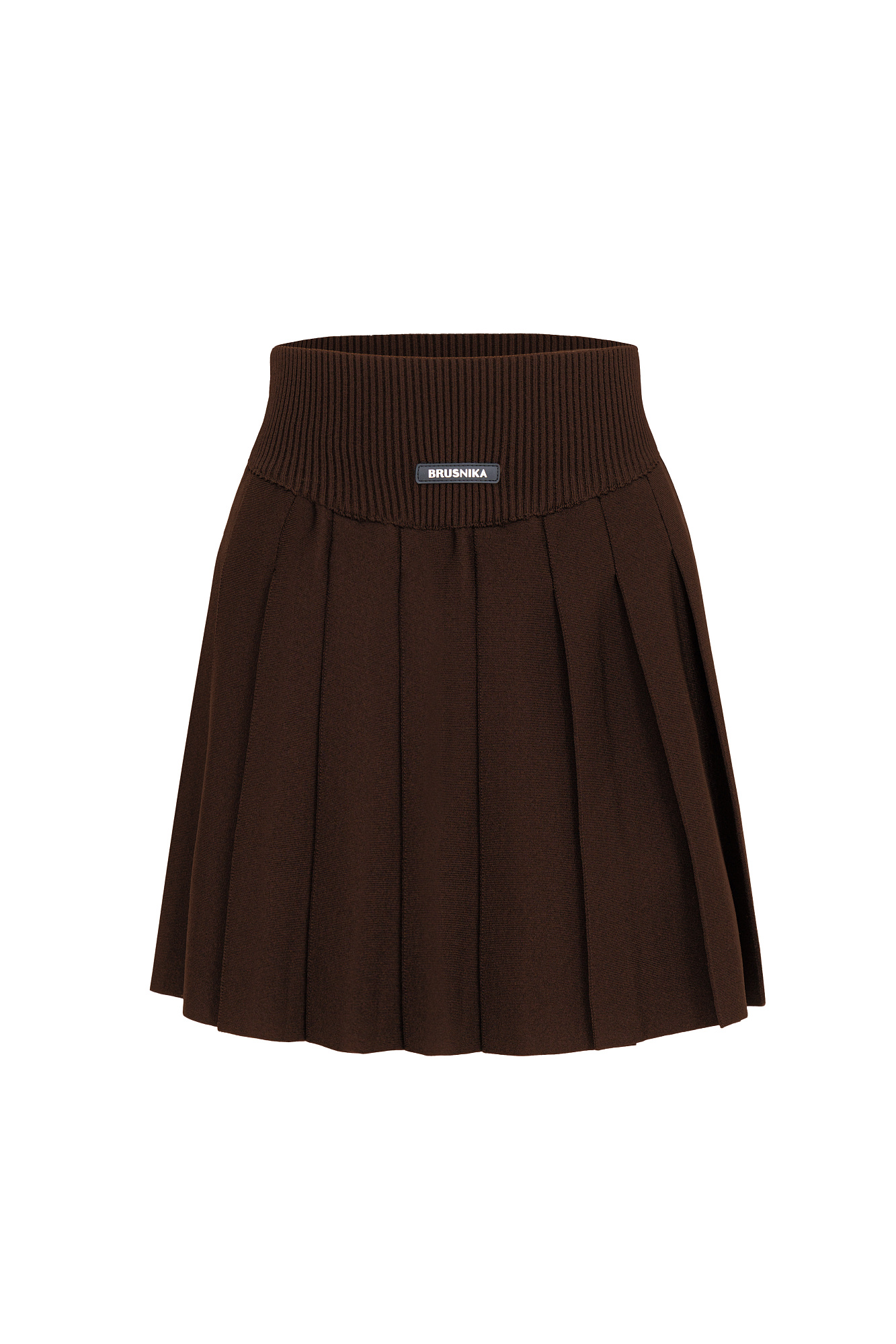 Трикотажная юбка длины мини в теннисном стиле. Модель с широким эластичным поясом в рубчик. Изделие декорировано брендированным ярлыком.