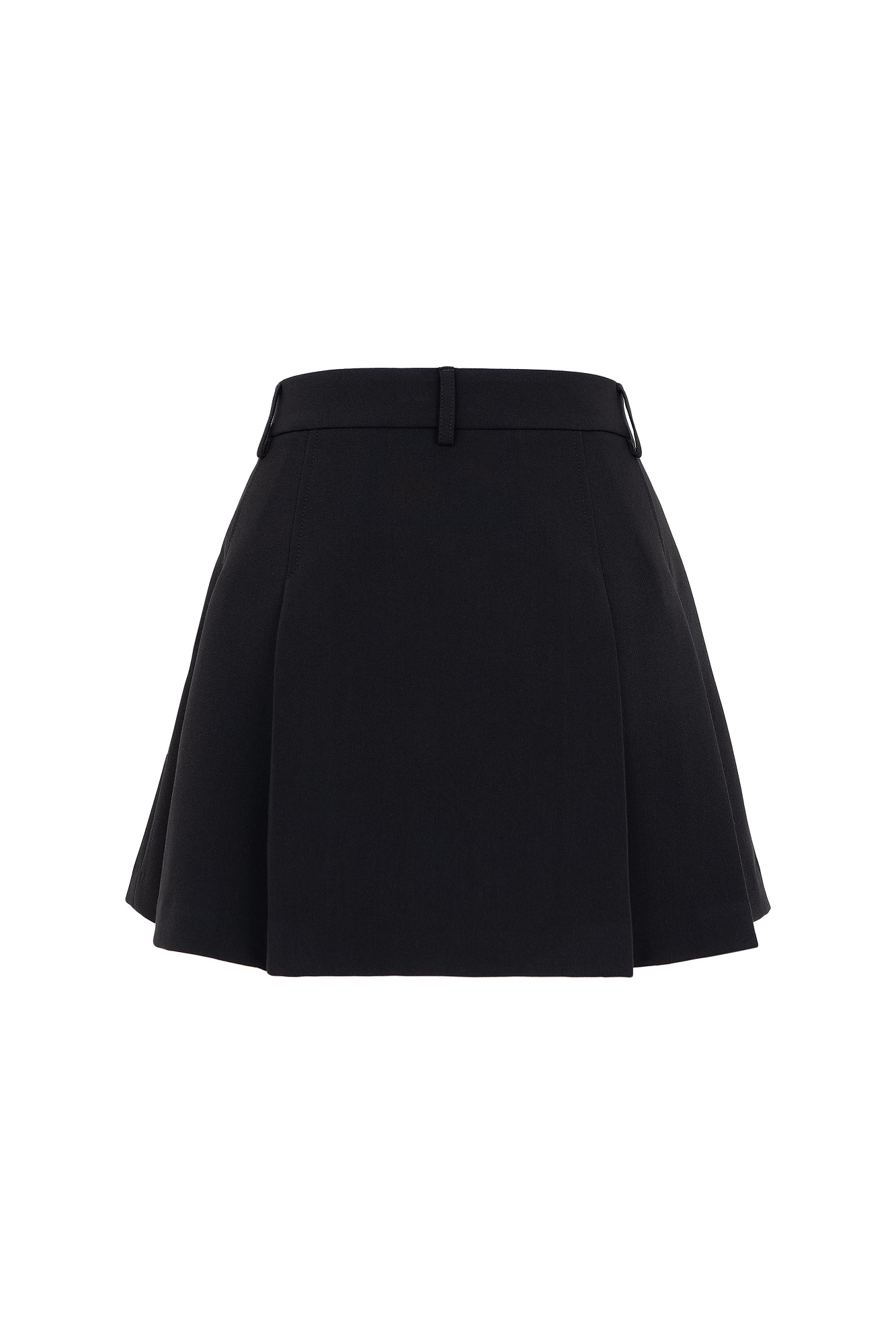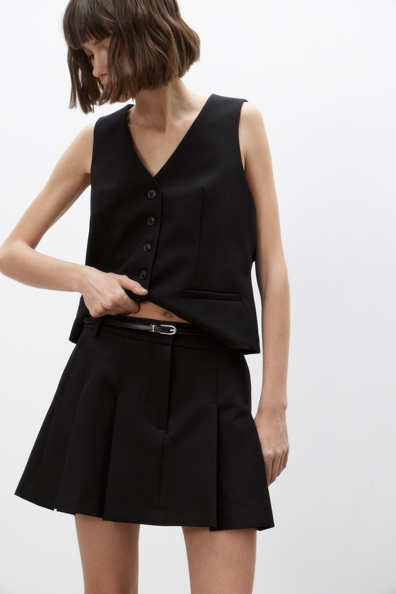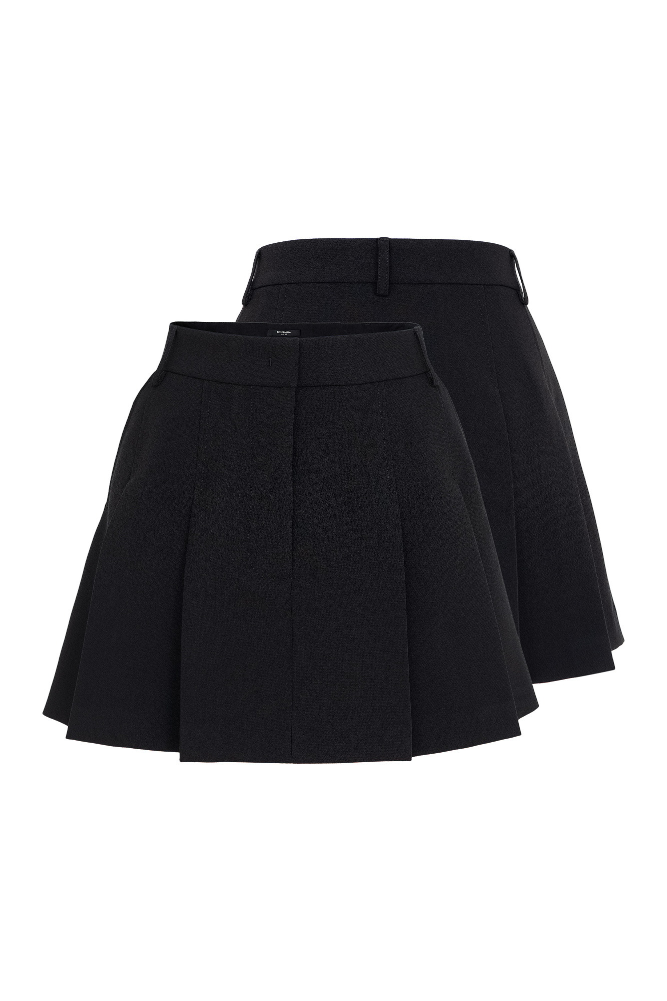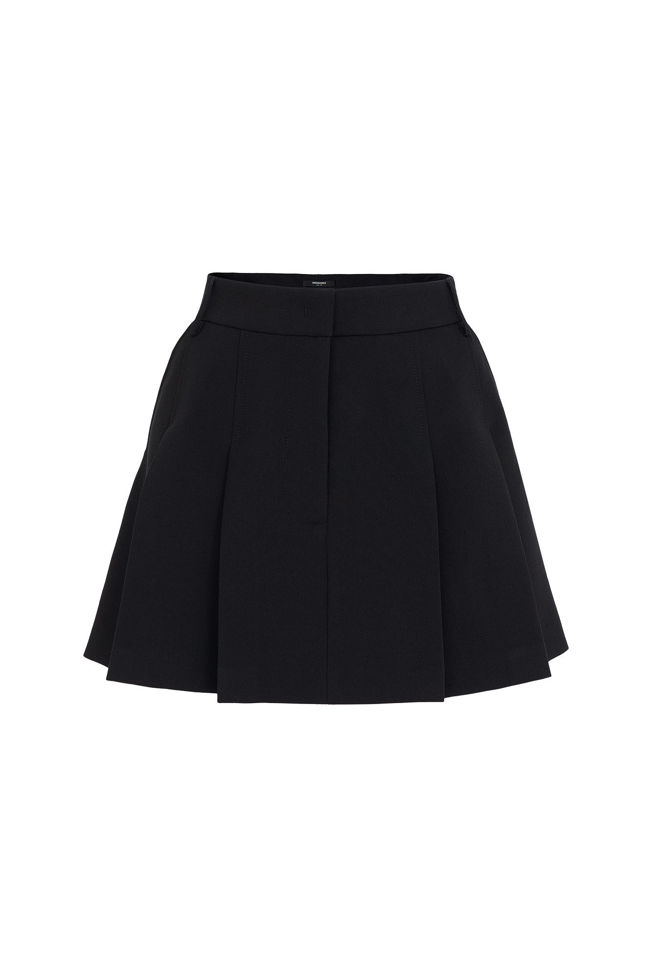 Юбка длины мини из поливискозы. Модель с крупными складками, боковыми карманами и шлевками на поясе для ремня. Застежка на молнию, крючок и внутреннюю пуговицу.